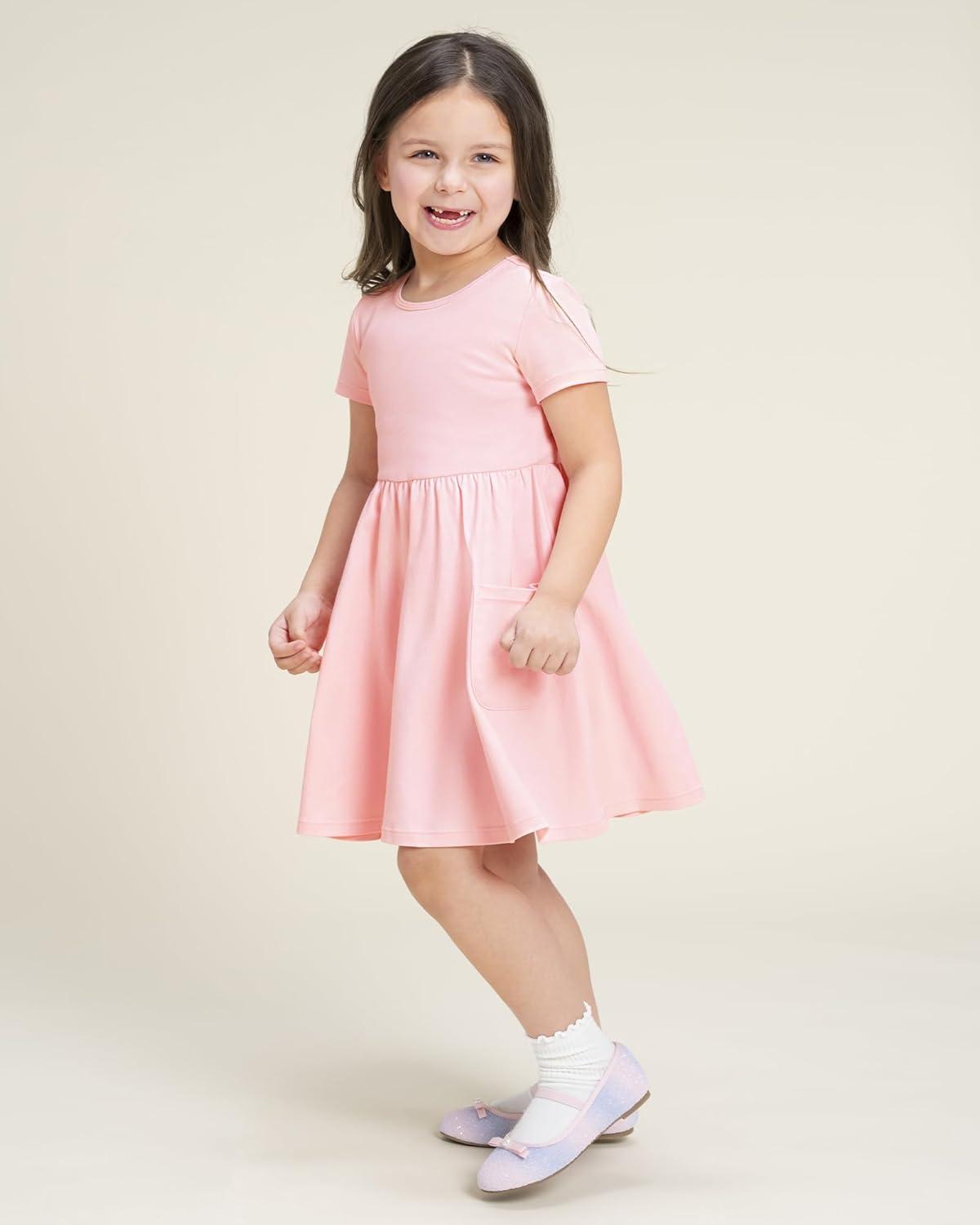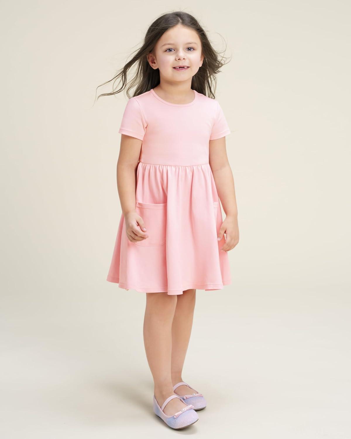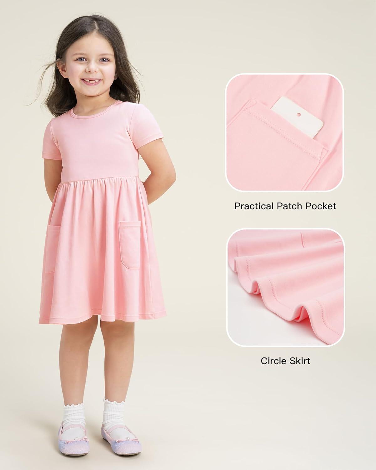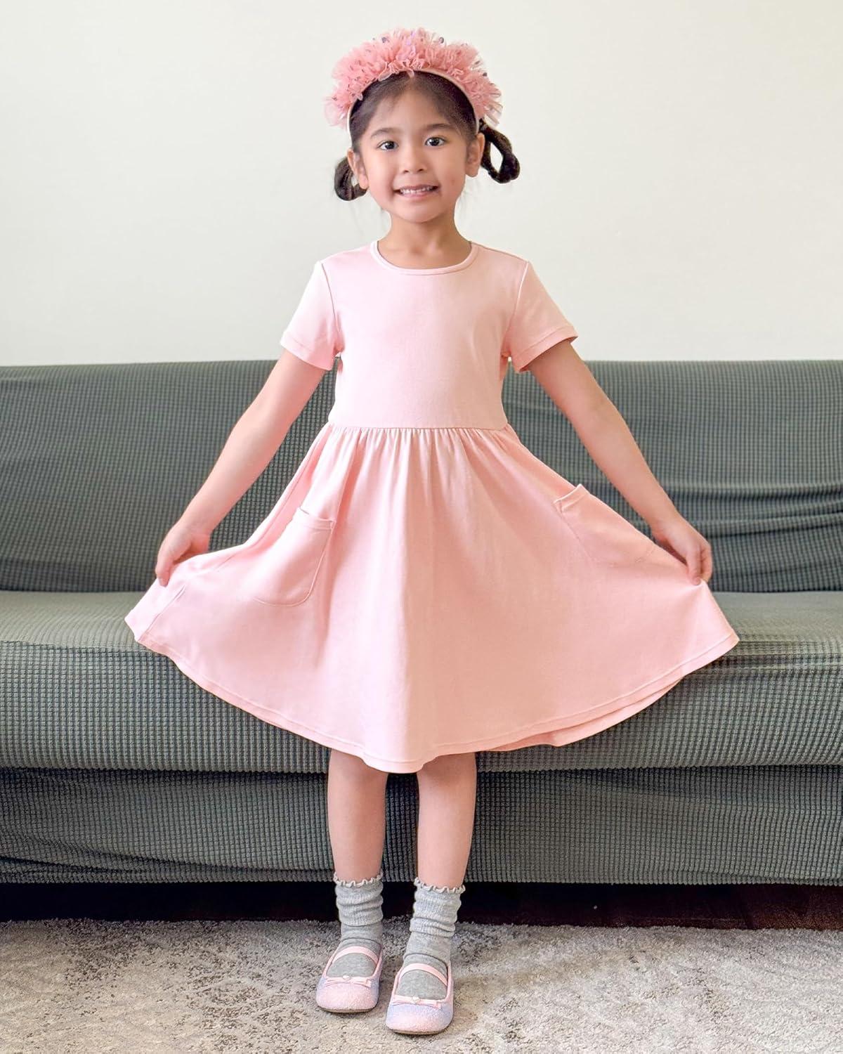 Stelle Girls Dresses Cotton Short Sleeve Dress Cute Midi Casual Sundress with 2 Pockets(Blush Pink)