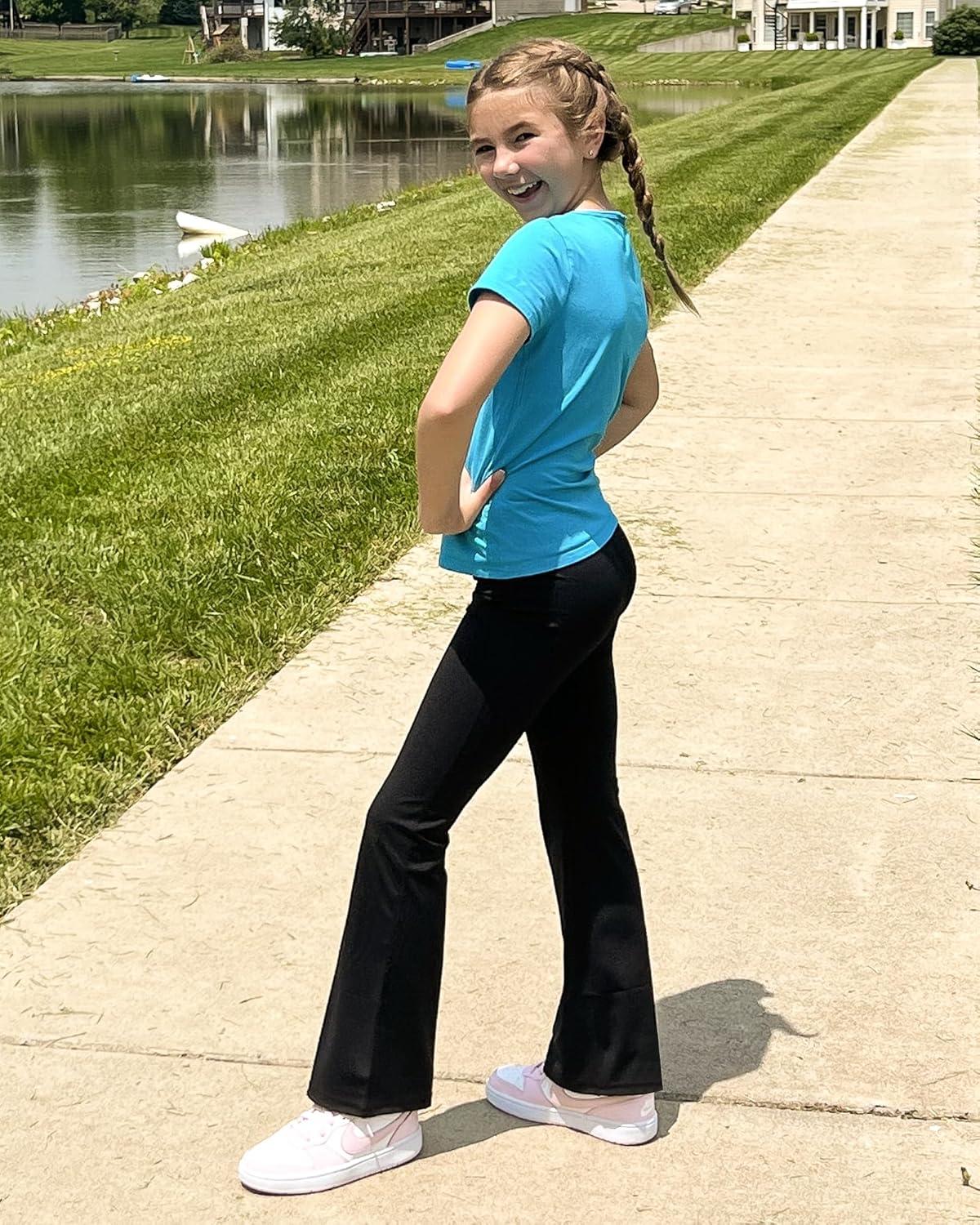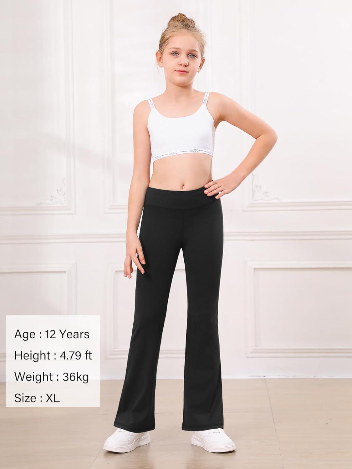 Stelle Girl’s Flare Leggings High Waisted Yoga Pants Bootcut Dance Casual Pants Activewear Kids Bell Bottoms(Black/Black/Black/Black)