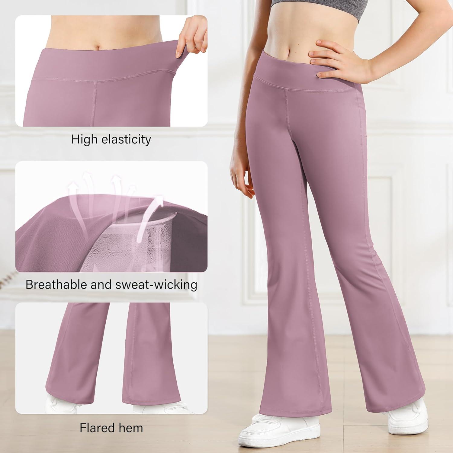 Stelle Girl’s Flare Leggings High Waisted Yoga Pants Bootcut Dance Casual Pants Activewear Kids Bell Bottoms(Dusty Lavender)