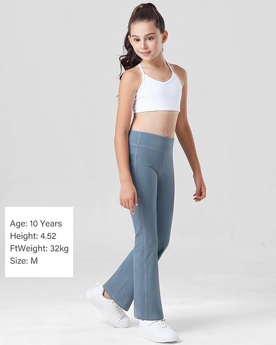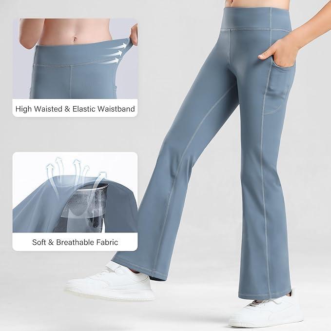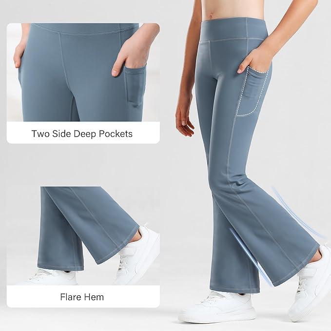 Stelle Girl’s Flare Leggings with Pockets High Waisted Bootcut Yoga Pants Kids Dance Bell Bottoms Leggings(Black/Grey Blue)