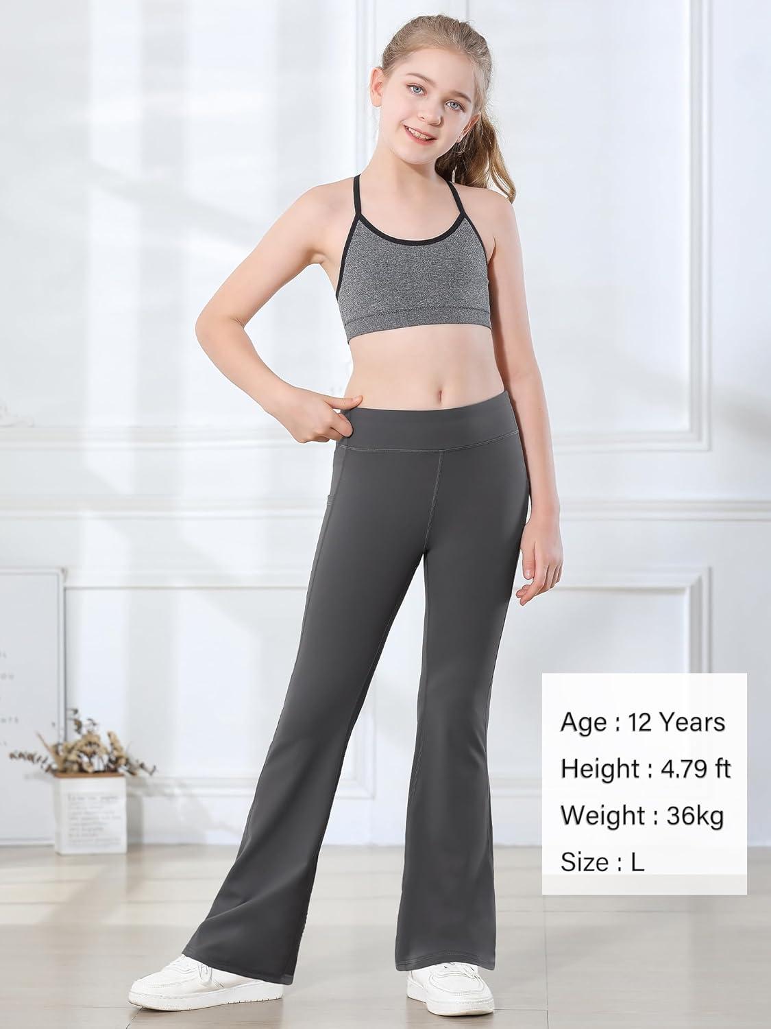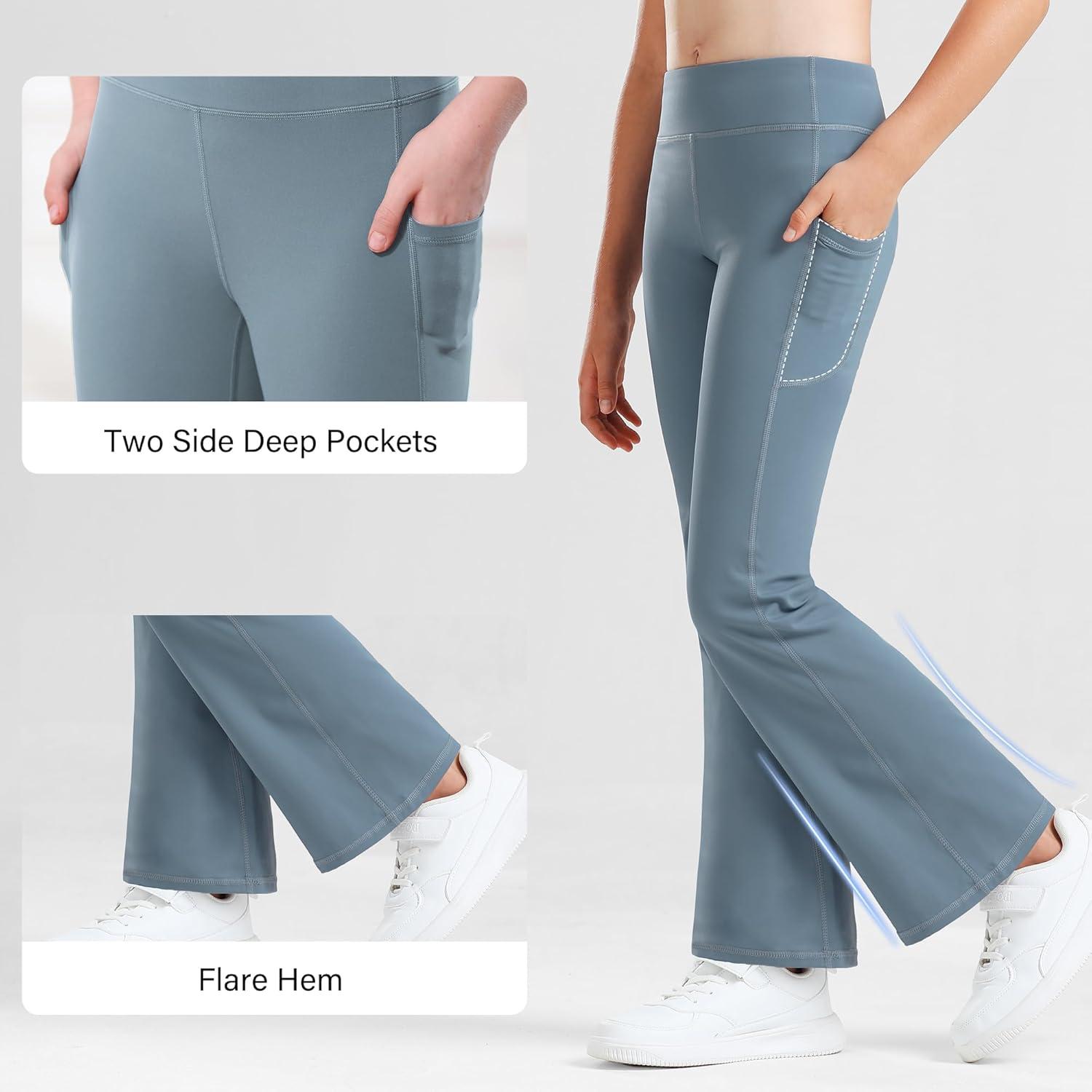 Stelle Girl’s Flare Leggings with Pockets High Waisted Bootcut Yoga Pants Kids Dance Bell Bottoms Leggings(Black/Grey/Grey Blue)