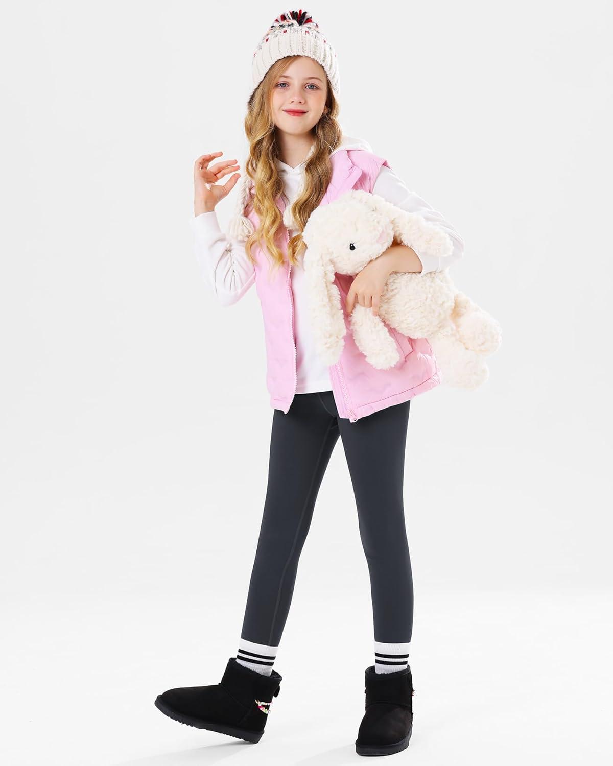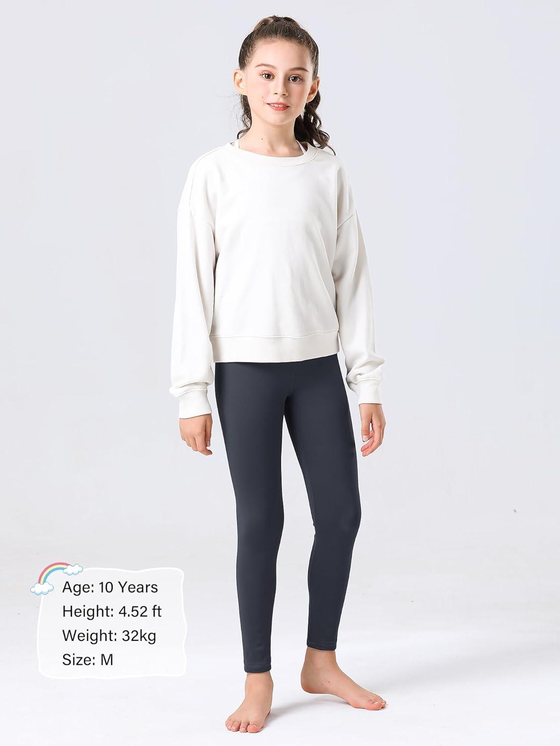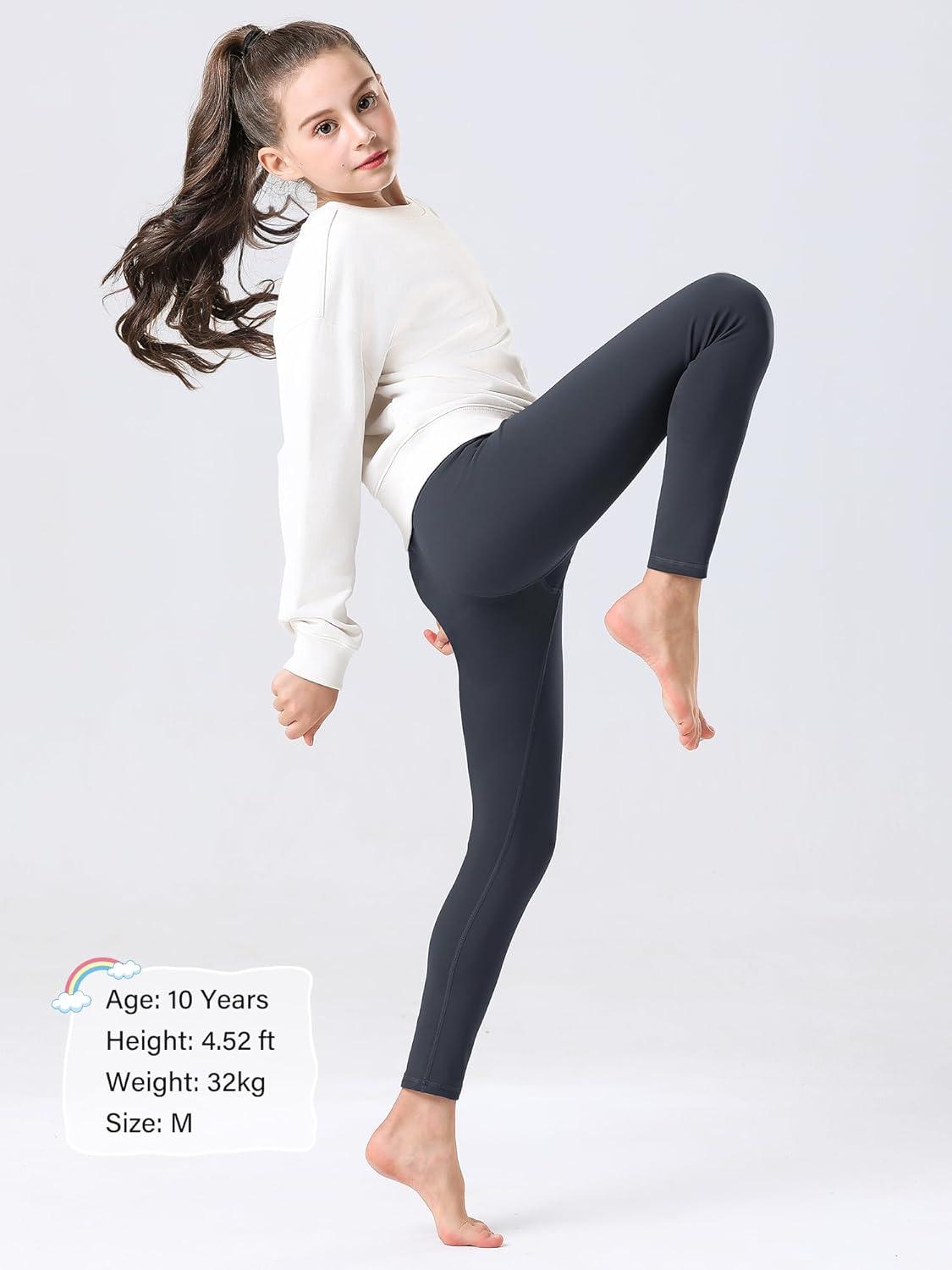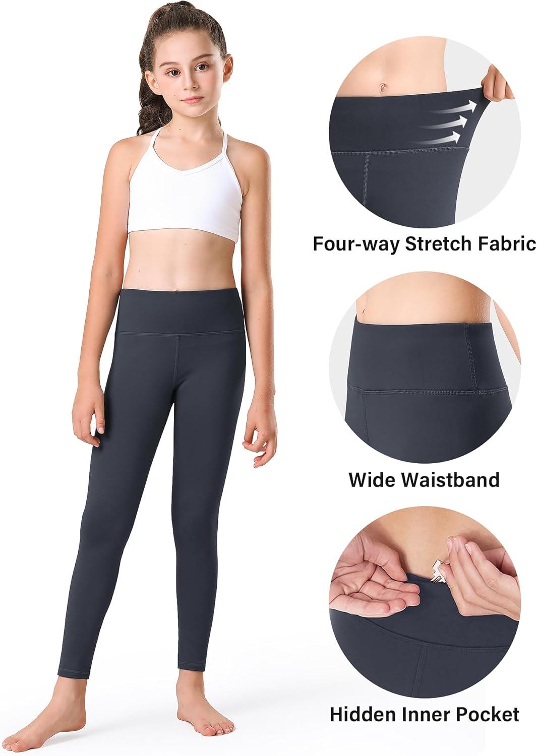 Stelle Girl’s Fleece Lined Leggings Youth High Waist Warm Winter Athletic Yoga Pants with Hidden Pocket(Charcoal)
