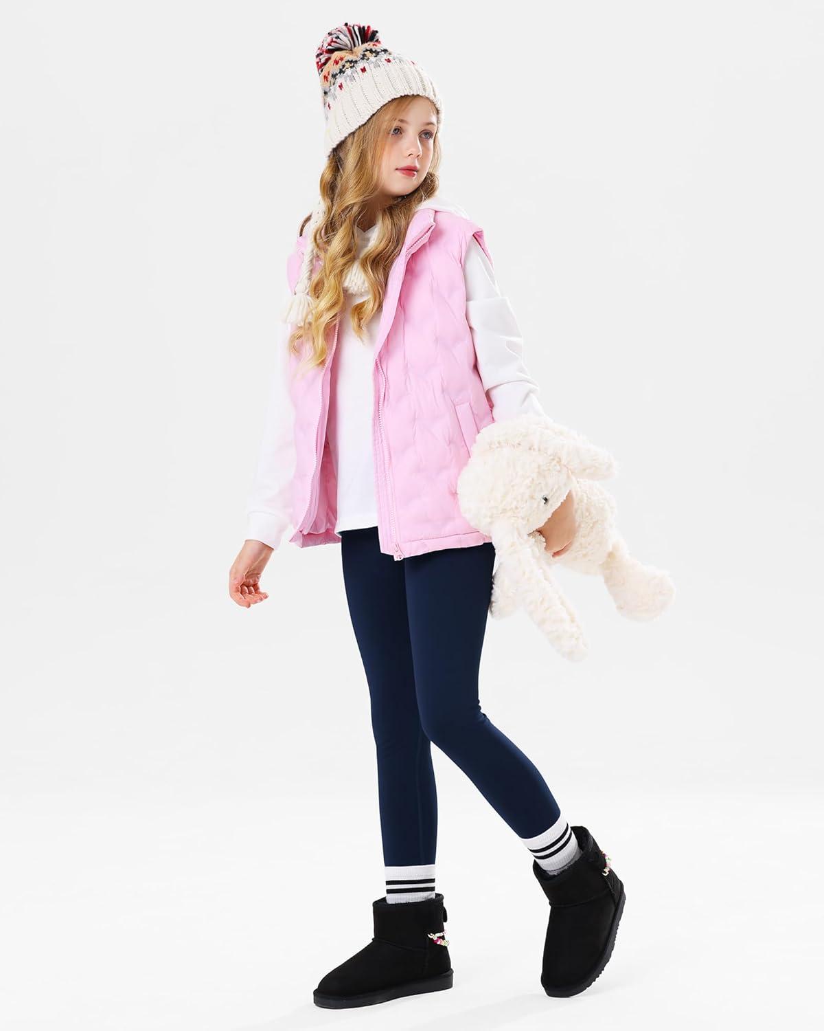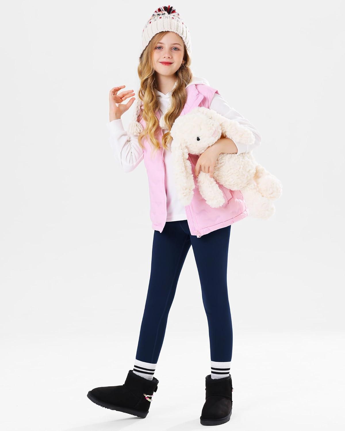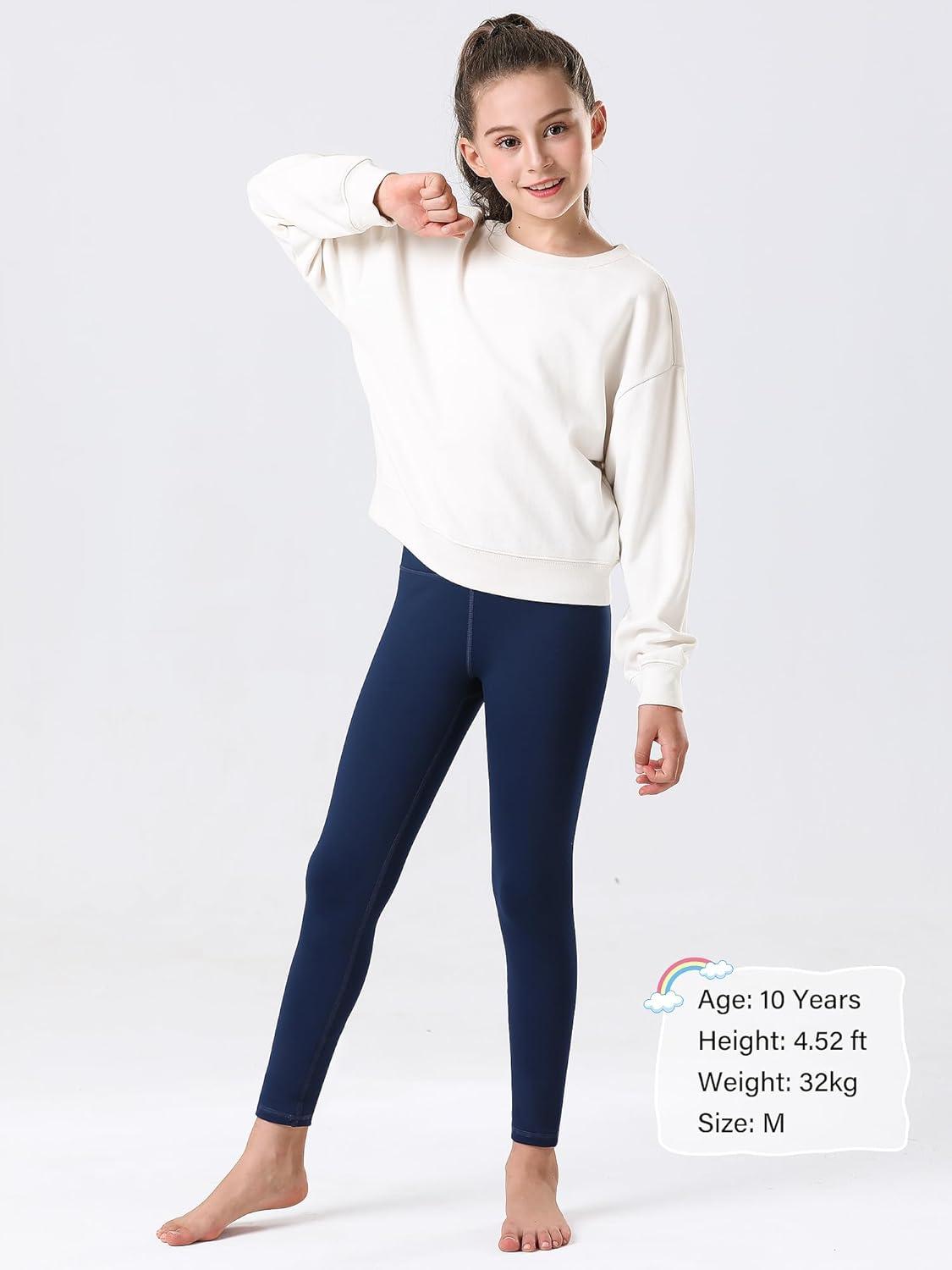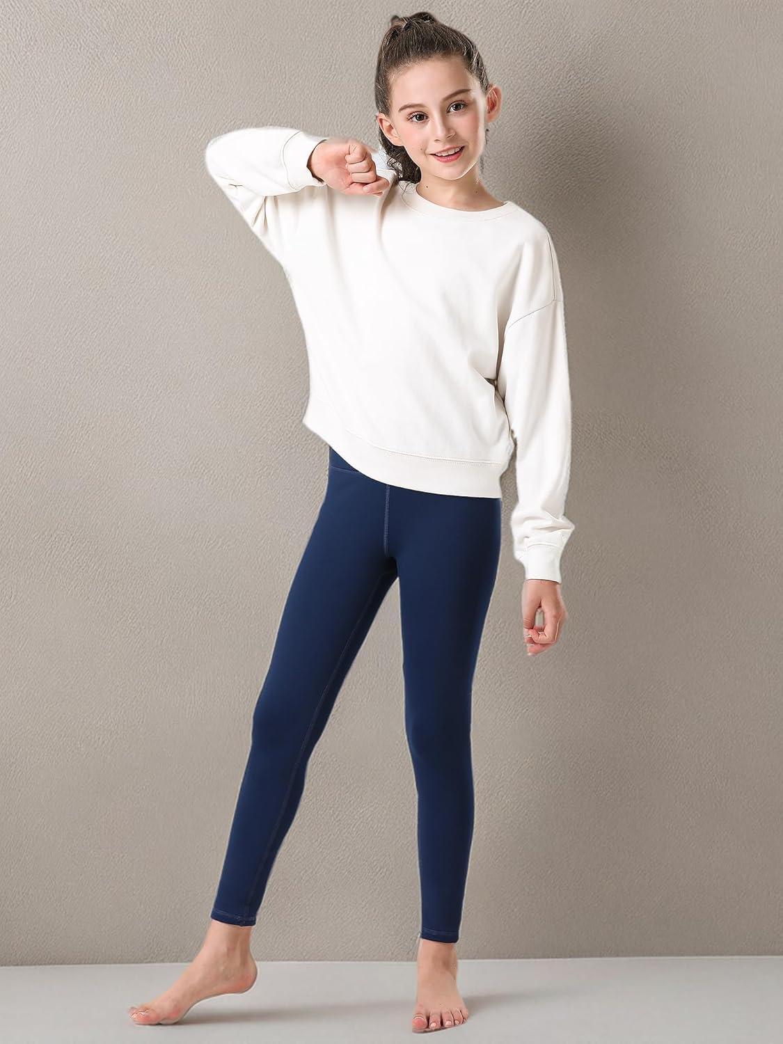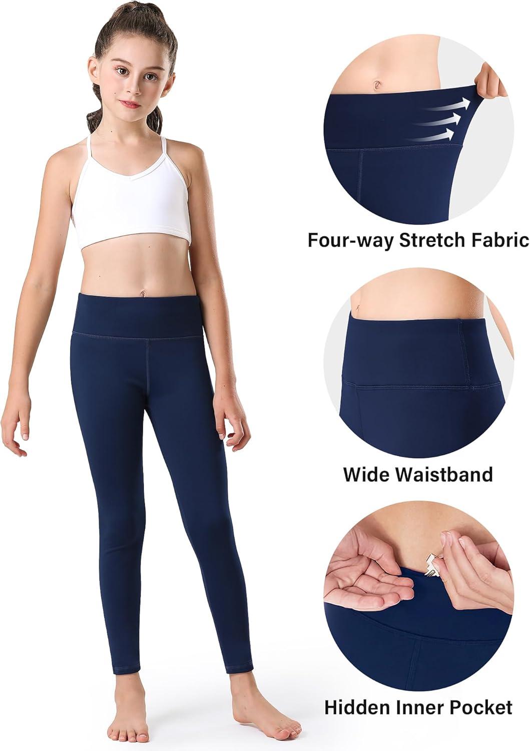 Stelle Girl’s Fleece Lined Leggings Youth High Waist Warm Winter Athletic Yoga Pants with Hidden Pocket(Navy)
