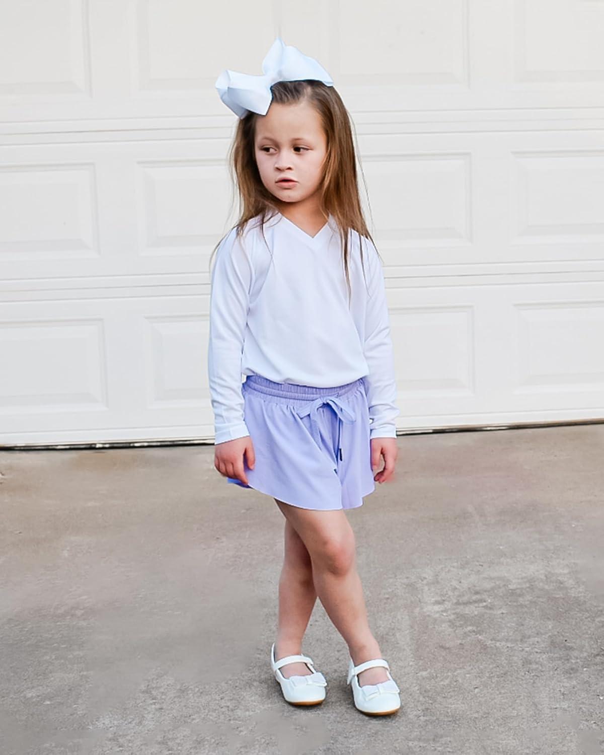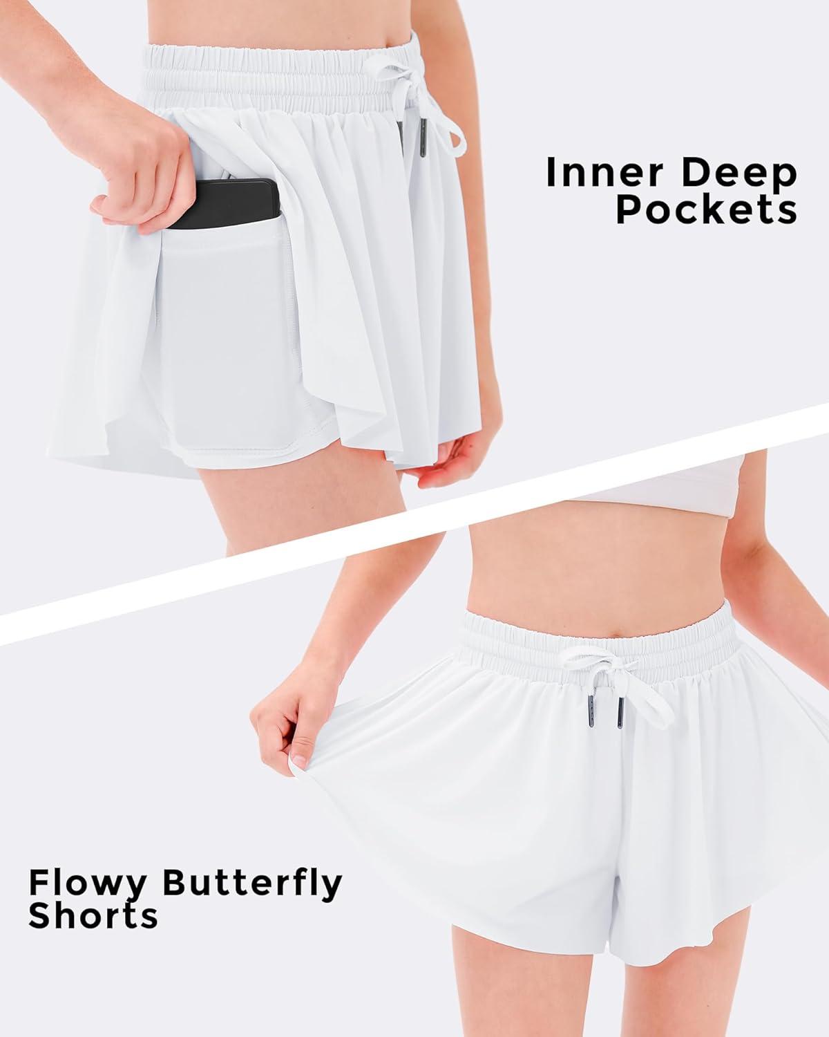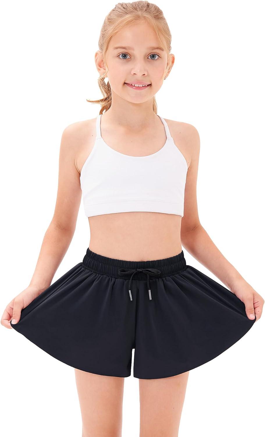 Stelle Girls Flowy Shorts with Pockets Athletic Running Skirt High Waist Butterfly 2 in 1 Sports Short 5-16 Years(Black+white+lavender)