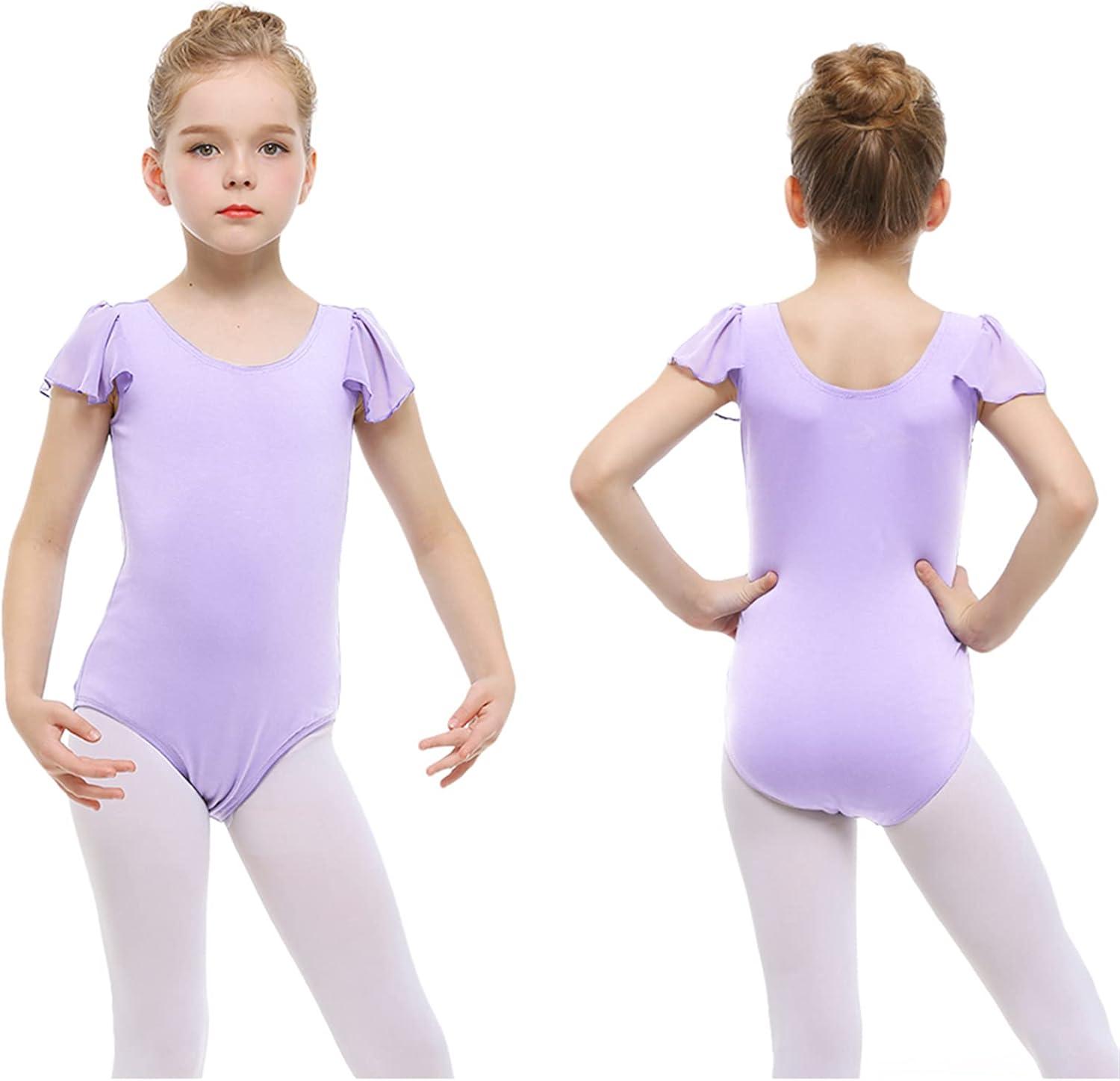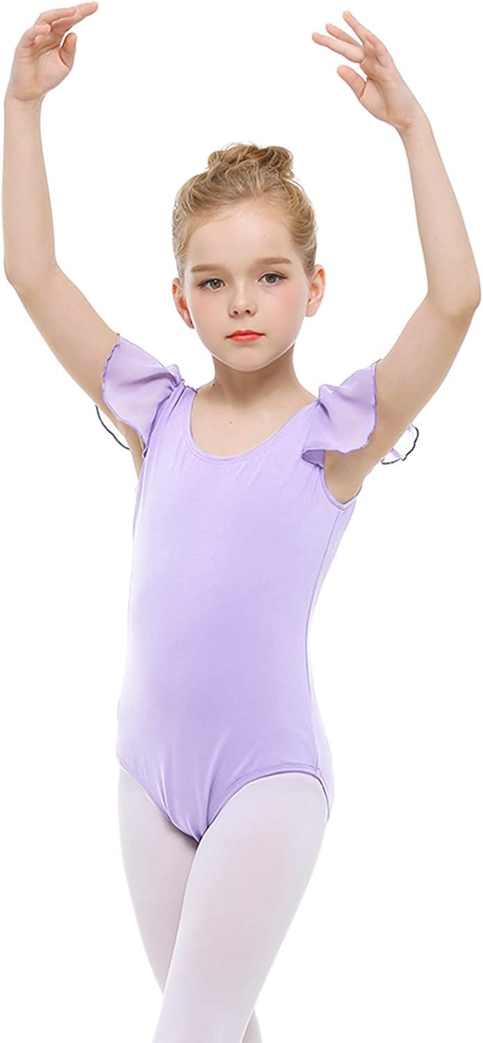 Stelle Girls Leotards Black Ballet Dance Leotards Ruffle Short Sleeve Gymnastics Outfits(Toddler/Little Kid/Big Kid)(Lavender)