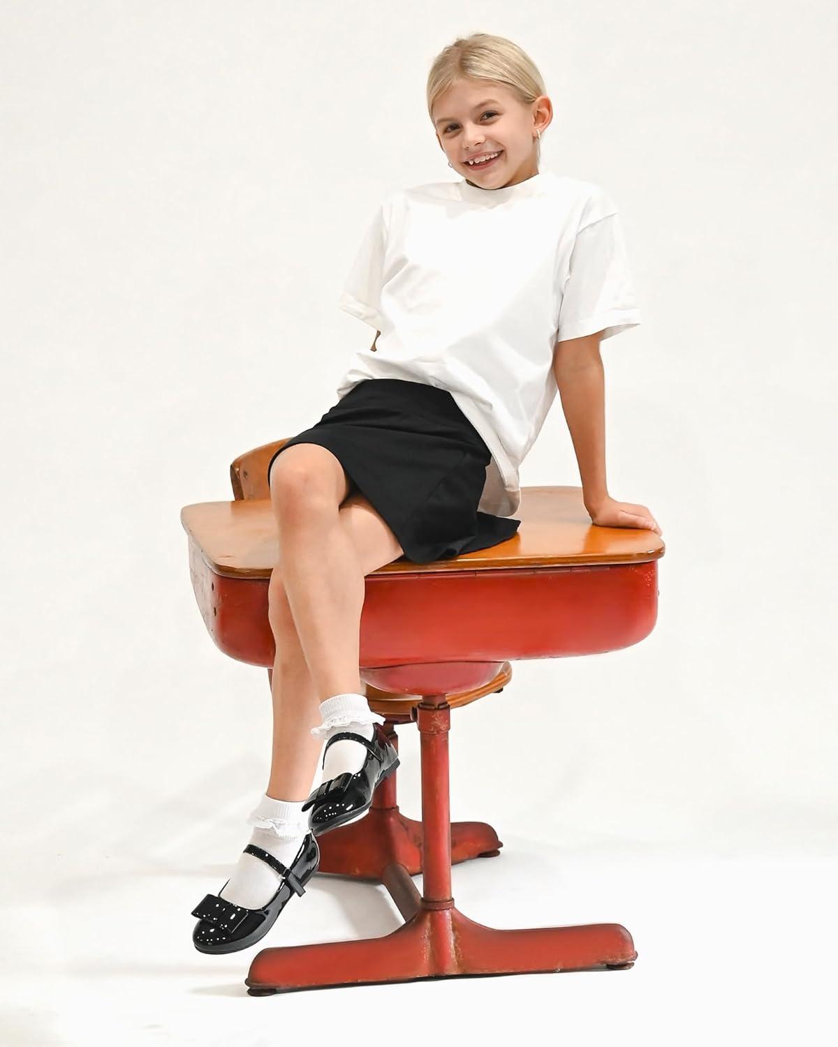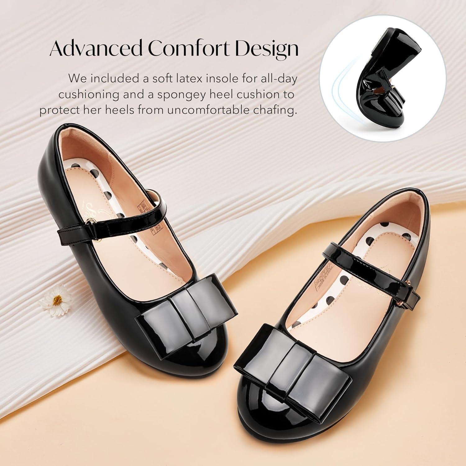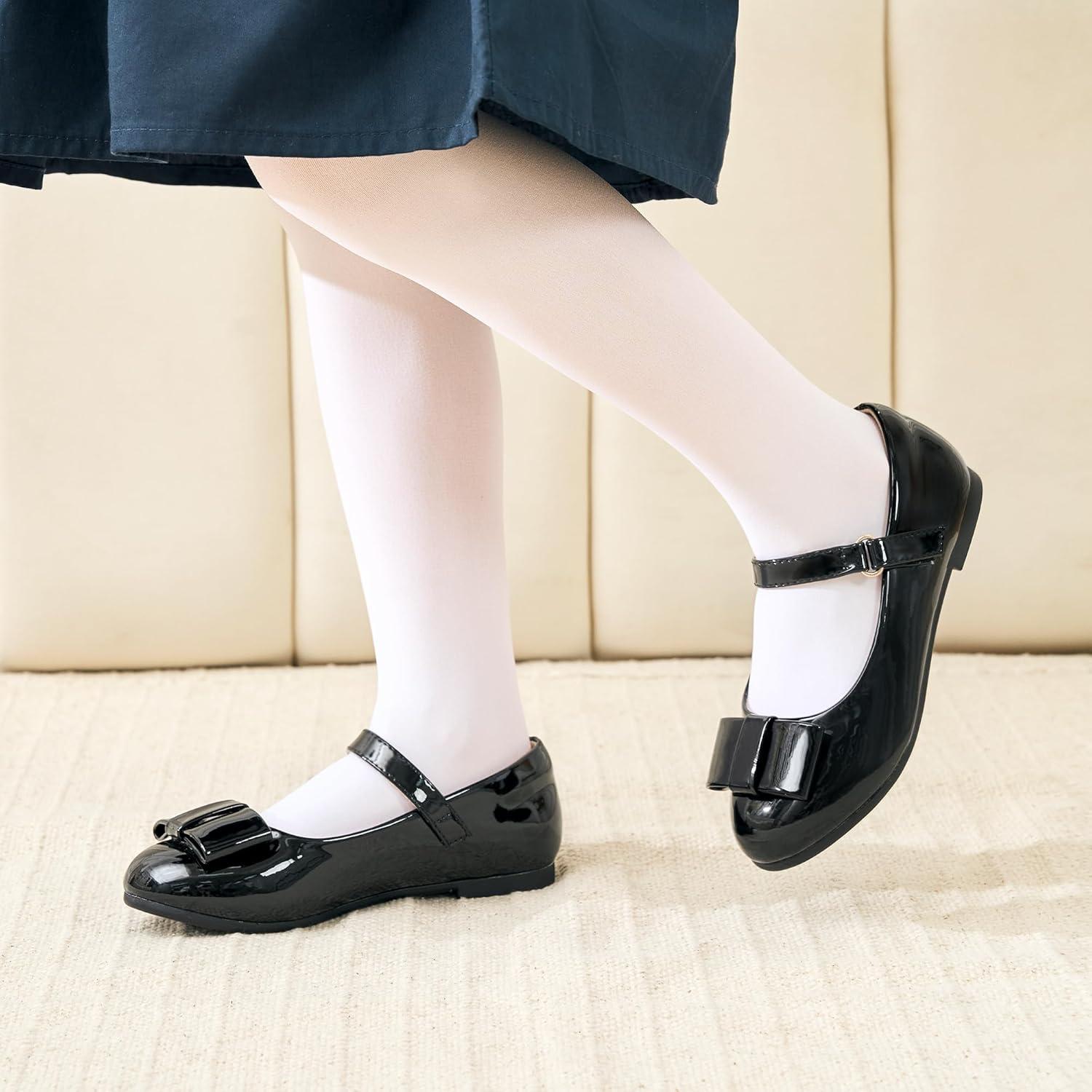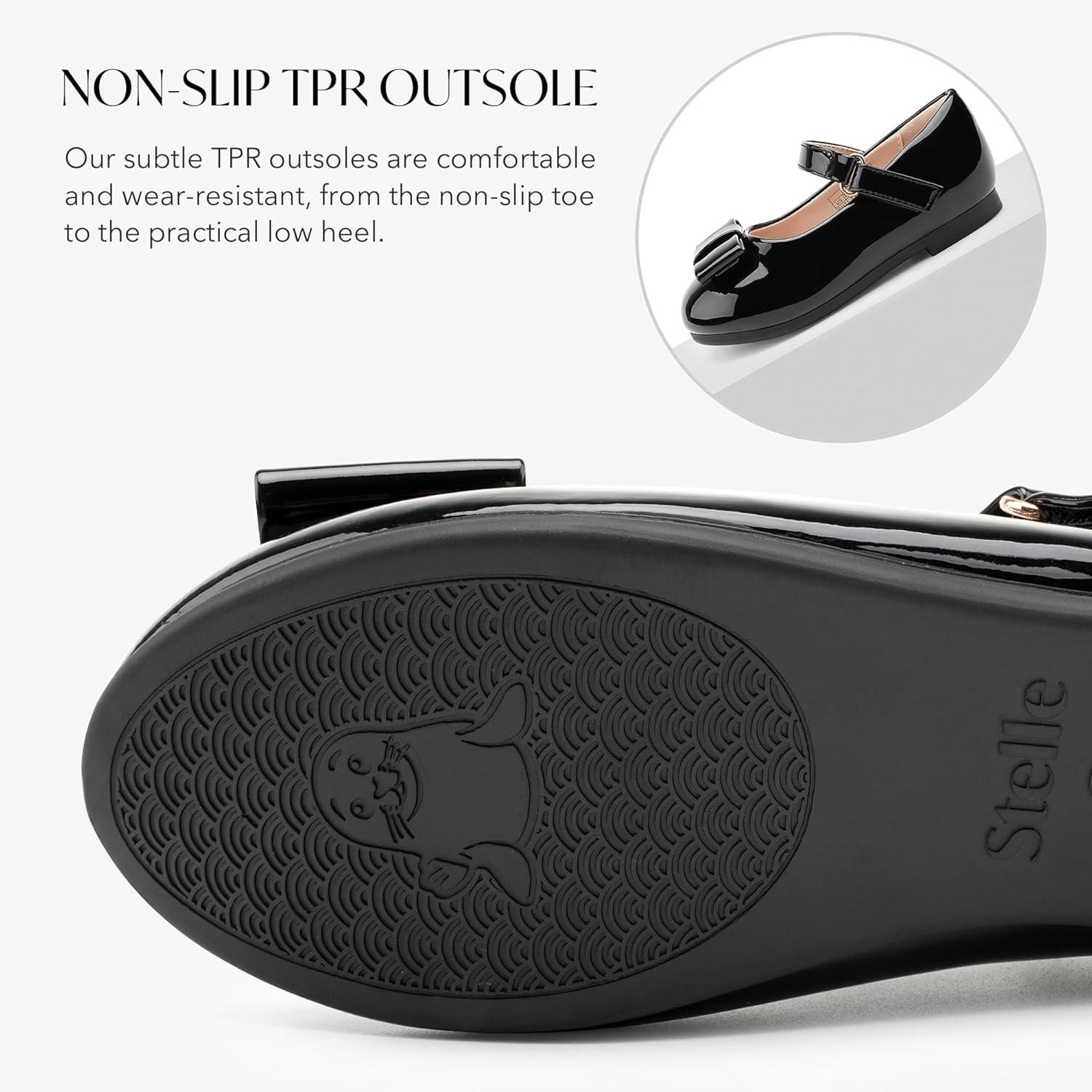 Stelle Girls Mary Jane Dress Shoes Ballerina Flat with Bow for Toddler/Little/Big Kids(Black)