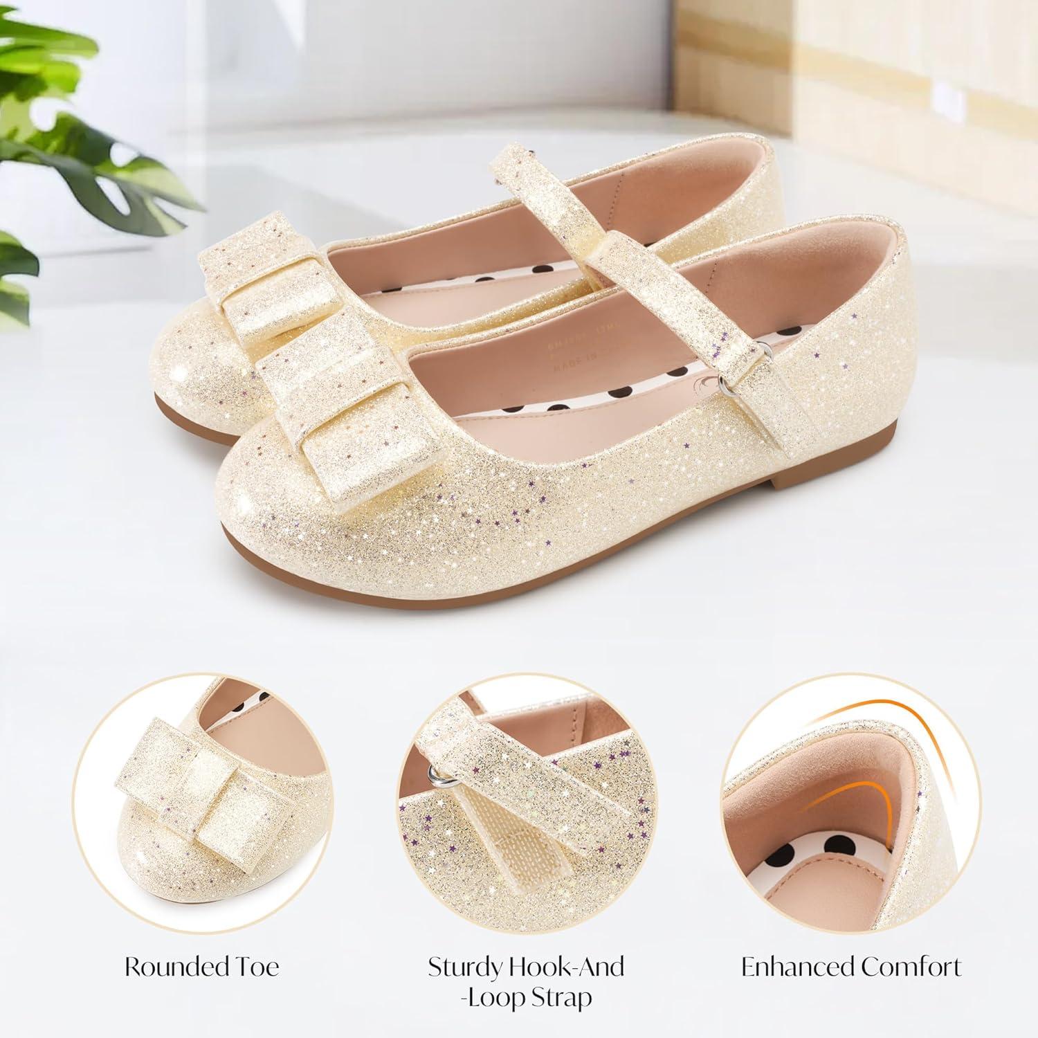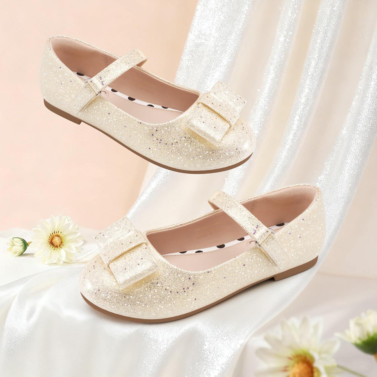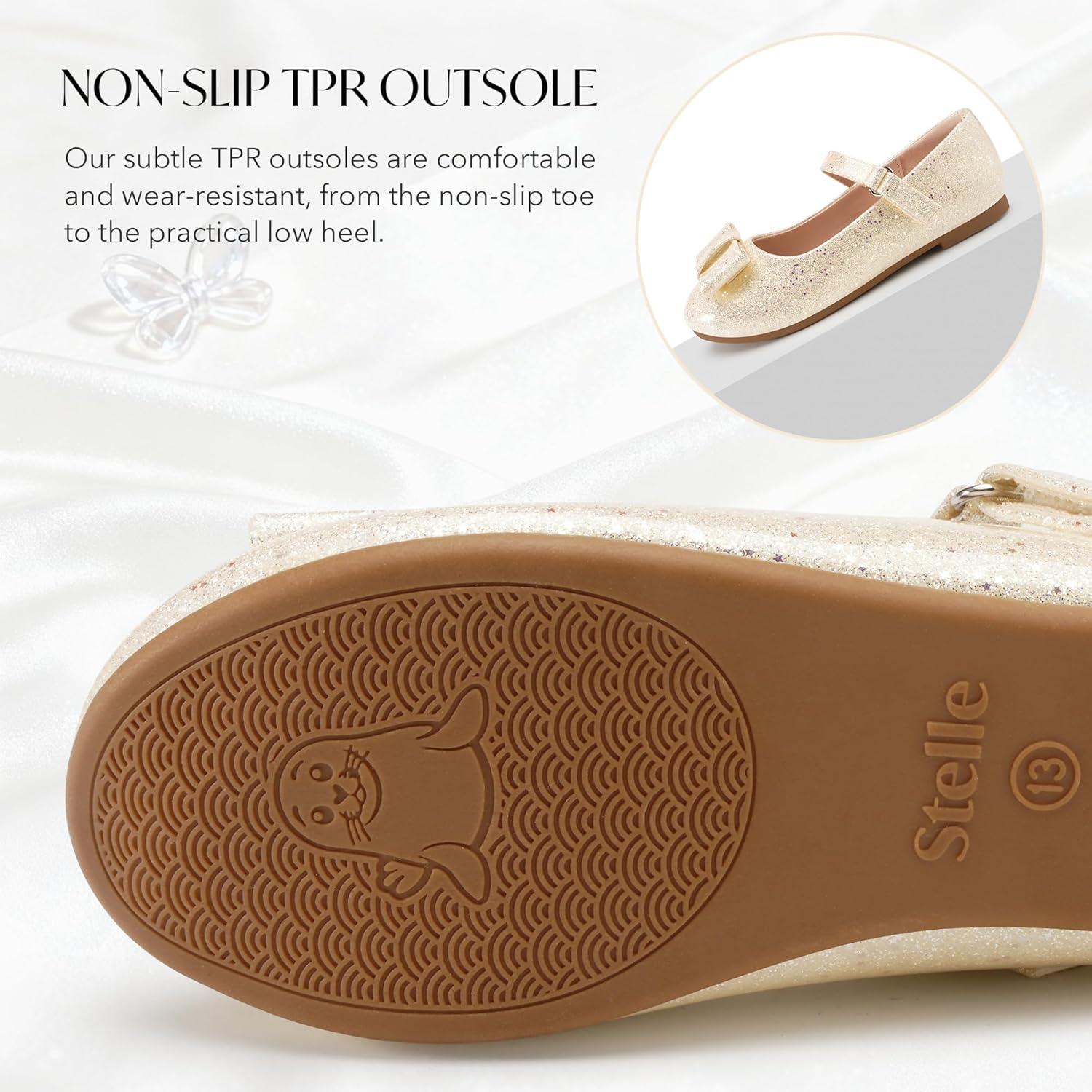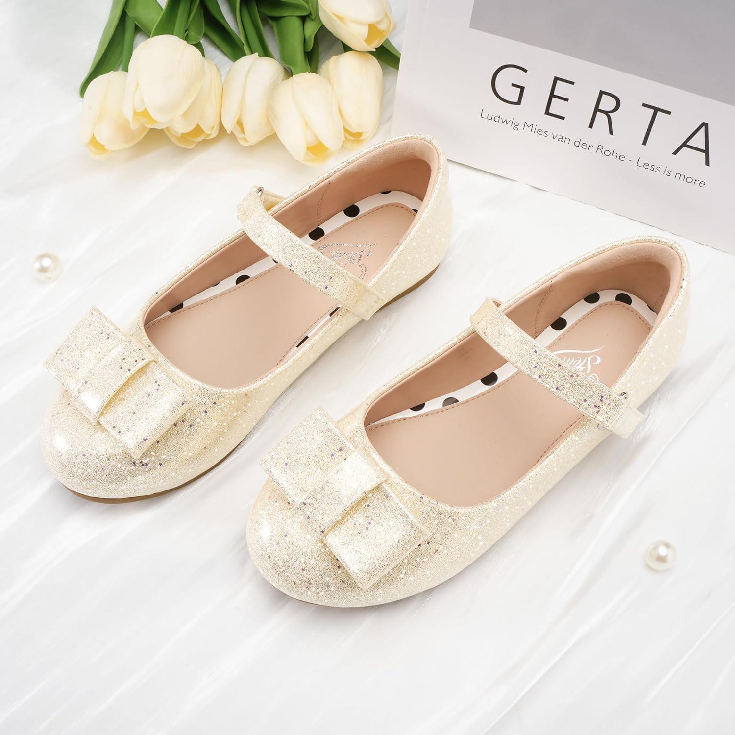 Stelle Girls Mary Jane Dress Shoes Ballerina Flat with Bow for Toddler/Little/Big Kids(Champagne Glimmer)