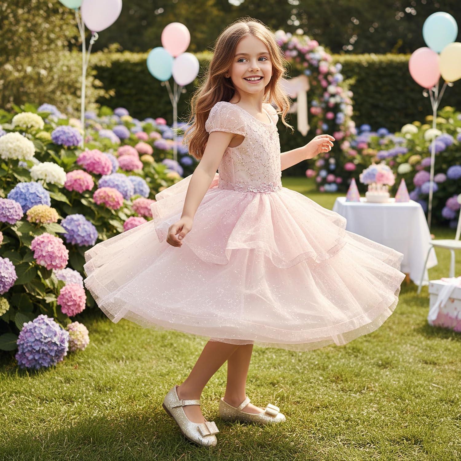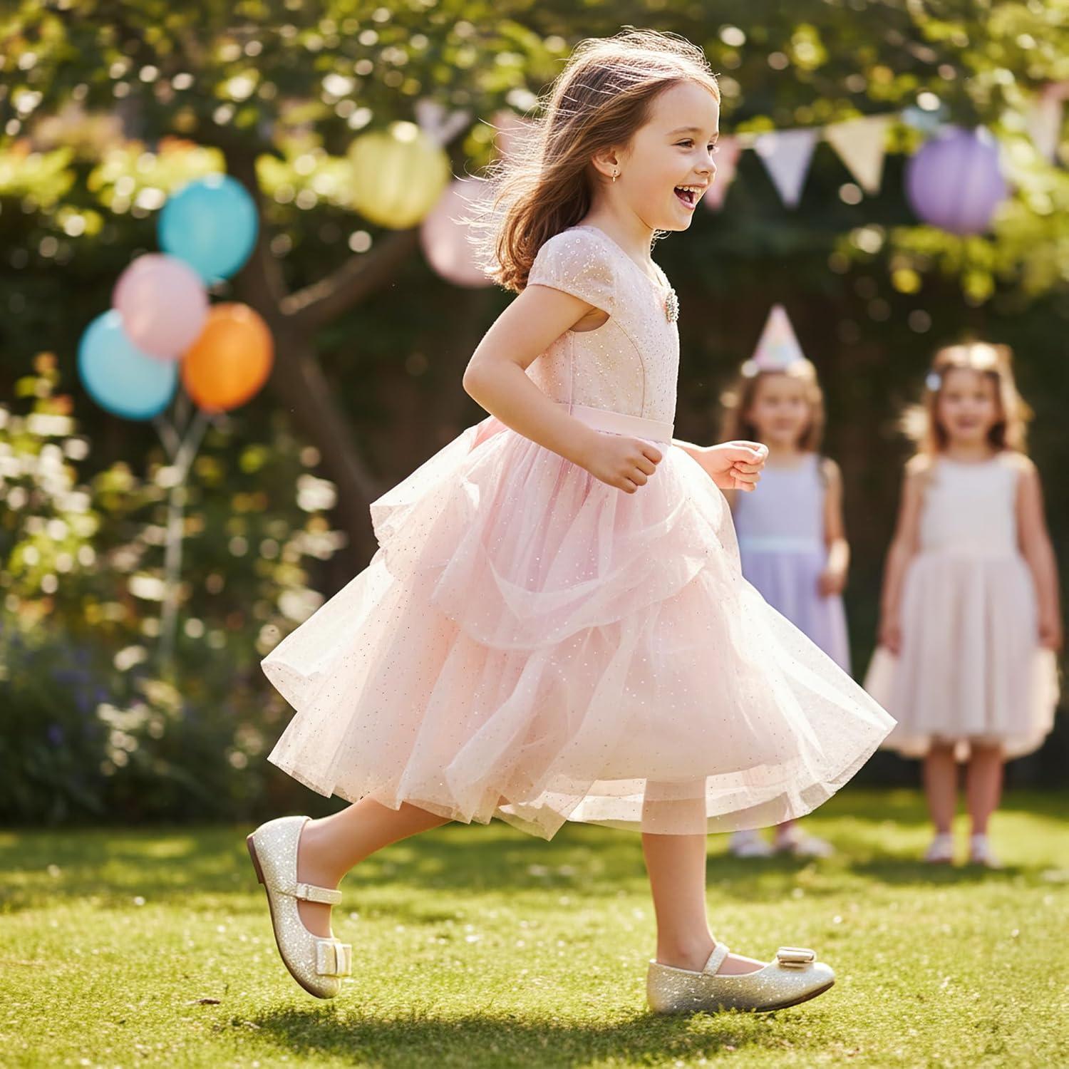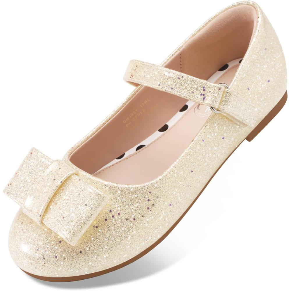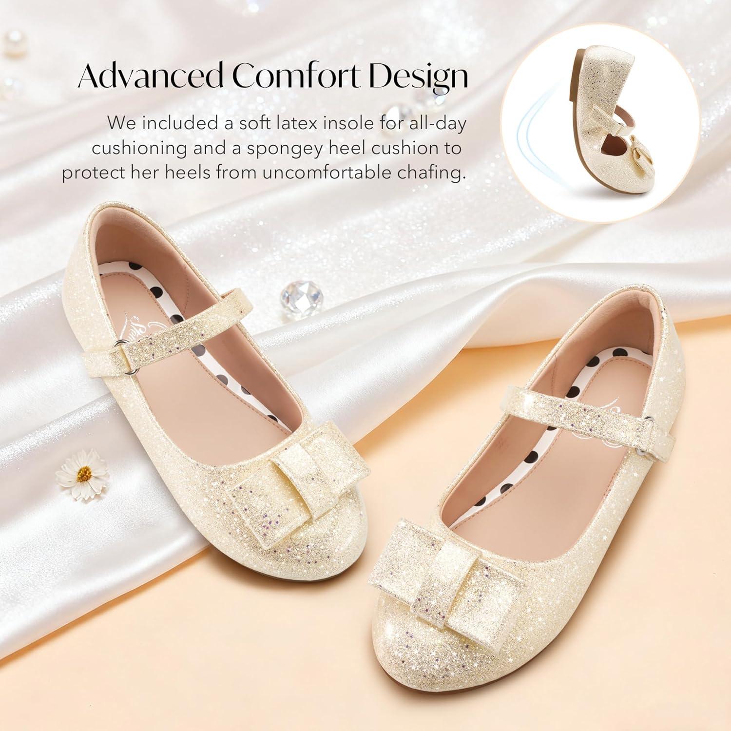 Stelle Girls Mary Jane Dress Shoes Ballerina Flat with Bow for Toddler/Little/Big Kids(Champagne Glimmer)