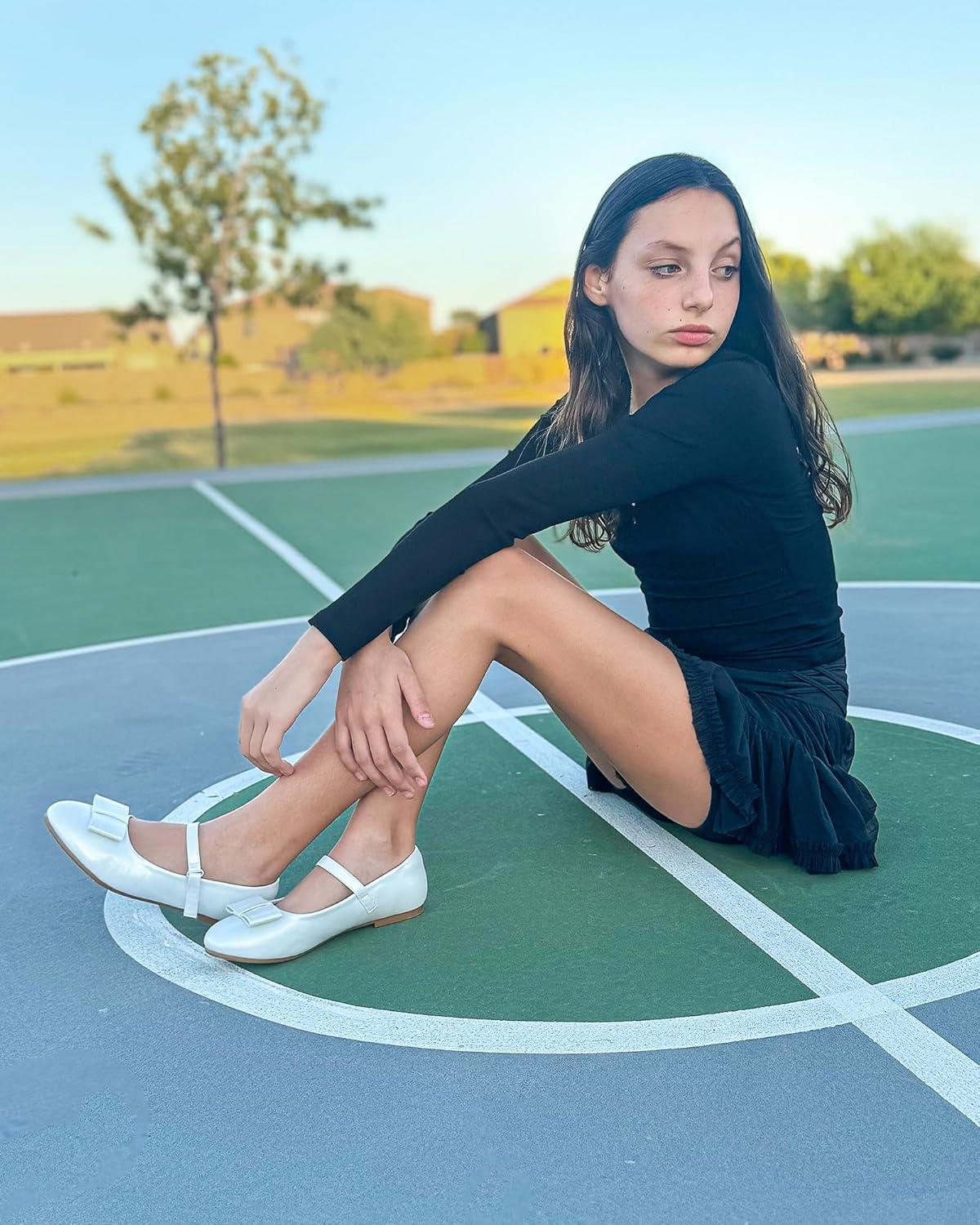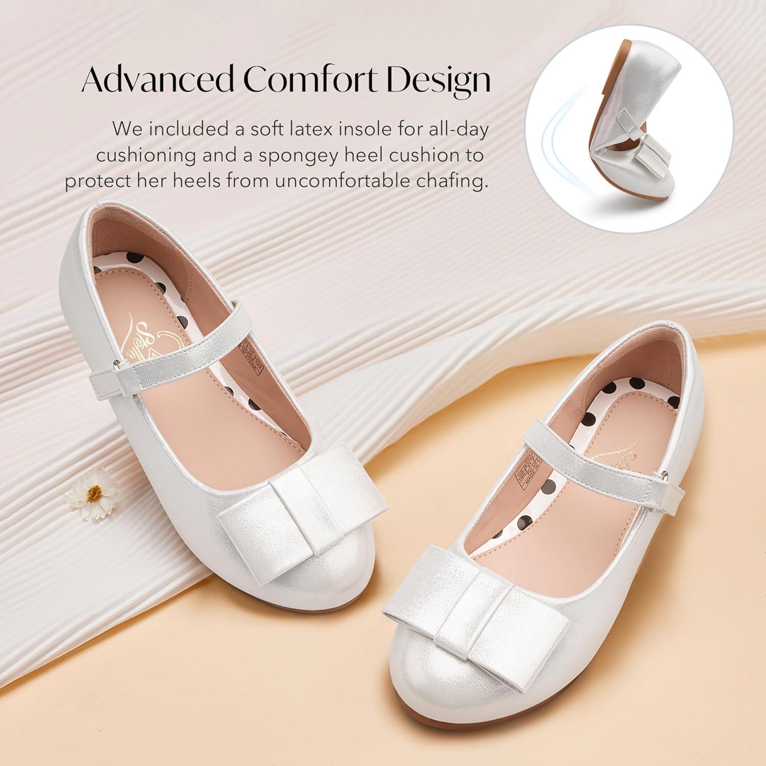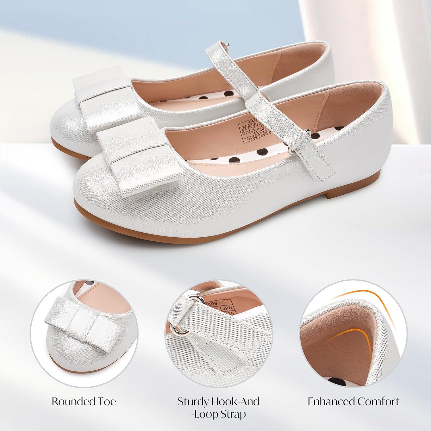 Stelle Girls Mary Jane Dress Shoes Ballerina Flat with Bow for Toddler/Little/Big Kids(Light Siliver)