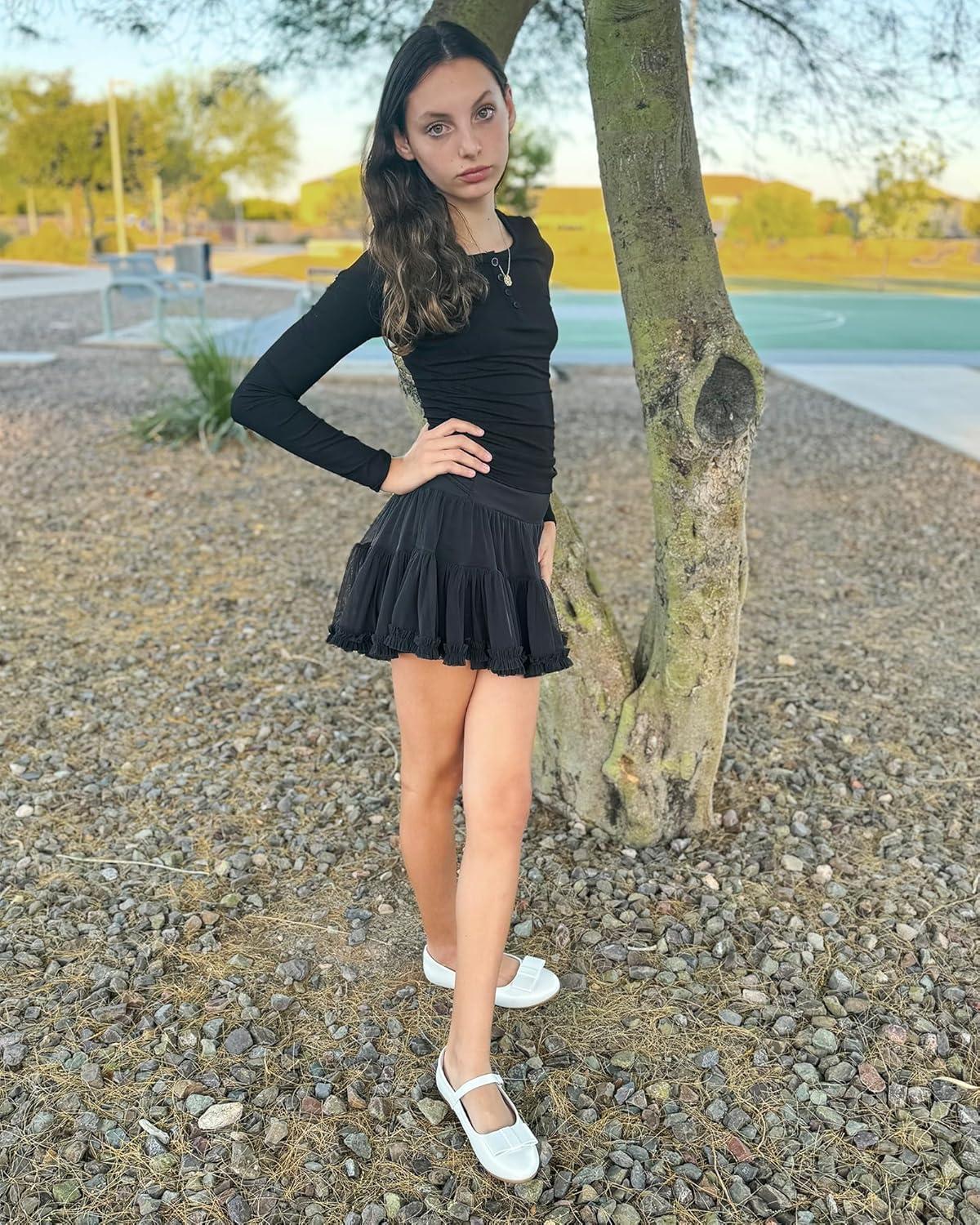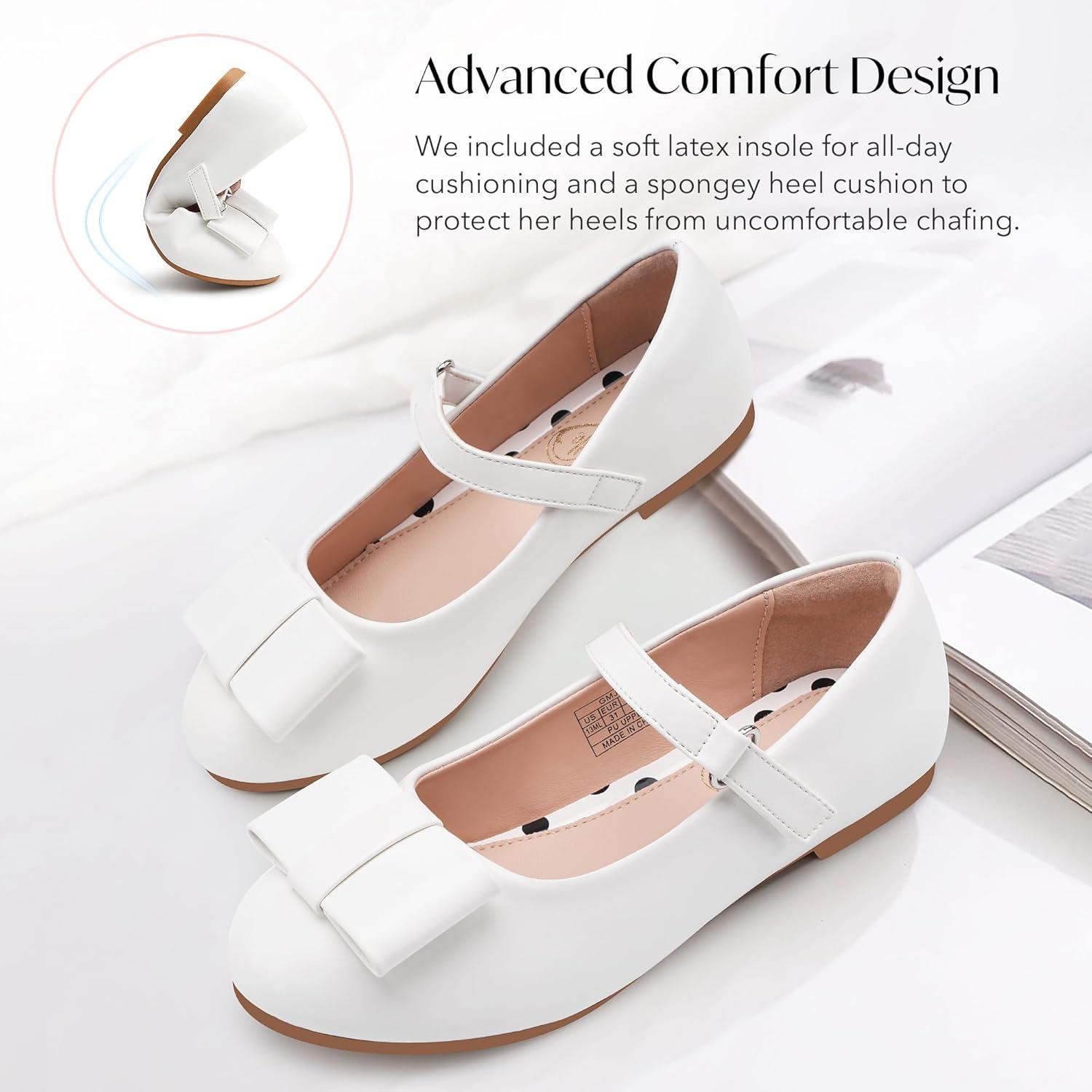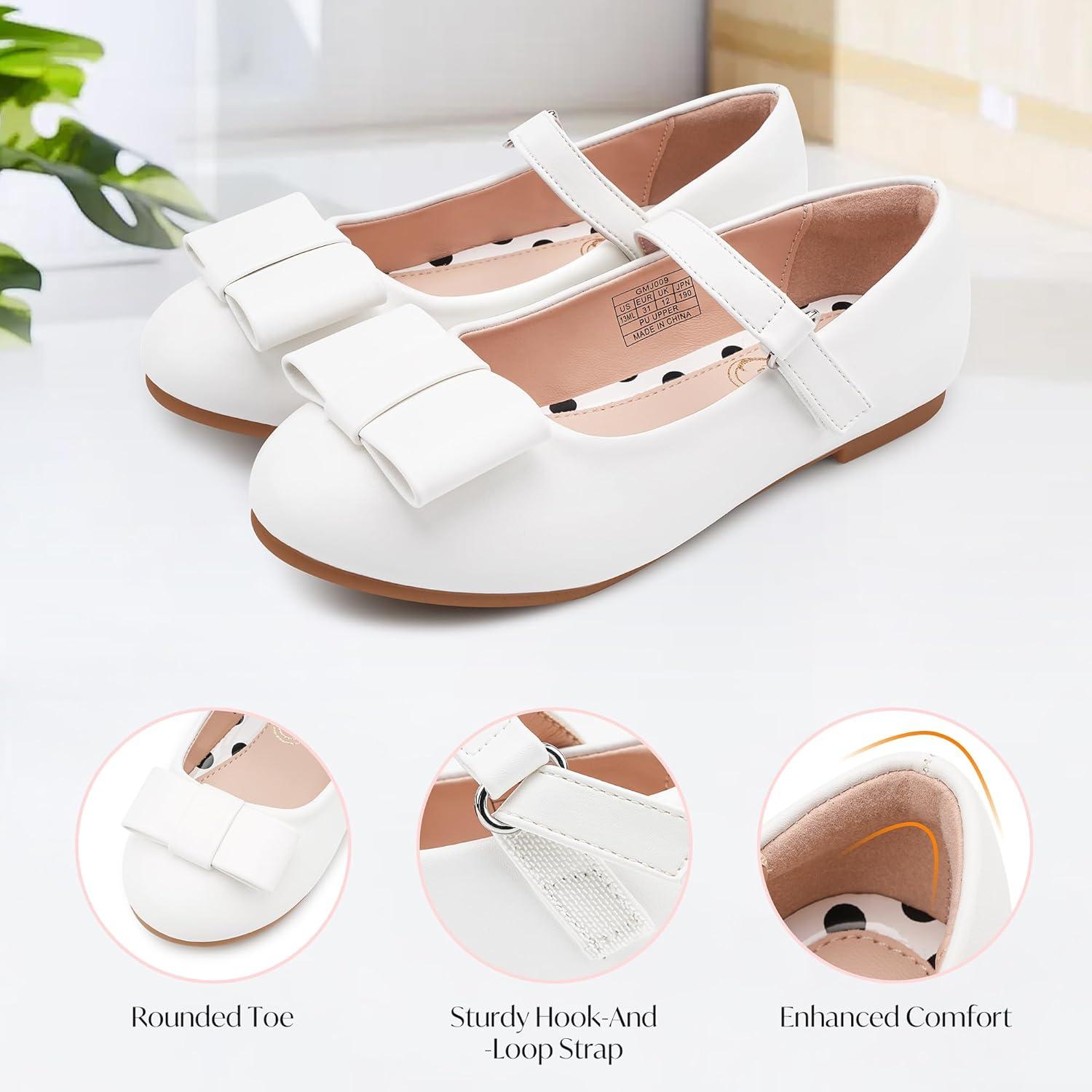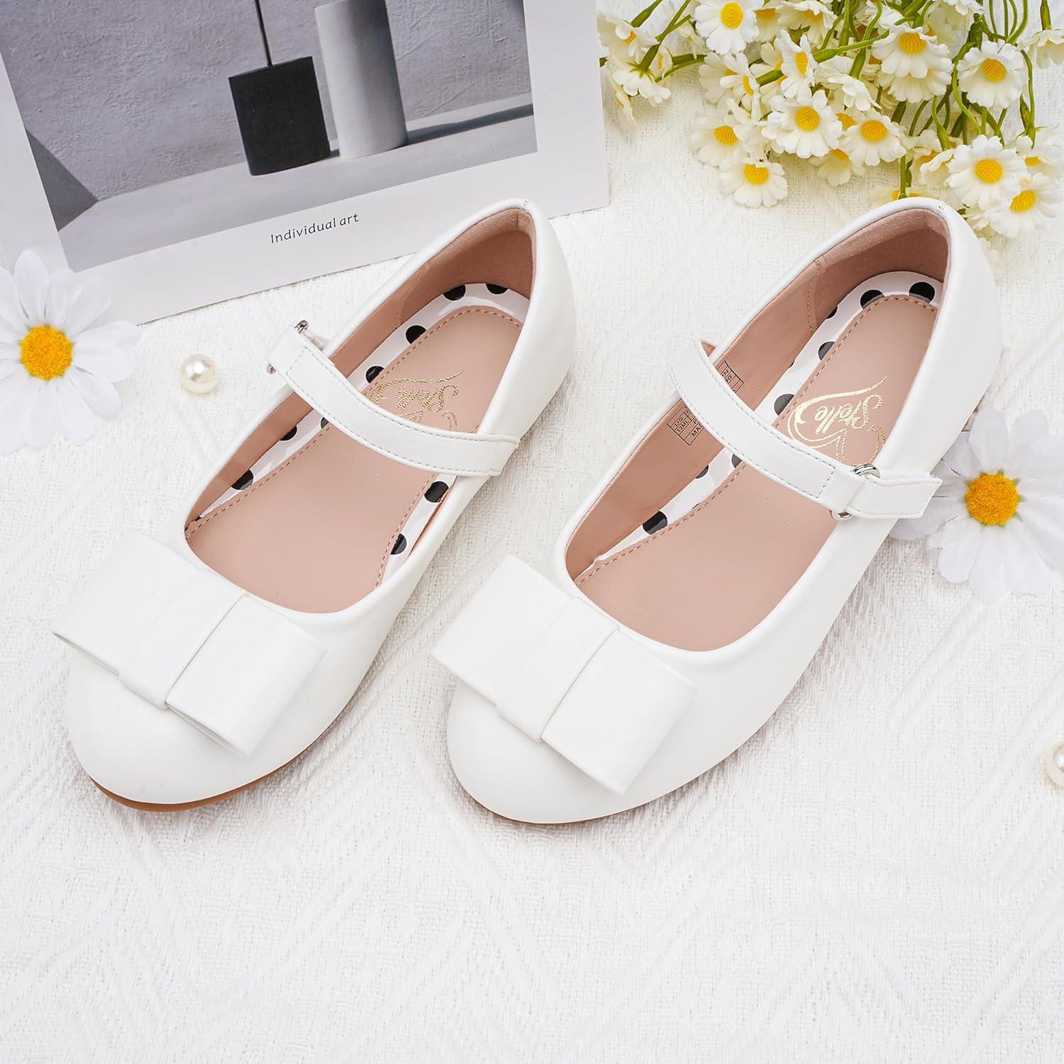 Stelle Girls Mary Jane Dress Shoes Ballerina Flat with Bow for Toddler/Little/Big Kids(White)