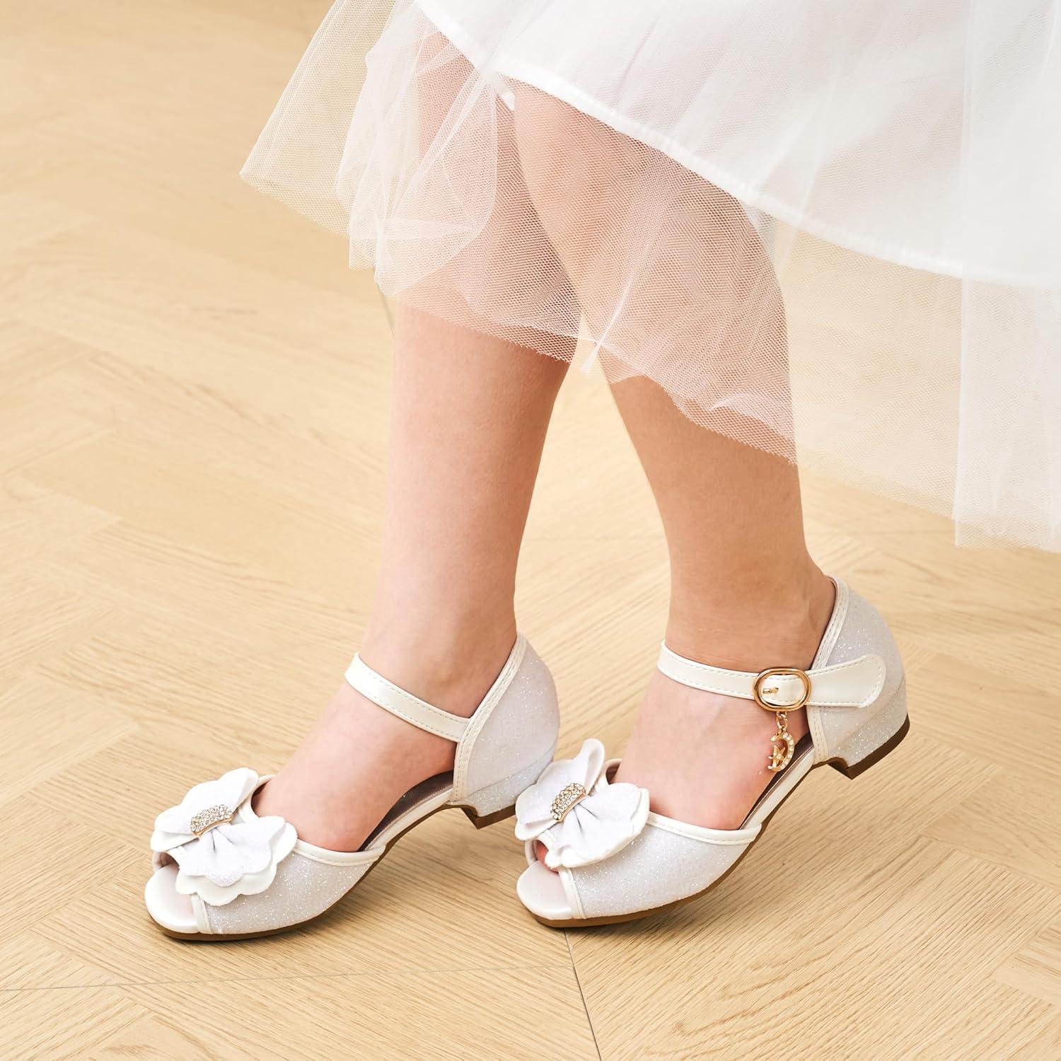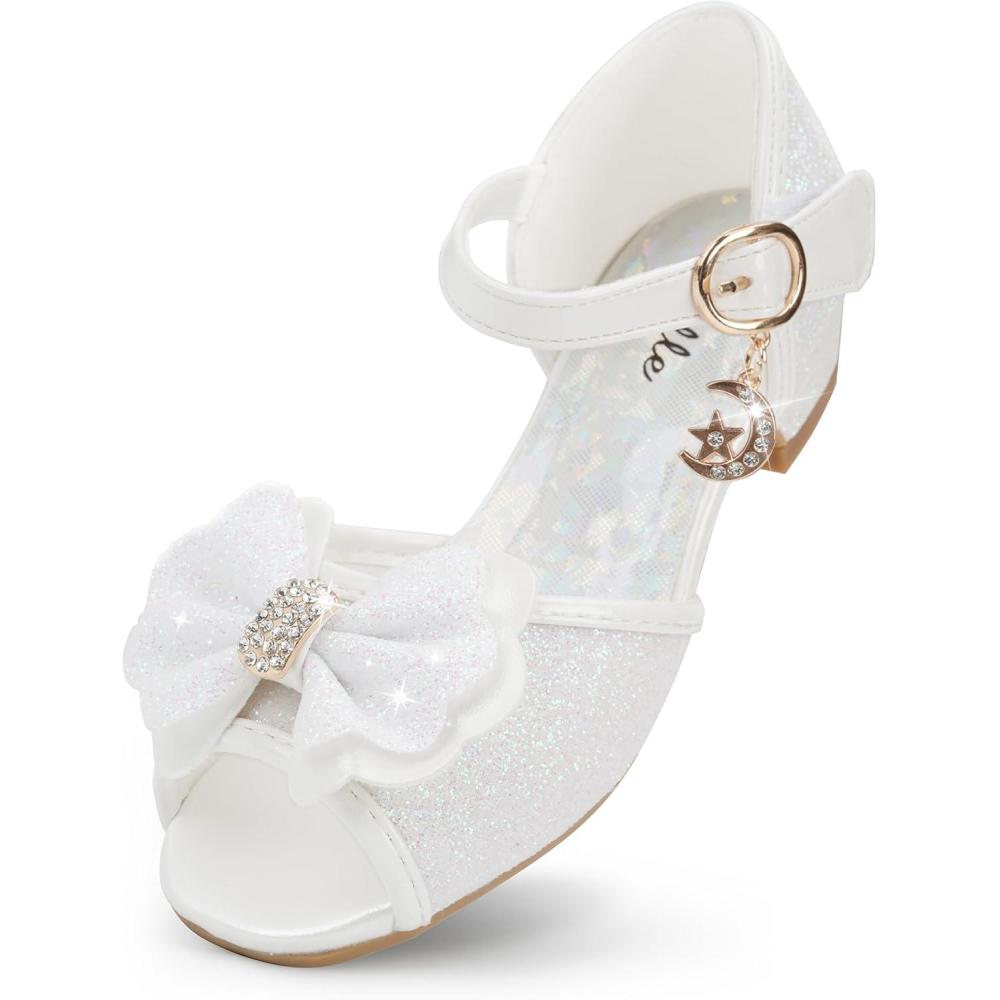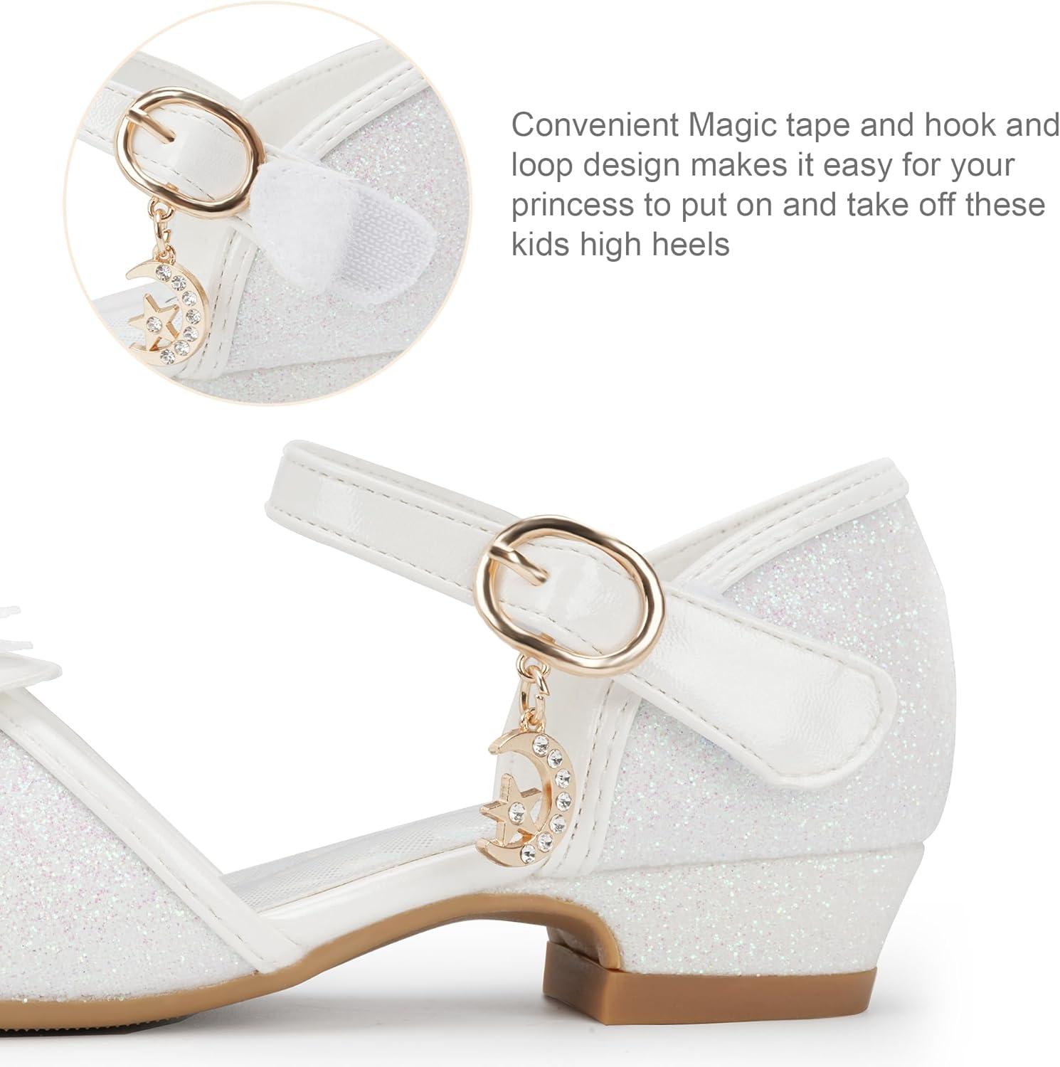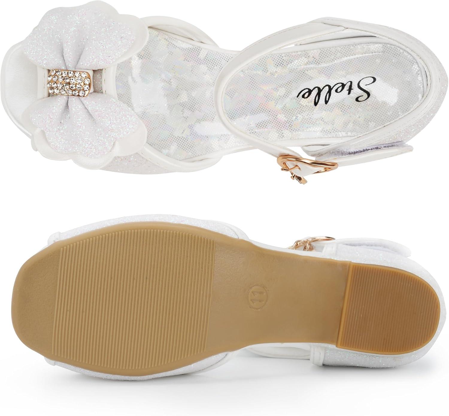 Stelle Girls Mary Jane Dress Shoes Low Heel Glitter Patent Bow Kids Party Wedding Flower Girl School Shoes(Toddler/Little/Big Kid)(Bella-white)