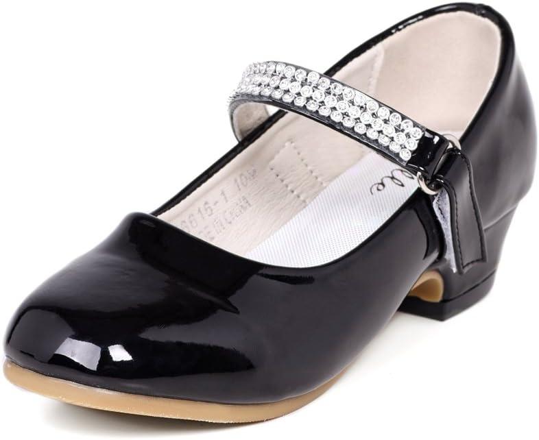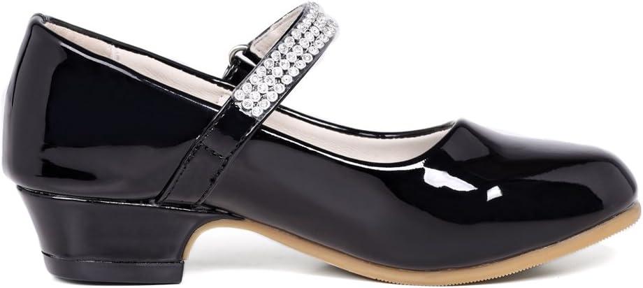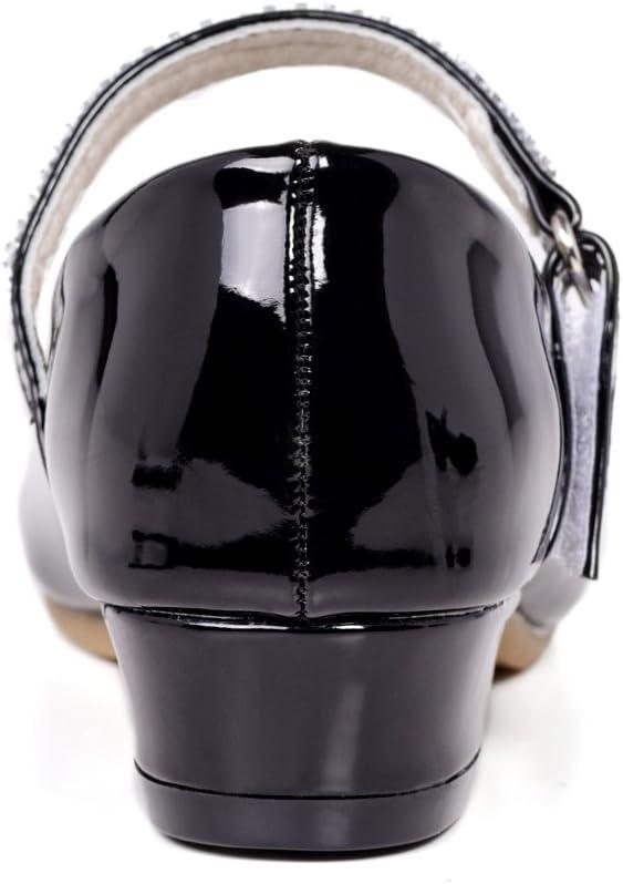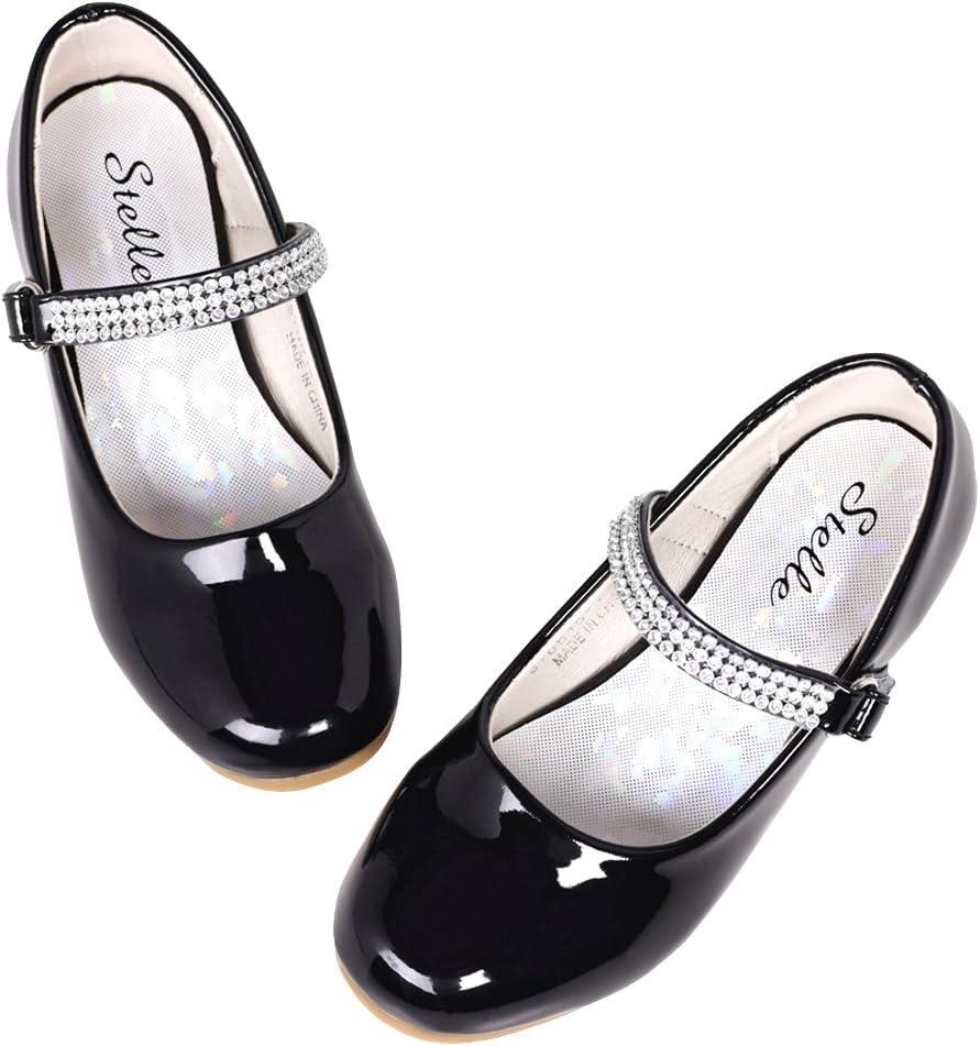Stelle Girls Mary Jane Dress Shoes Low Heel Glitter Patent Bow Kids Party Wedding Flower Girl School Shoes(Toddler/Little/Big Kid)(Classic Patent-black)