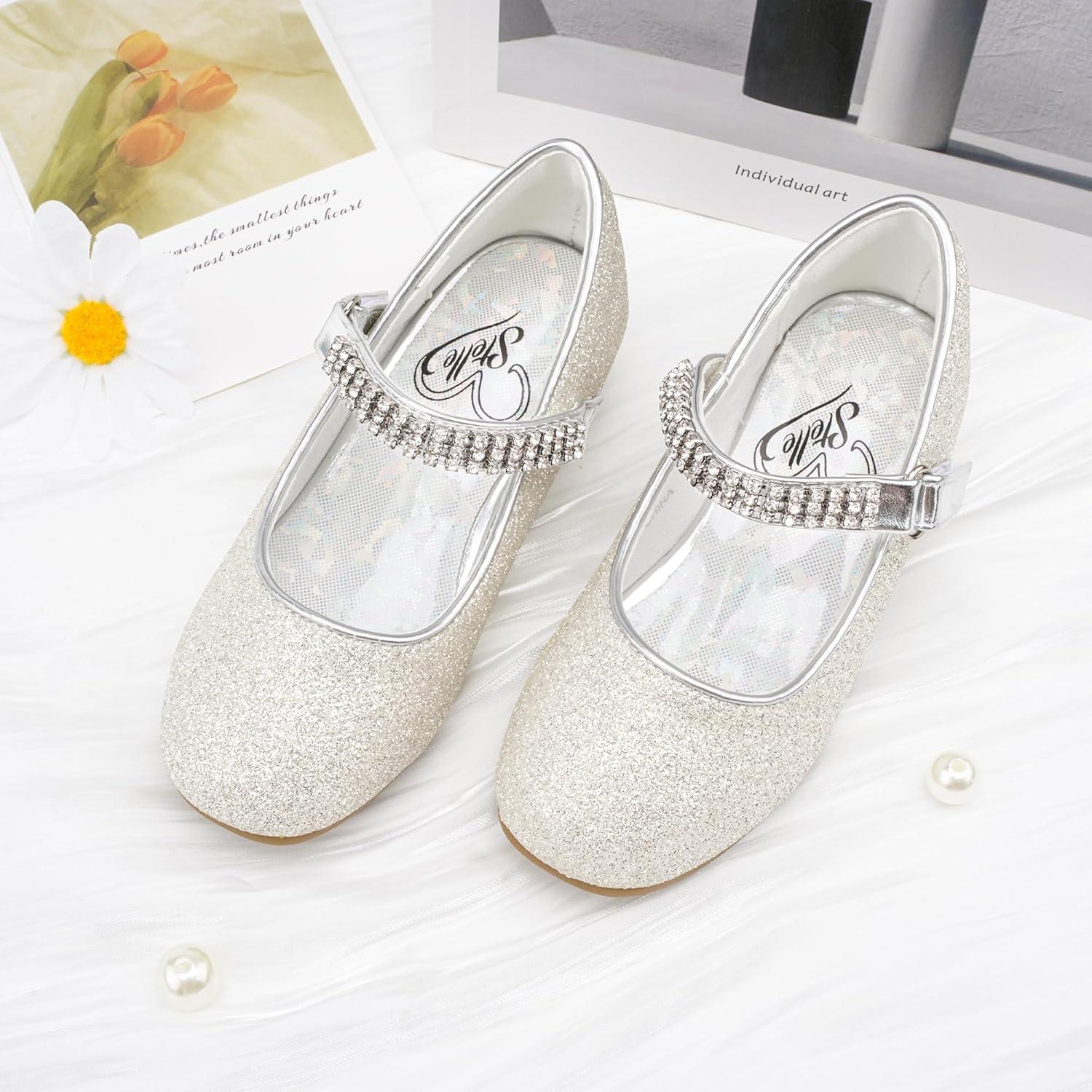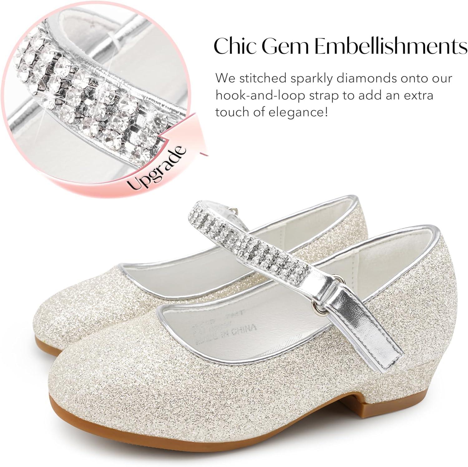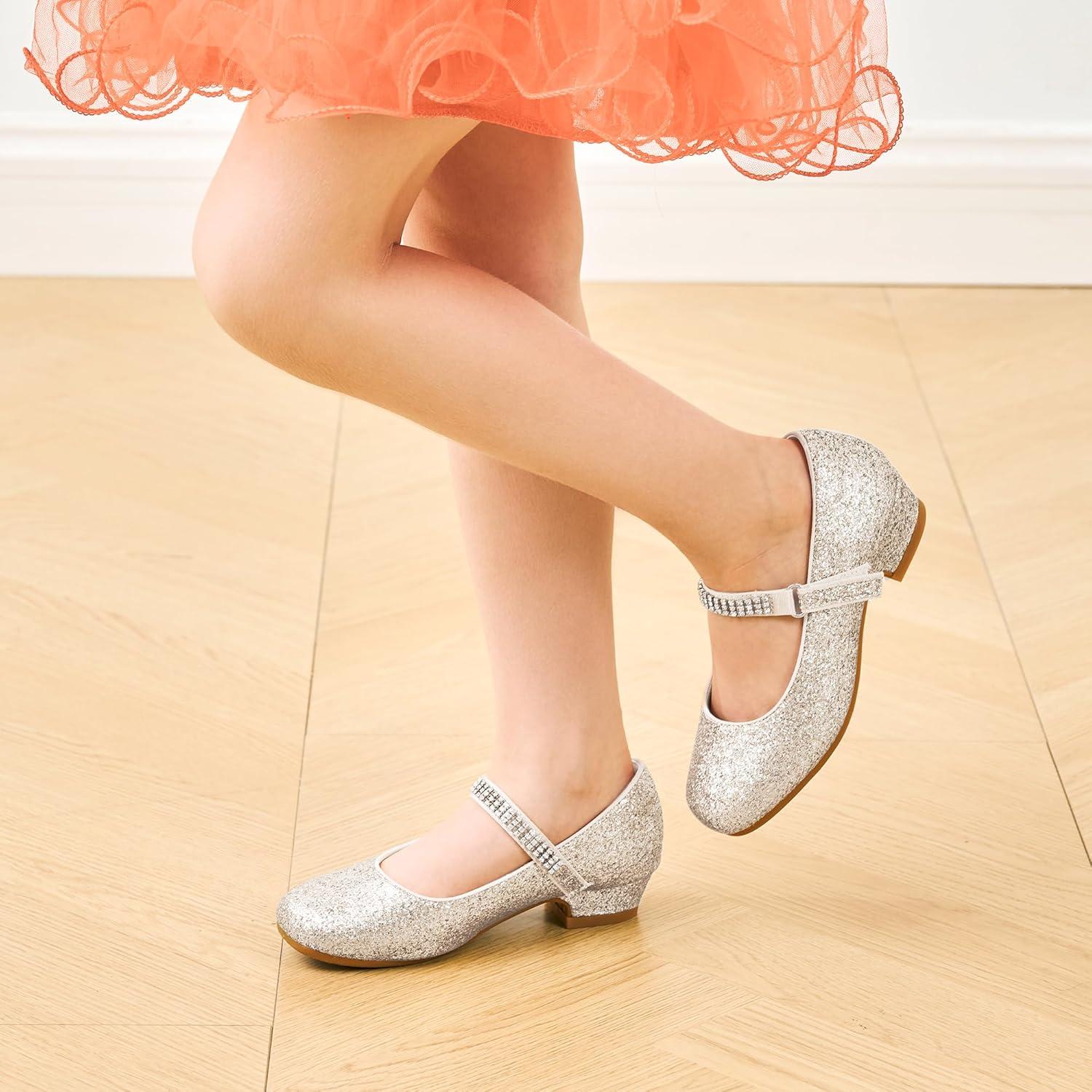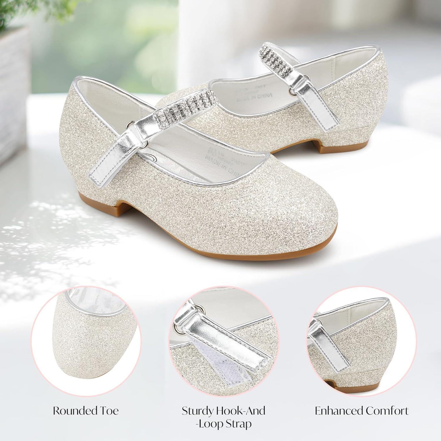 Stelle Girls Mary Jane Dress Shoes Low Heel Glitter Patent Bow Kids Party Wedding Flower Girl School Shoes(Toddler/Little/Big Kid)(Glitter Mary Jane-light Silver)