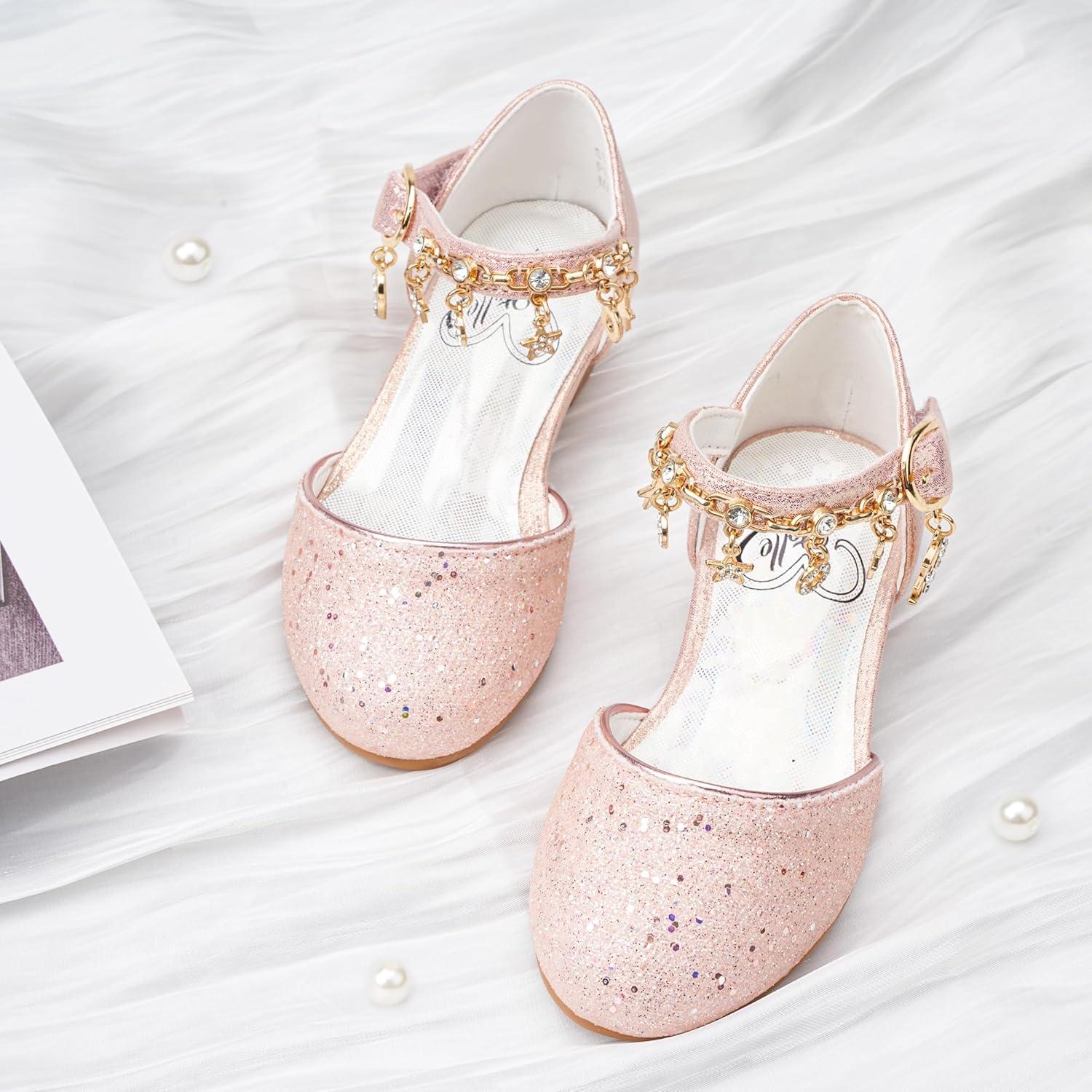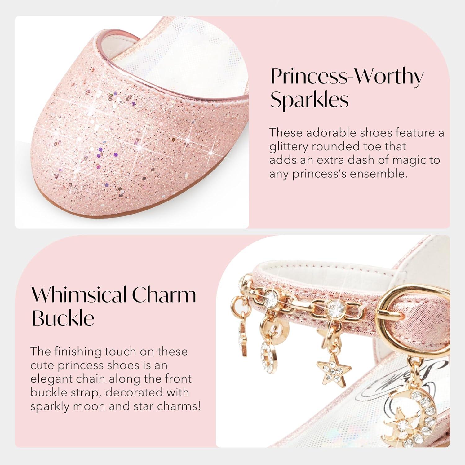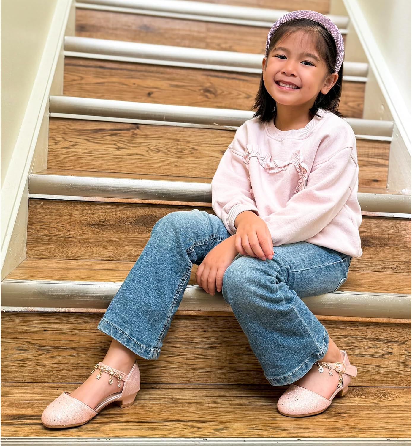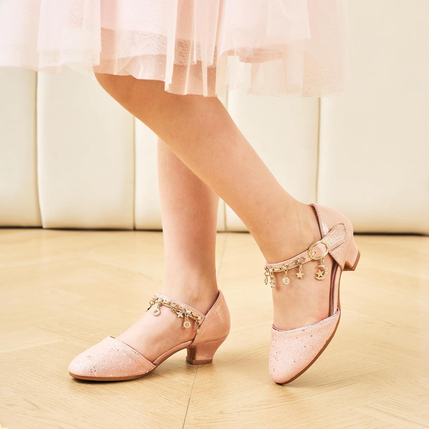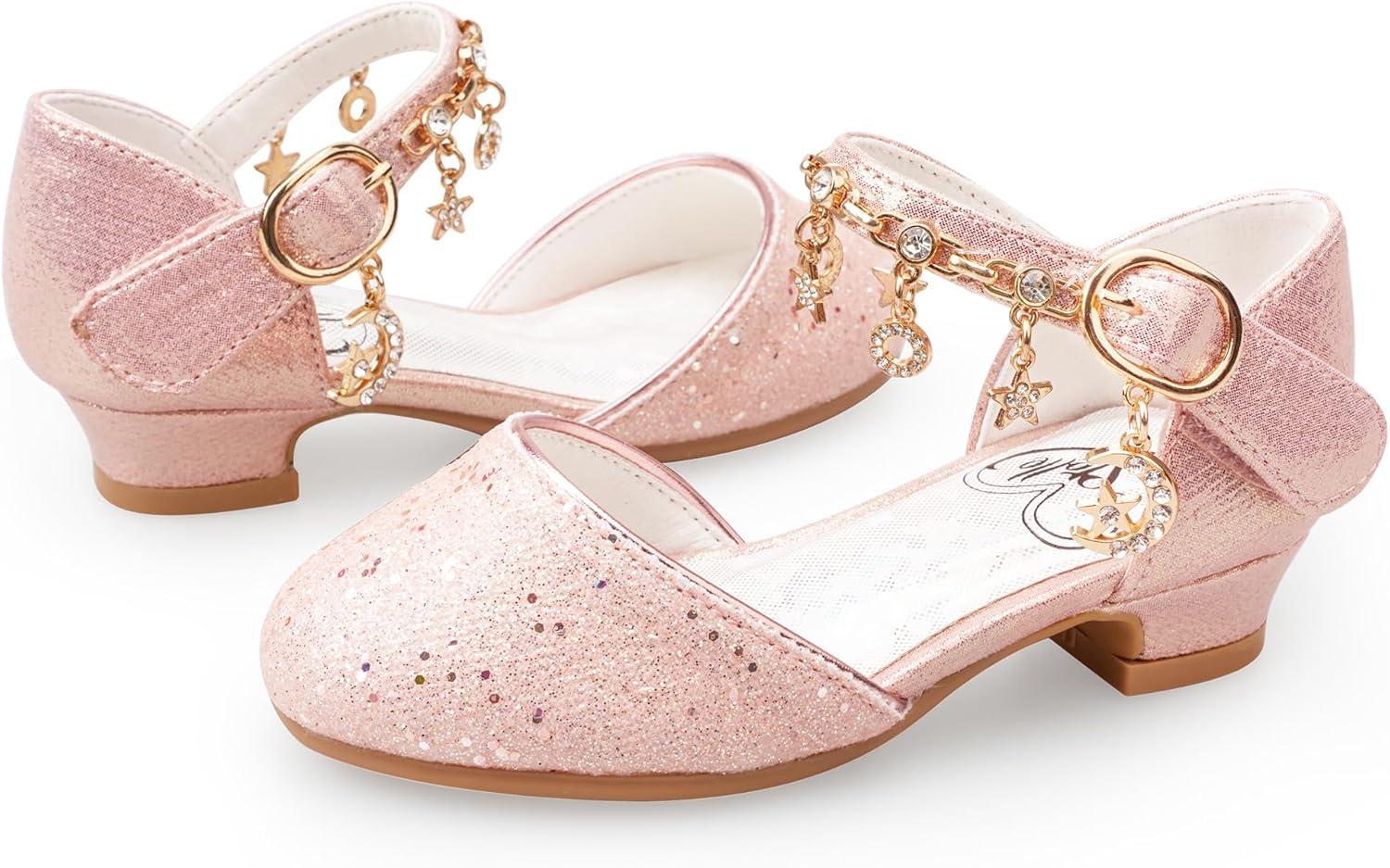 Stelle Girls Mary Jane Dress Shoes Low Heel Glitter Patent Bow Kids Party Wedding Flower Girl School Shoes(Toddler/Little/Big Kid)(Sparkle-pink)