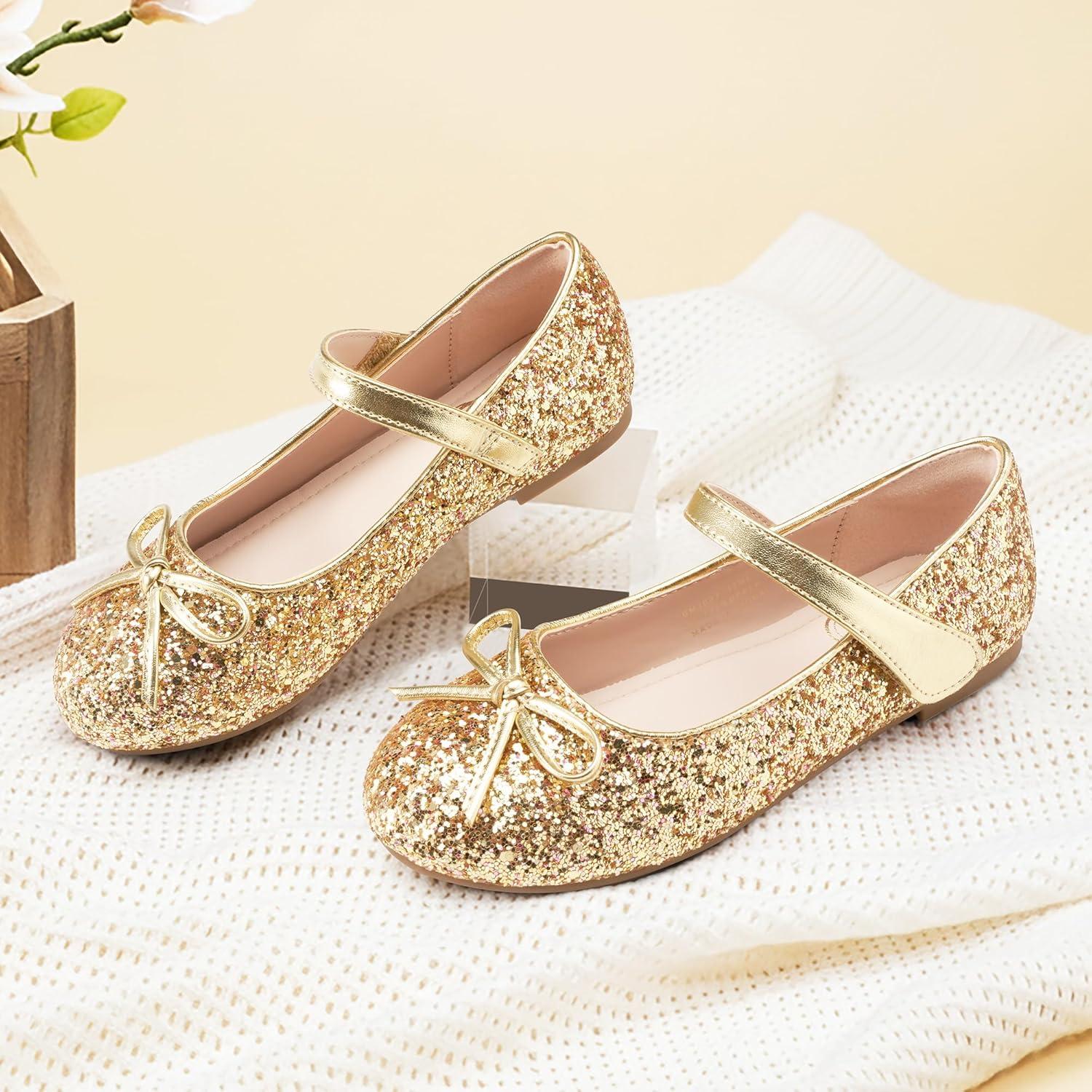 Stelle Girls Mary Jane School Flats Flower Wedding Uniform Party Shoes(Toddler/Little Kids/Big Kids)(1-gold)