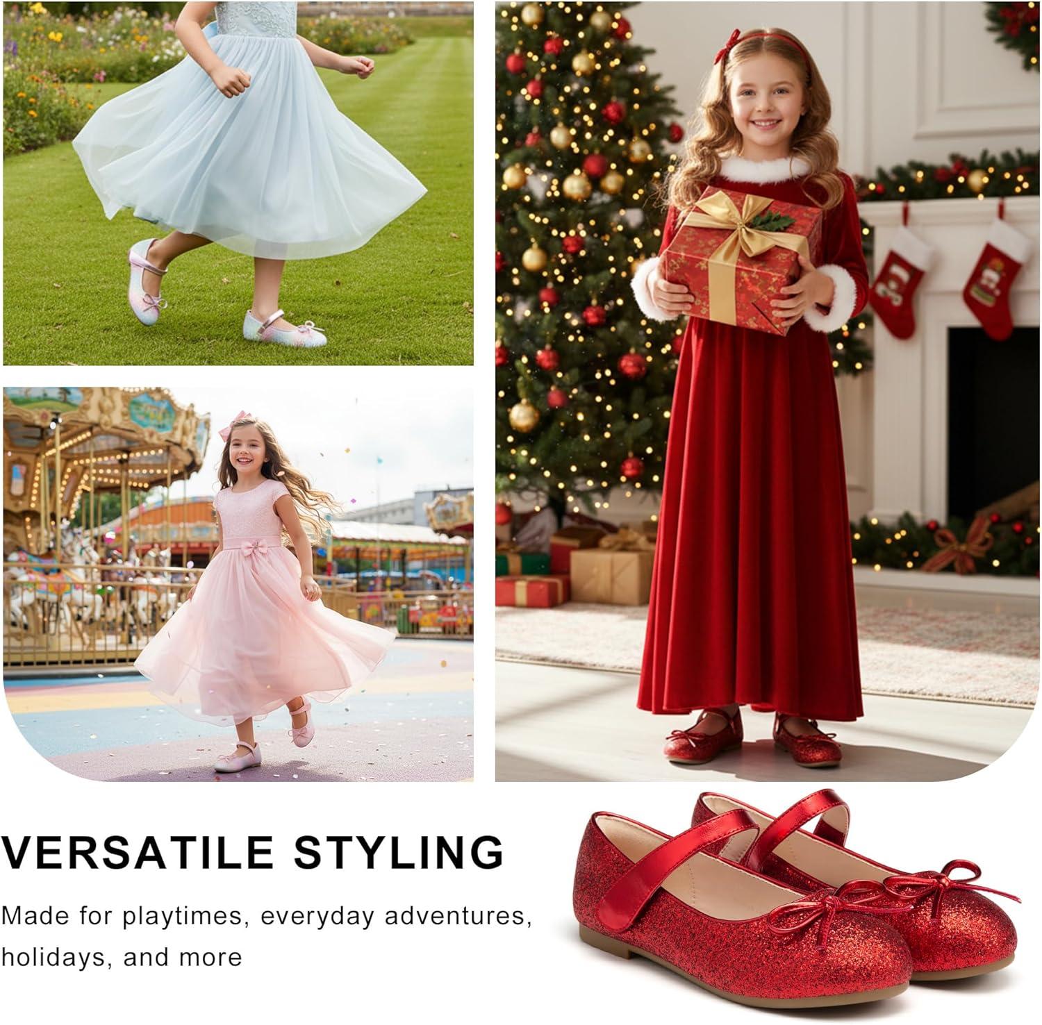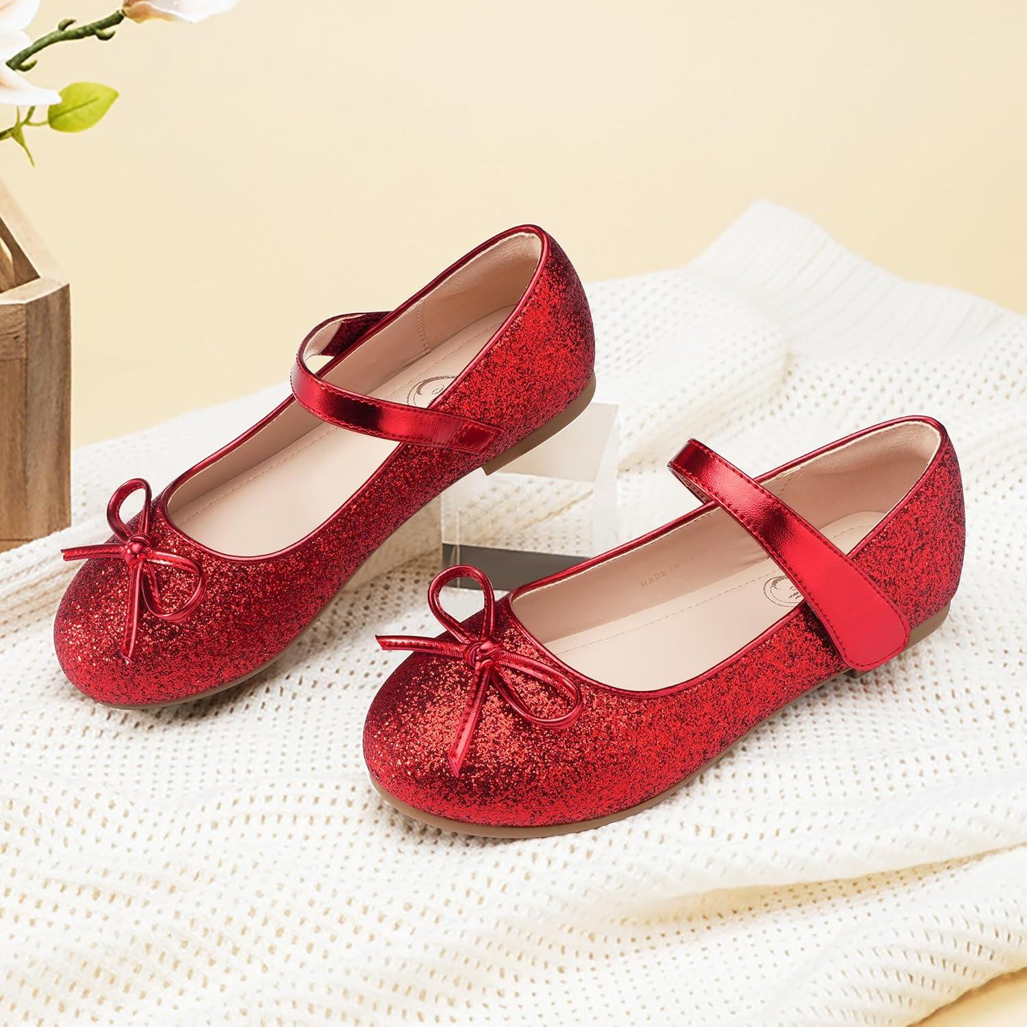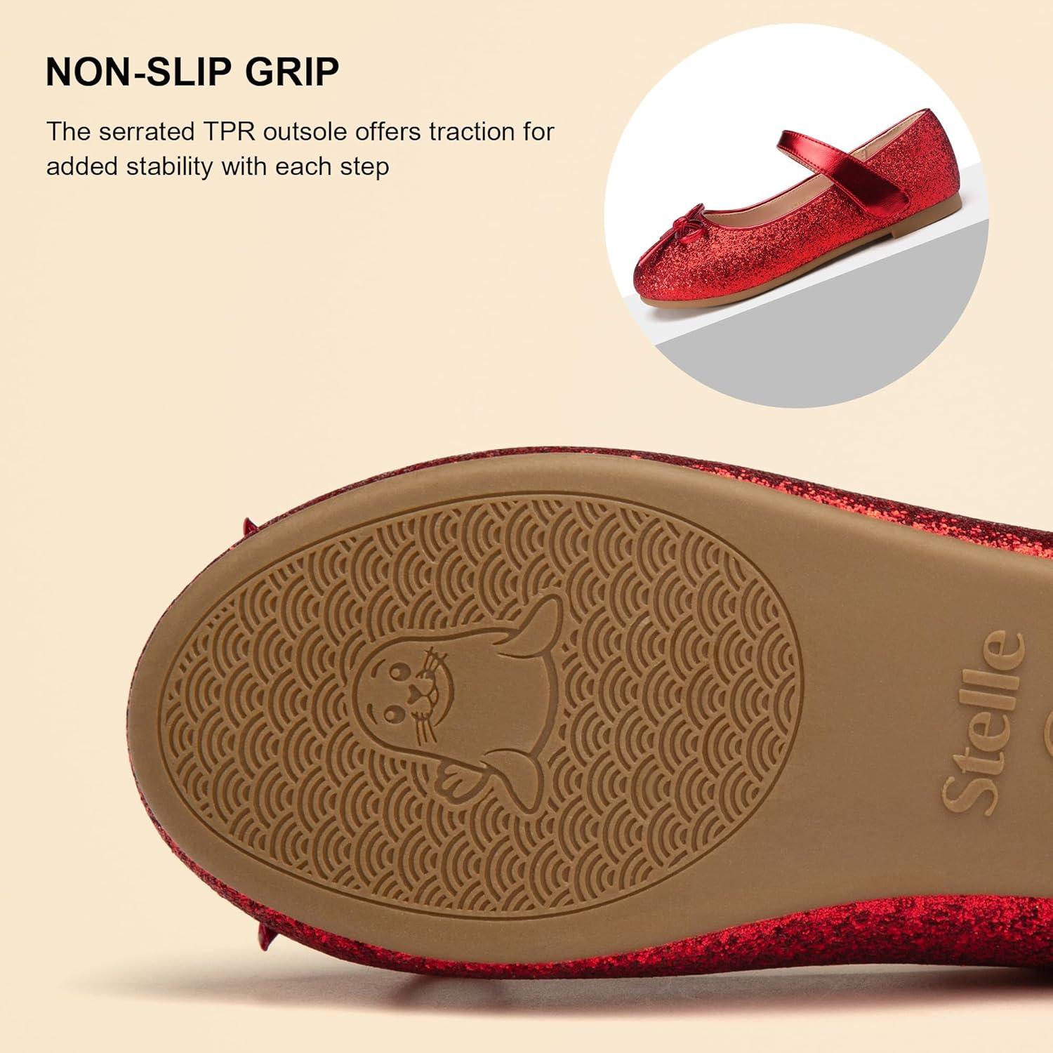 Stelle Girls Mary Jane School Flats Flower Wedding Uniform Party Shoes(Toddler/Little Kids/Big Kids)(Red)
