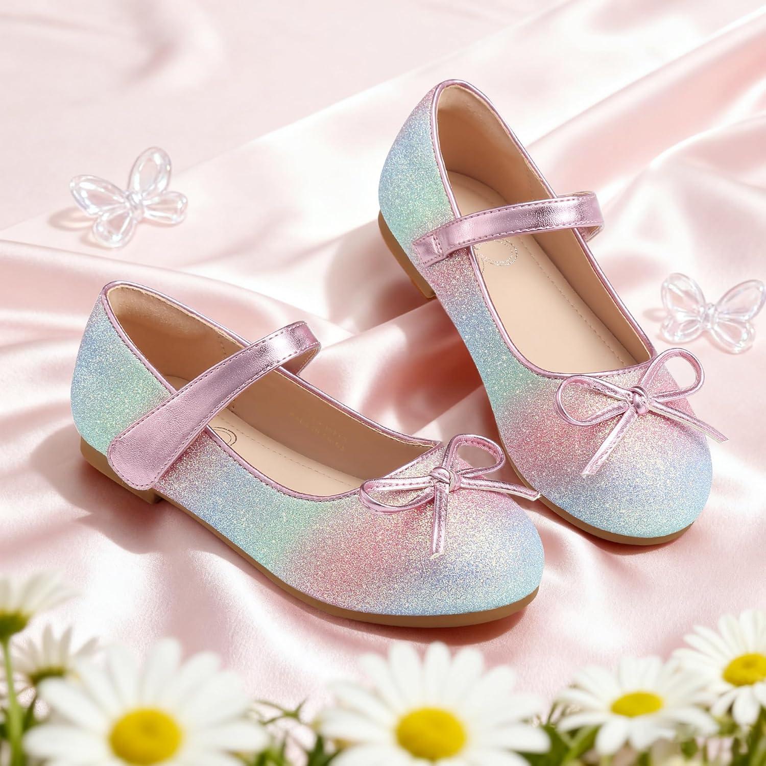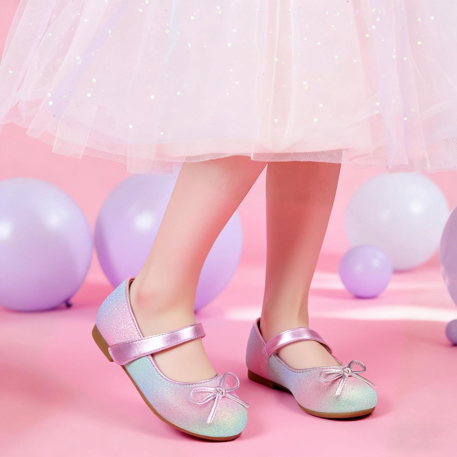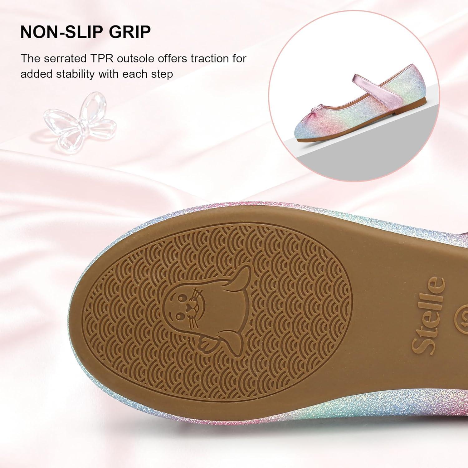 Stelle Girls Mary Jane School Flats Flower Wedding Uniform Party Shoes(Toddler/Little Kids/Big Kids)(Unicorn Dust)