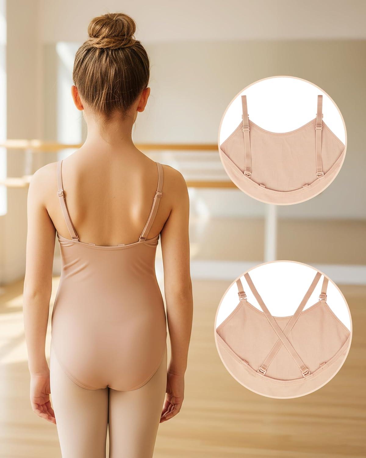 Stelle Girls Nude Leotard Seamless Undergarment Camisole with Adjustable Straps for Dance/Ballet/Gymnastics(Rose Beige)