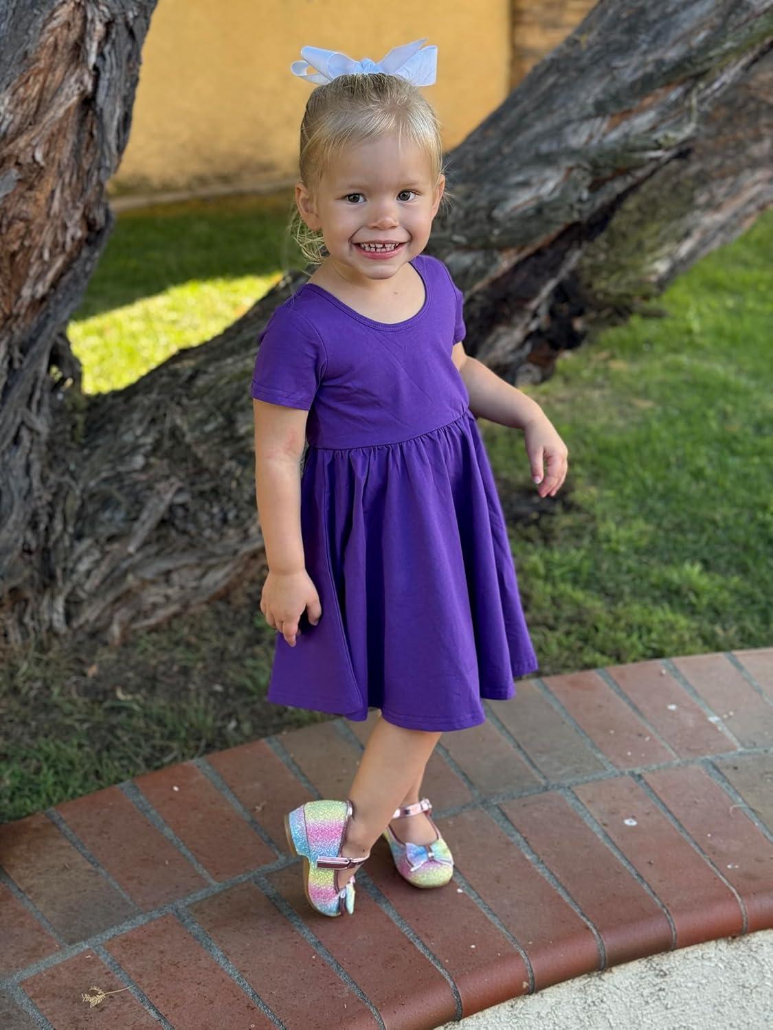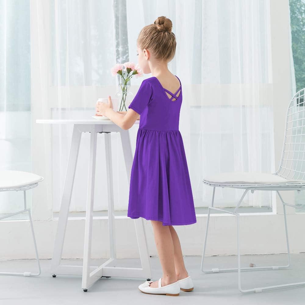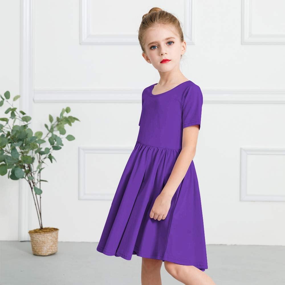 Stelle Girls Short Sleeve Dress Summer Kids Toddler Skater Twirl A Line Solid Color T-Shirt Dress for School Casual 3-12 Y(A02-purple (Without Pocket))