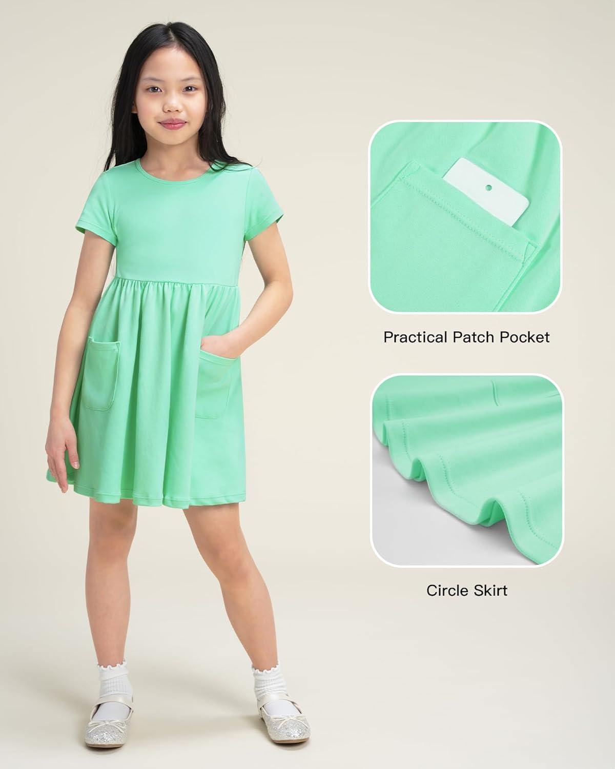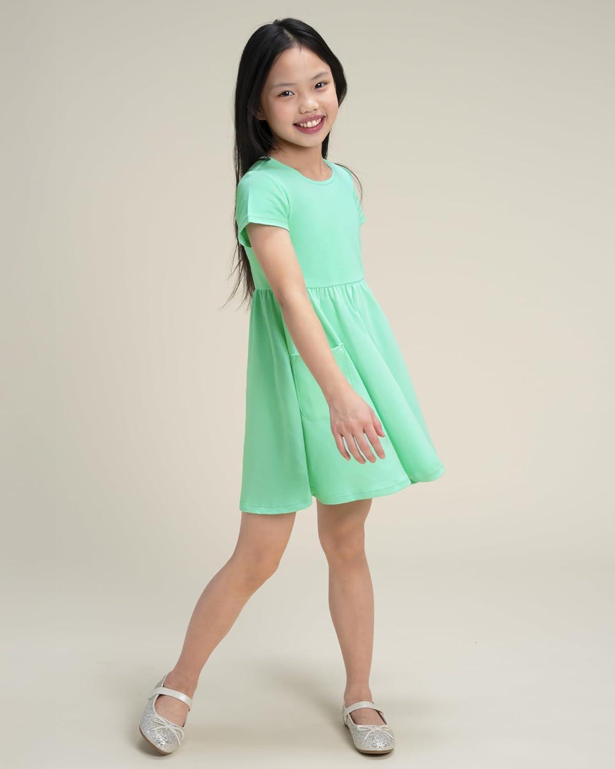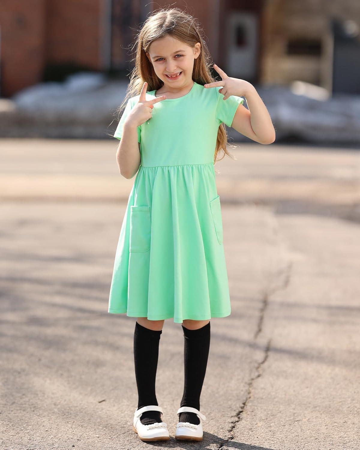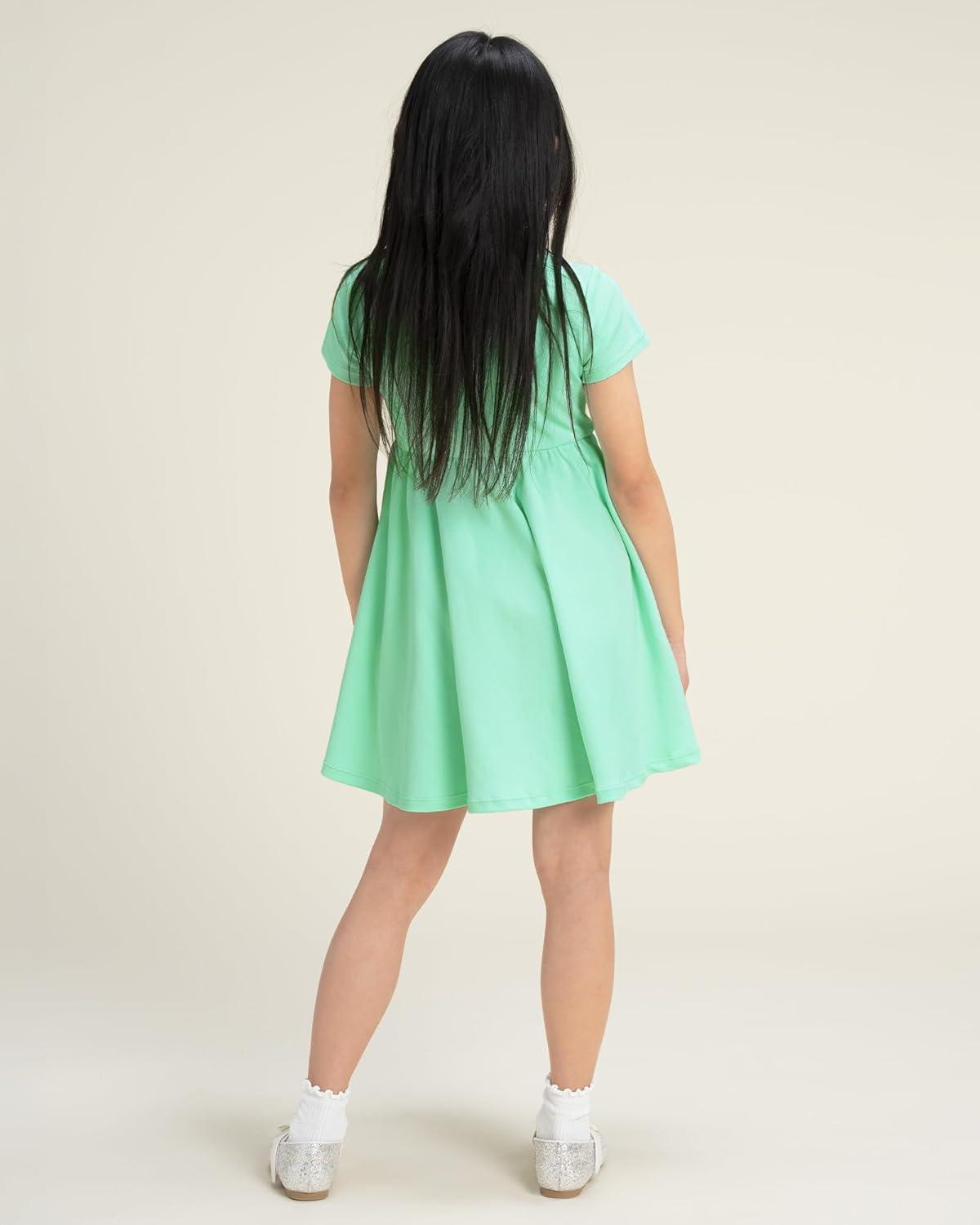 Stelle Girls Short Sleeve Dress Summer Kids Toddler Skater Twirl A Line Solid Color T-Shirt Dress for School Casual 3-12 Y(Mint Green)