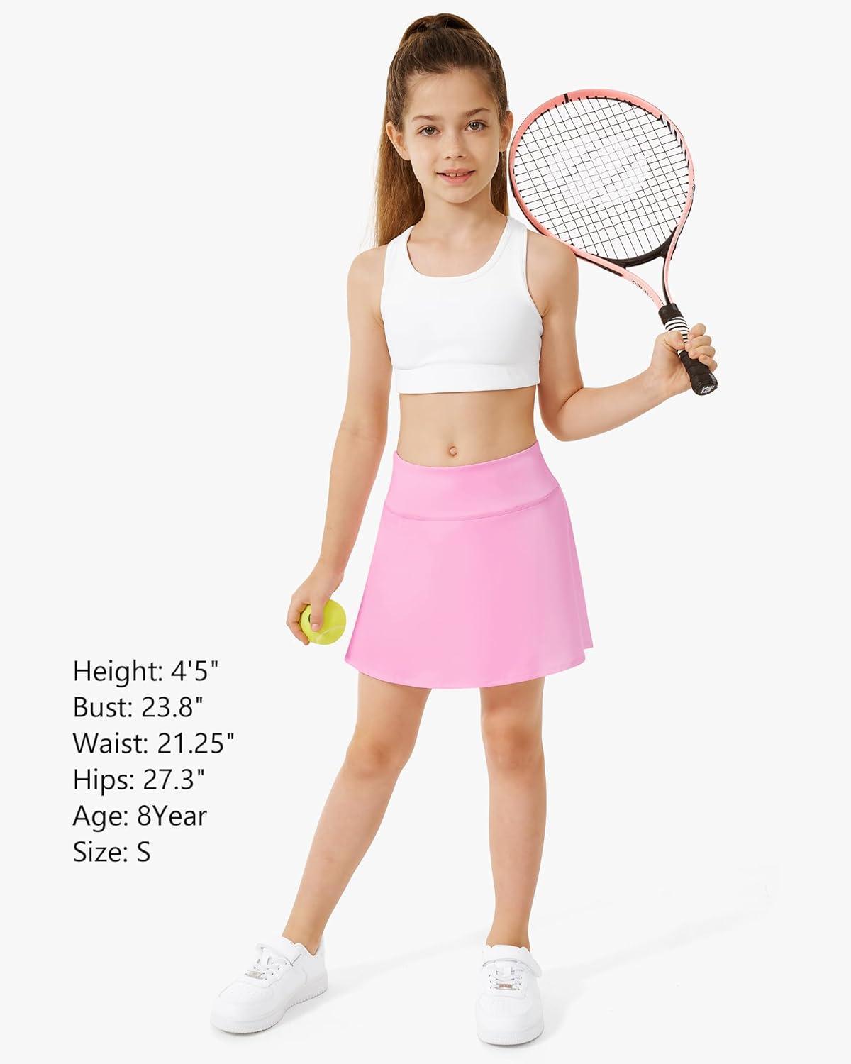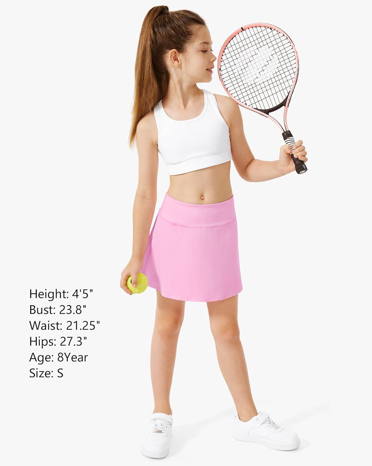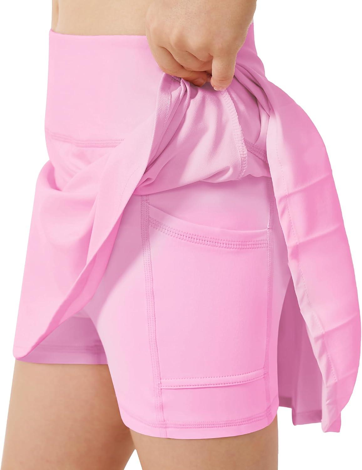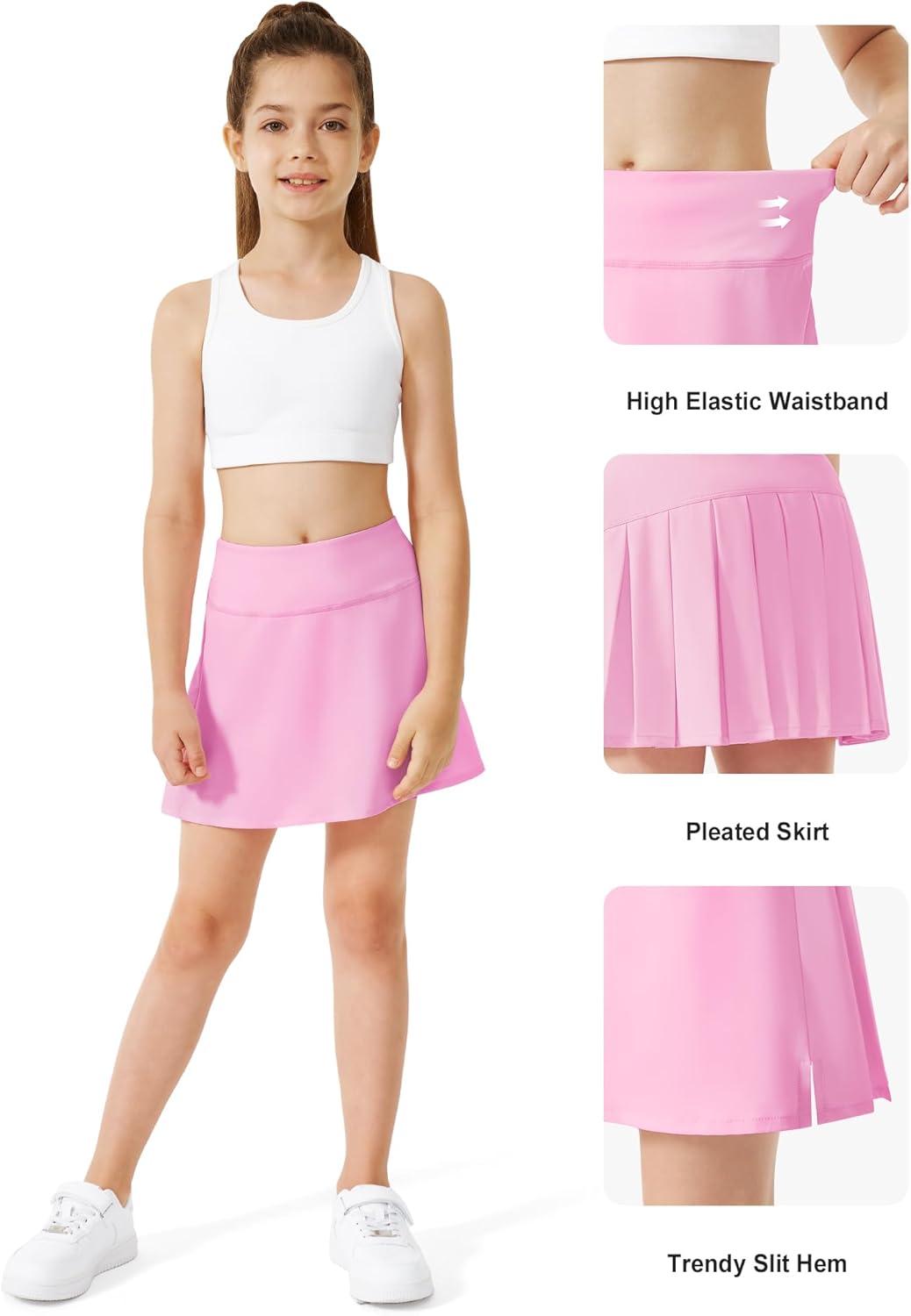 Stelle Girls Tennis Skirts with Inner Shorts Pockets Golf Skirts Athletic Running Workout Pleated Skort 5-15Years(Cotton Candy)