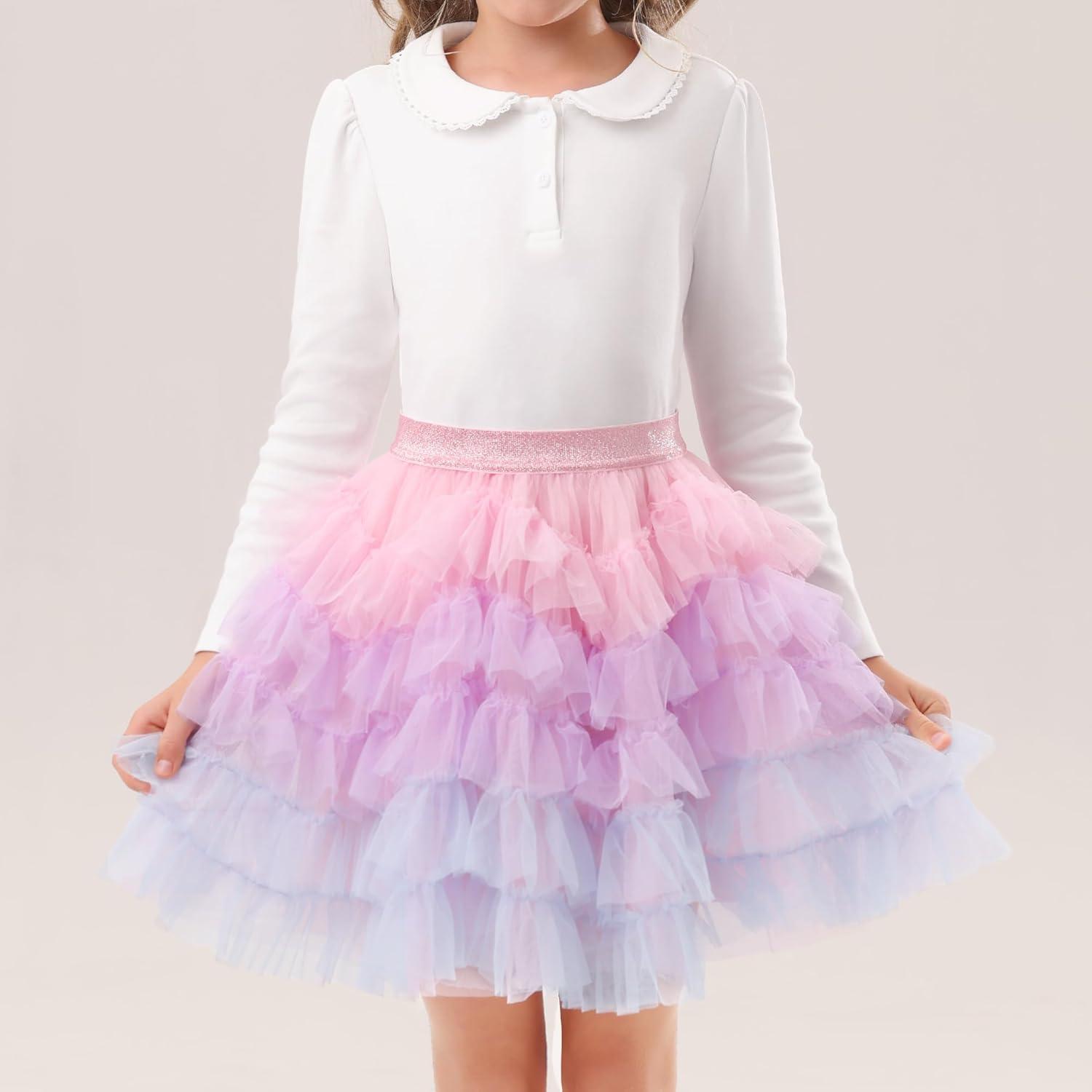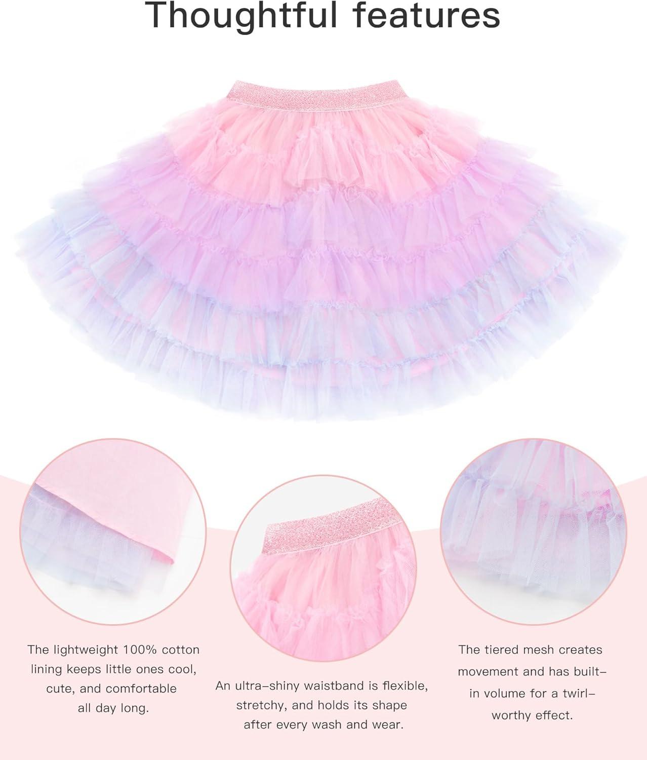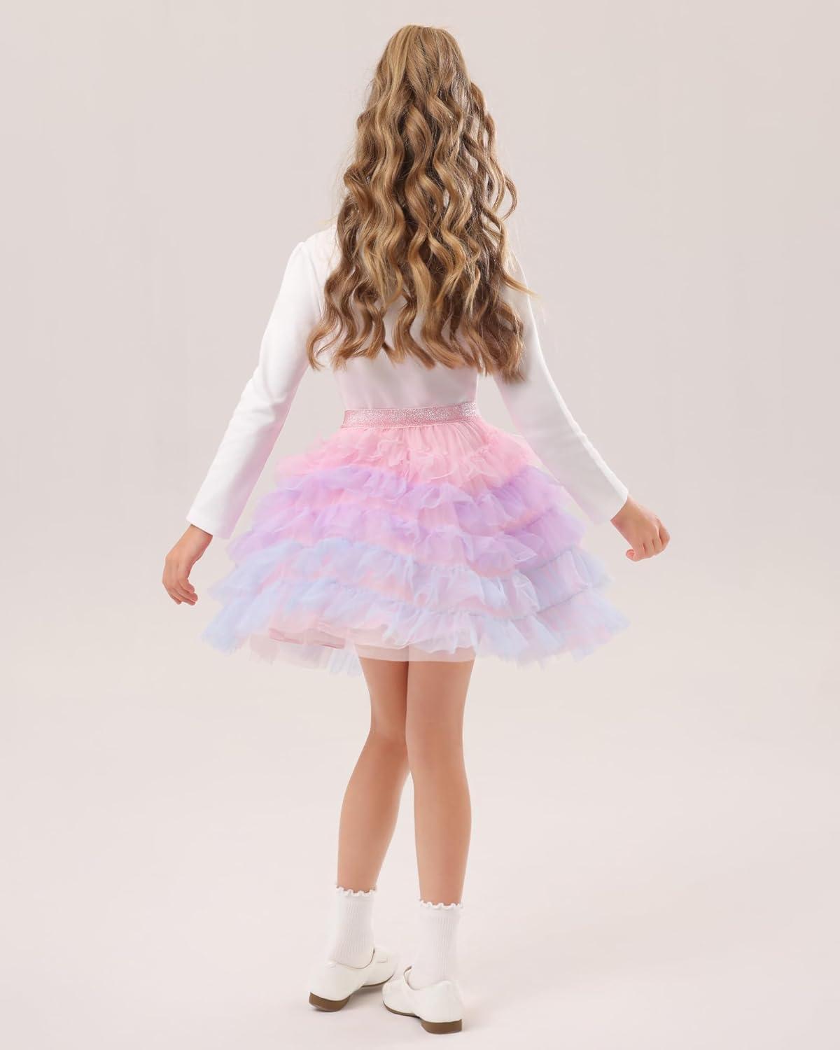 Stelle Girls Tutu Skirt 5 Layers Fluffy Tulle Dance Ballet Skirt Princess Birthday Party Costume(Pink Ombre)