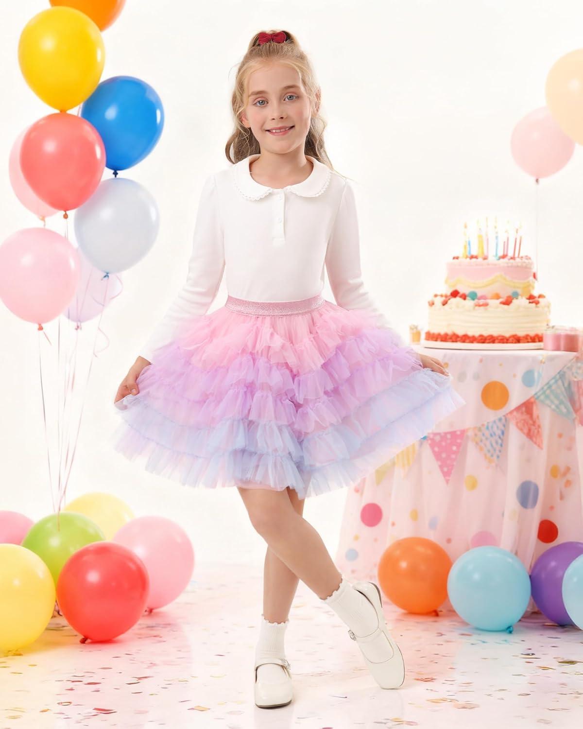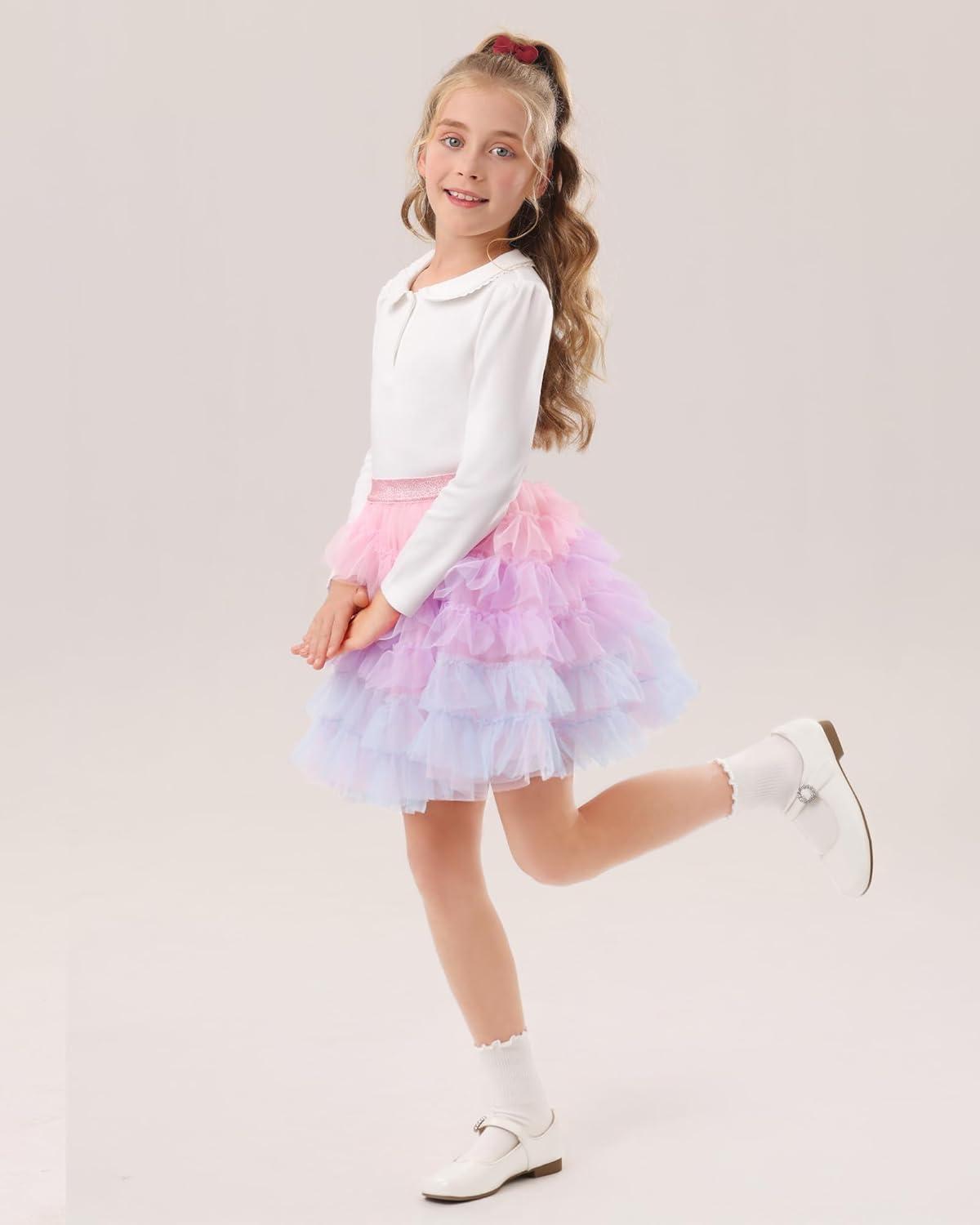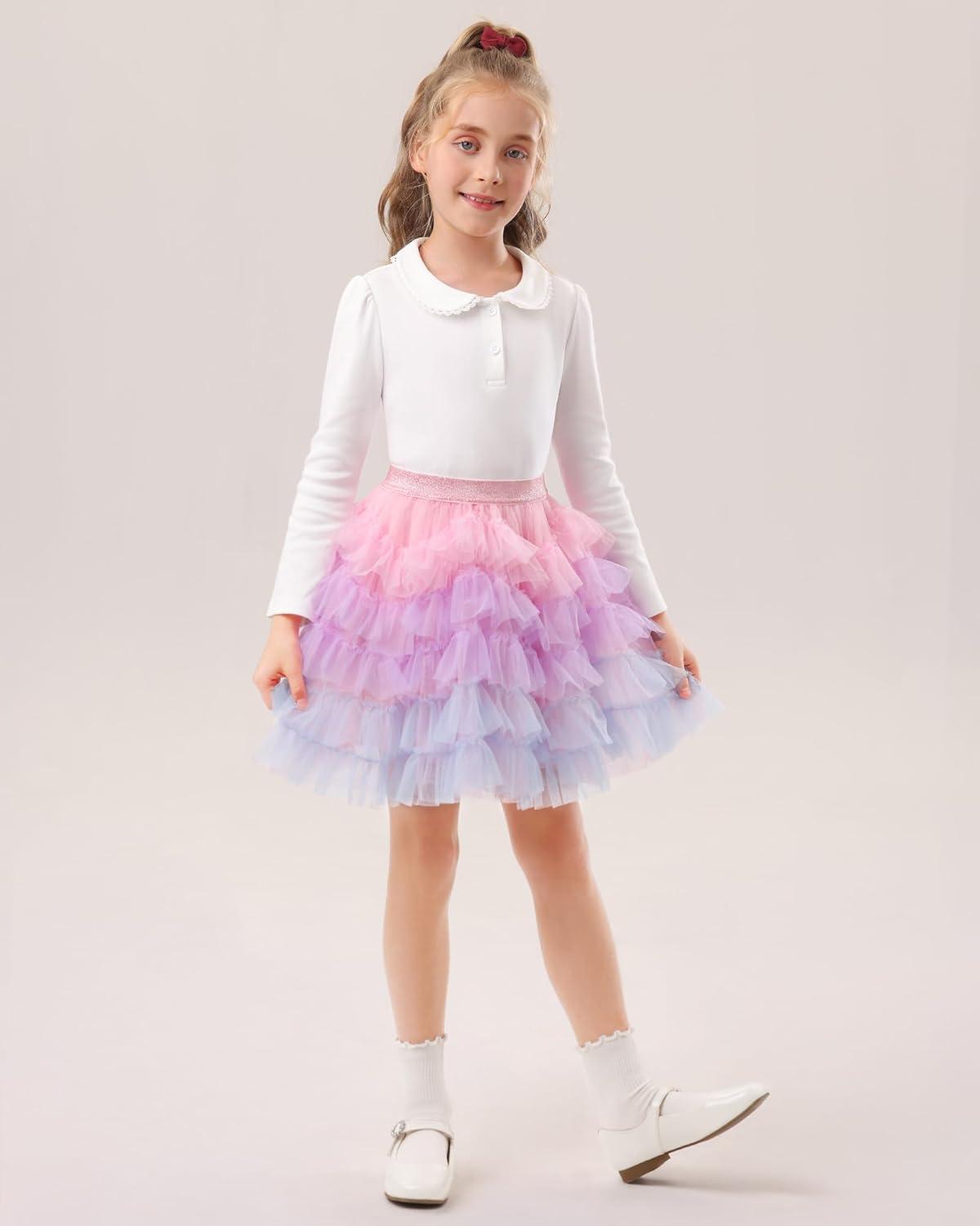 Stelle Girls Tutu Skirt 5 Layers Fluffy Tulle Dance Ballet Skirt Princess Birthday Party Costume(Pink Ombre)