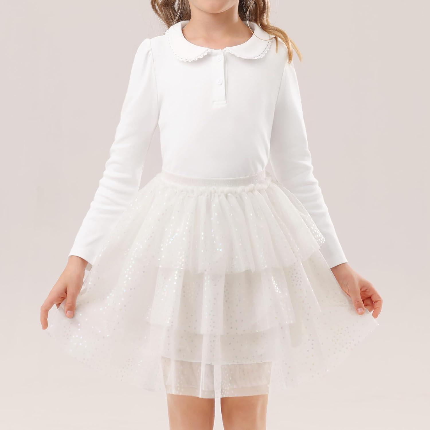 Stelle Girls Tutu Skirt 5 Layers Fluffy Tulle Dance Ballet Skirt Princess Birthday Party Costume(White)