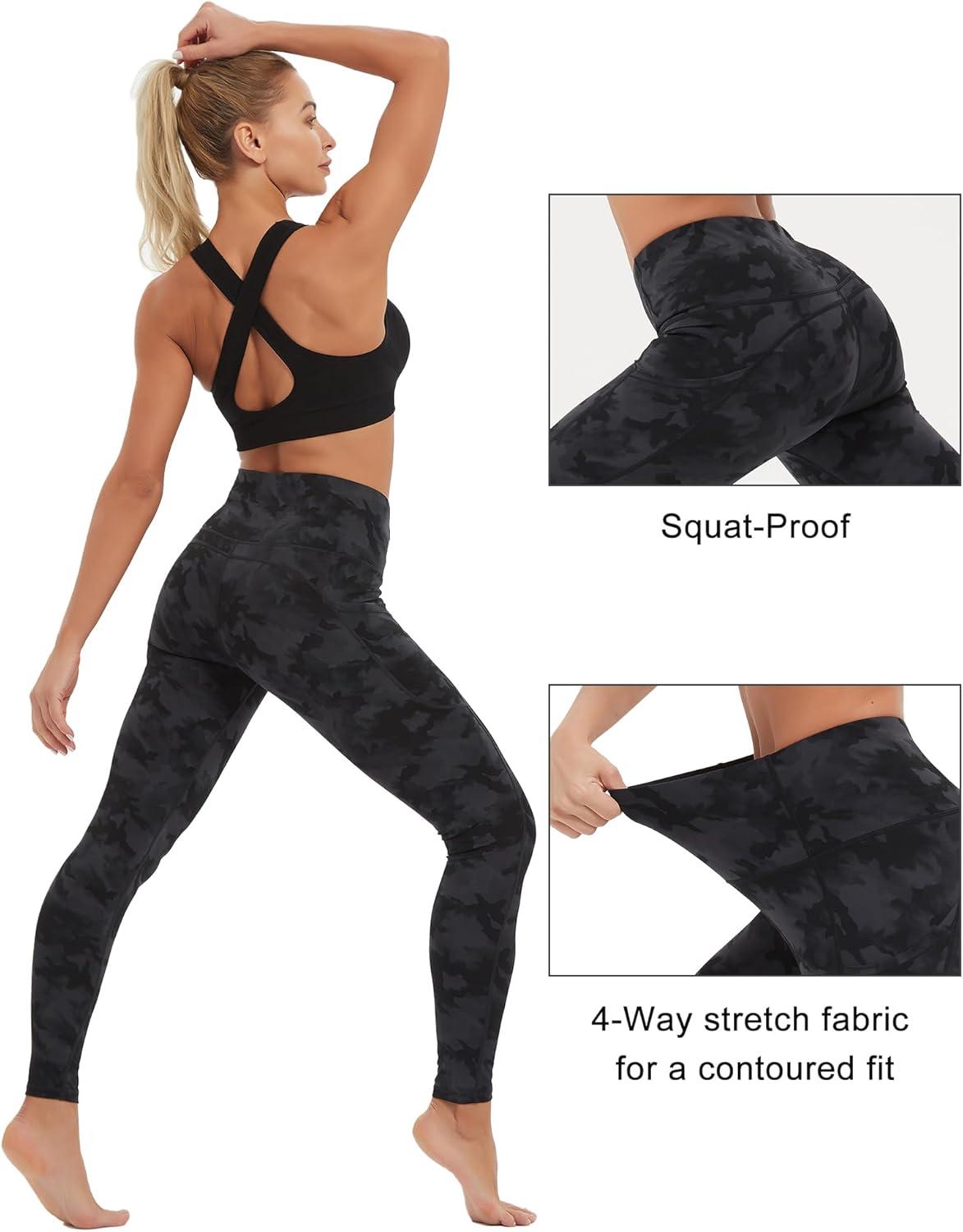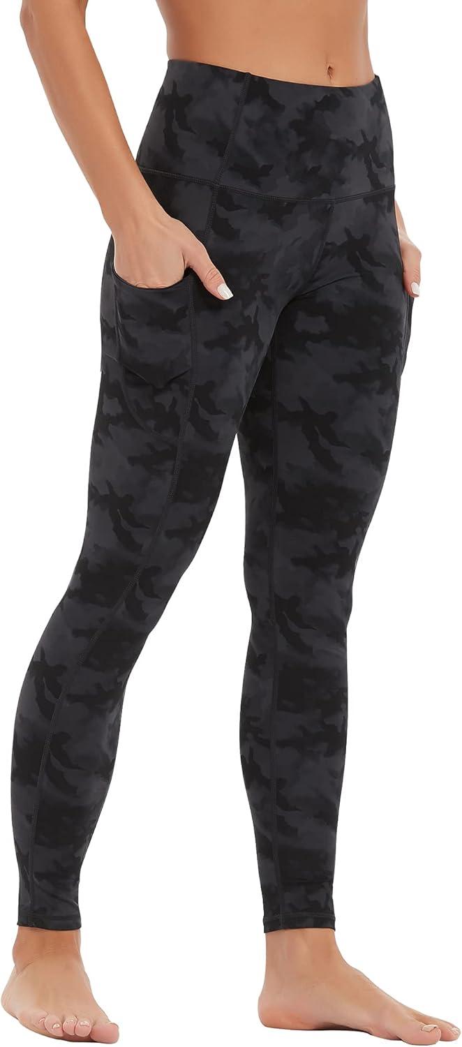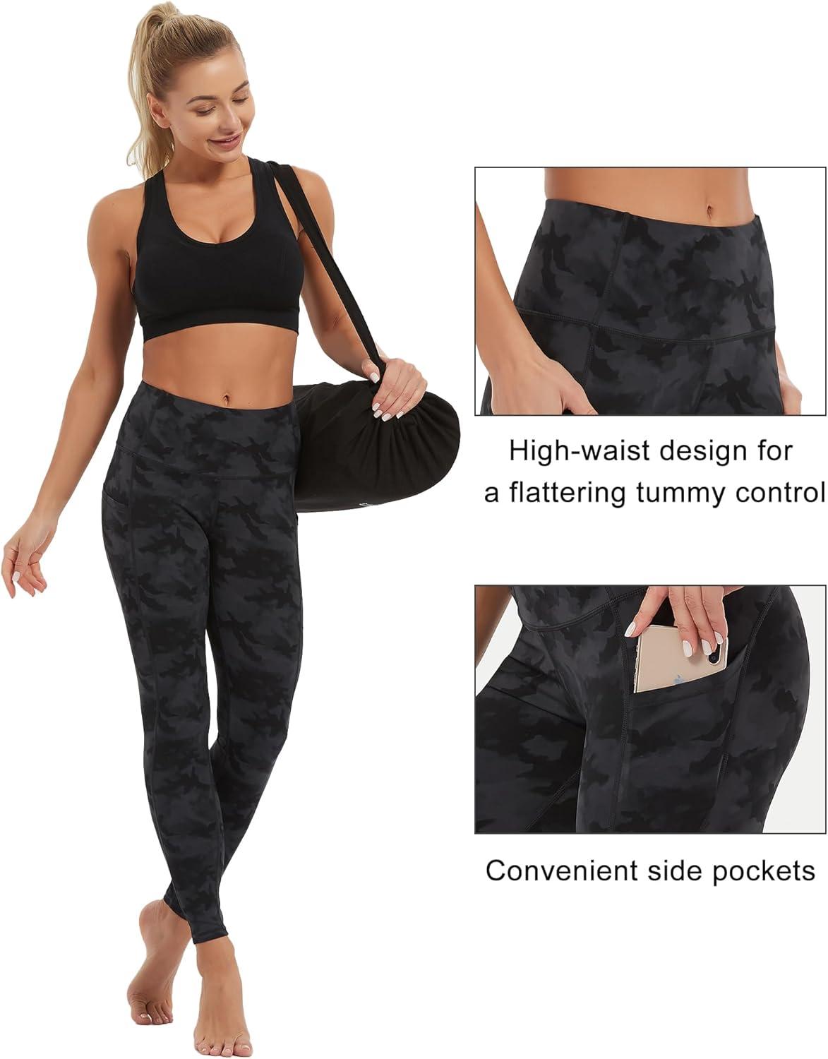 Stelle High Waisted Yoga Leggings with Pockets, Buttery Soft Workout Yoga Pants for Women Tummy Control Running Gym(Black&grey Camo)
