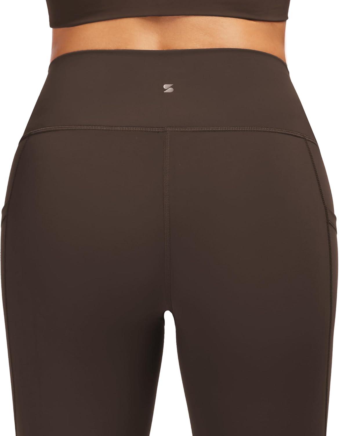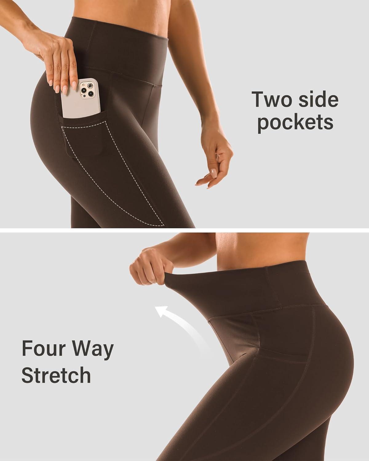 Stelle High Waisted Yoga Leggings with Pockets, Buttery Soft Workout Yoga Pants for Women Tummy Control Running Gym(Brushed Buttery Soft-coffee)