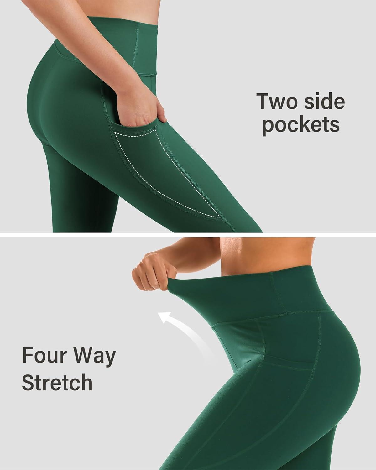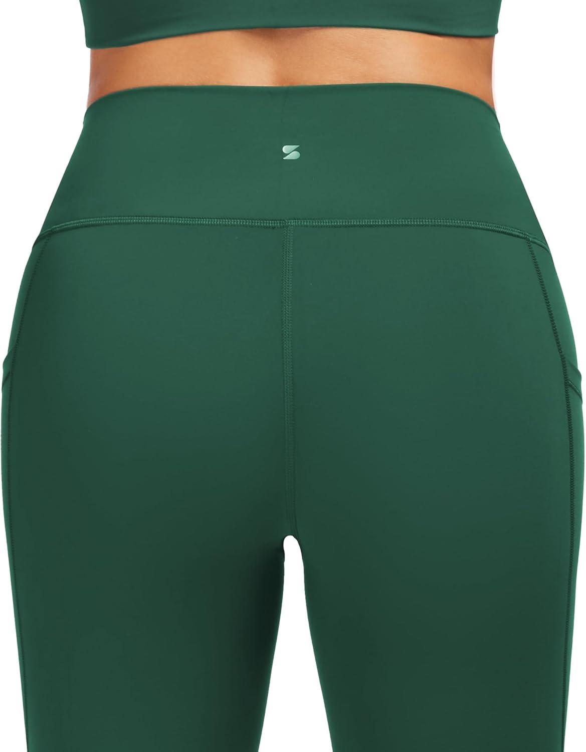Stelle High Waisted Yoga Leggings with Pockets, Buttery Soft Workout Yoga Pants for Women Tummy Control Running Gym(Brushed Buttery Soft-forest Green)