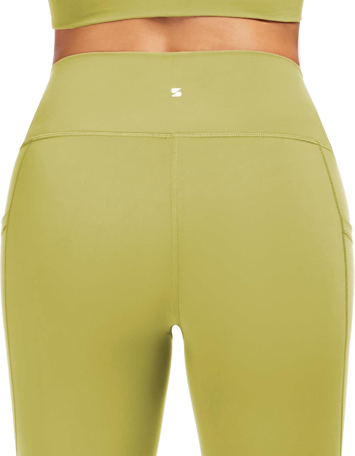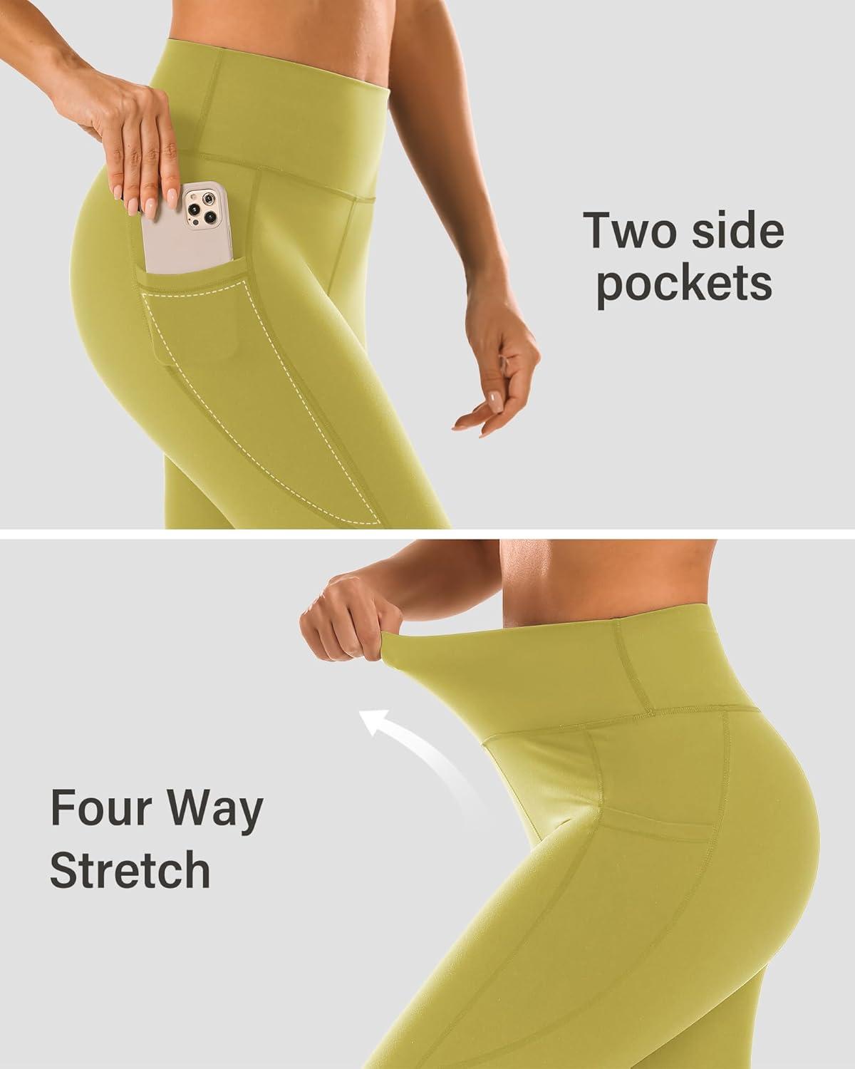 Stelle High Waisted Yoga Leggings with Pockets, Buttery Soft Workout Yoga Pants for Women Tummy Control Running Gym(Brushed Buttery Soft-golden Lime)