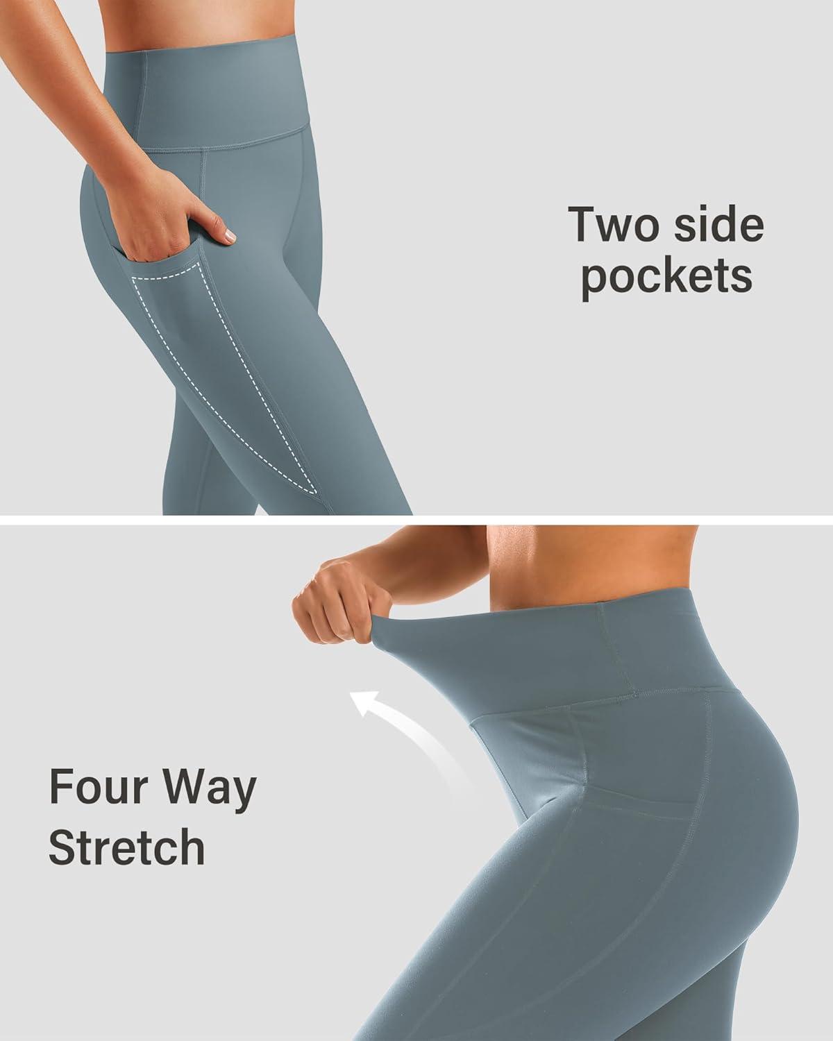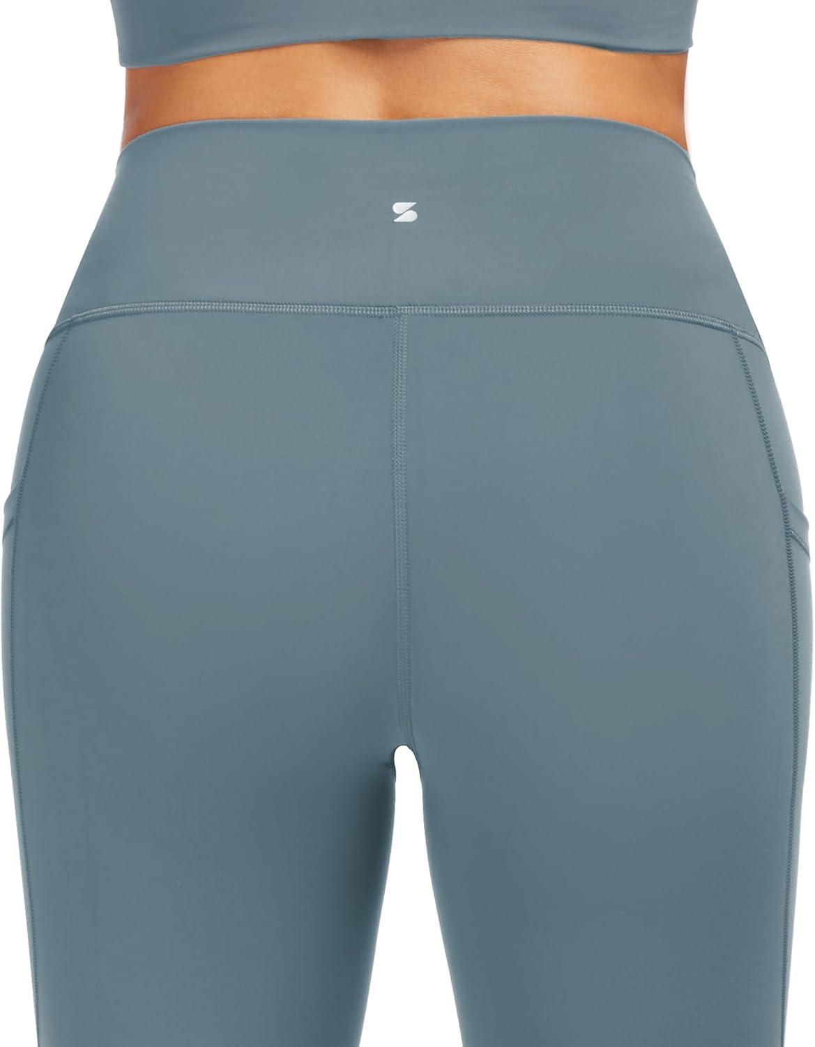 Stelle High Waisted Yoga Leggings with Pockets, Buttery Soft Workout Yoga Pants for Women Tummy Control Running Gym(Brushed Buttery Soft-gray Sage)