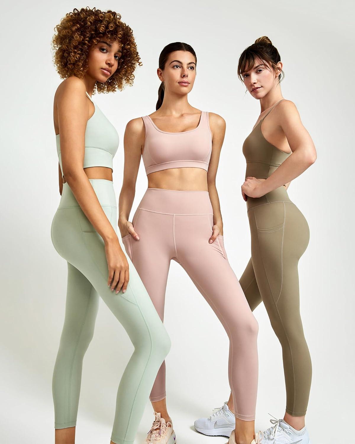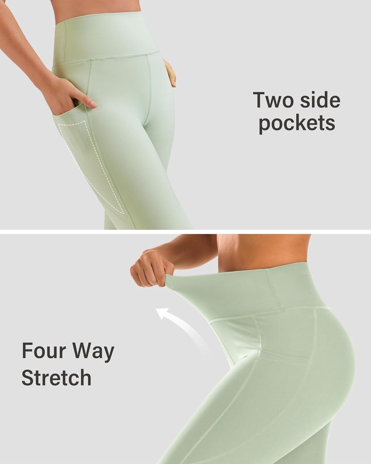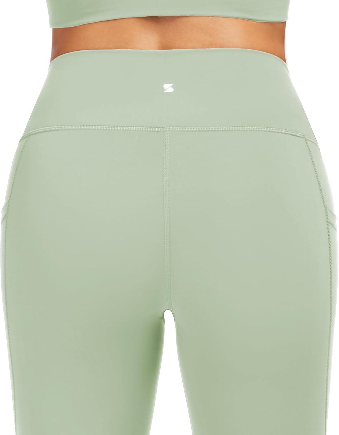 Stelle High Waisted Yoga Leggings with Pockets, Buttery Soft Workout Yoga Pants for Women Tummy Control Running Gym(Brushed Buttery Soft-mint Green)