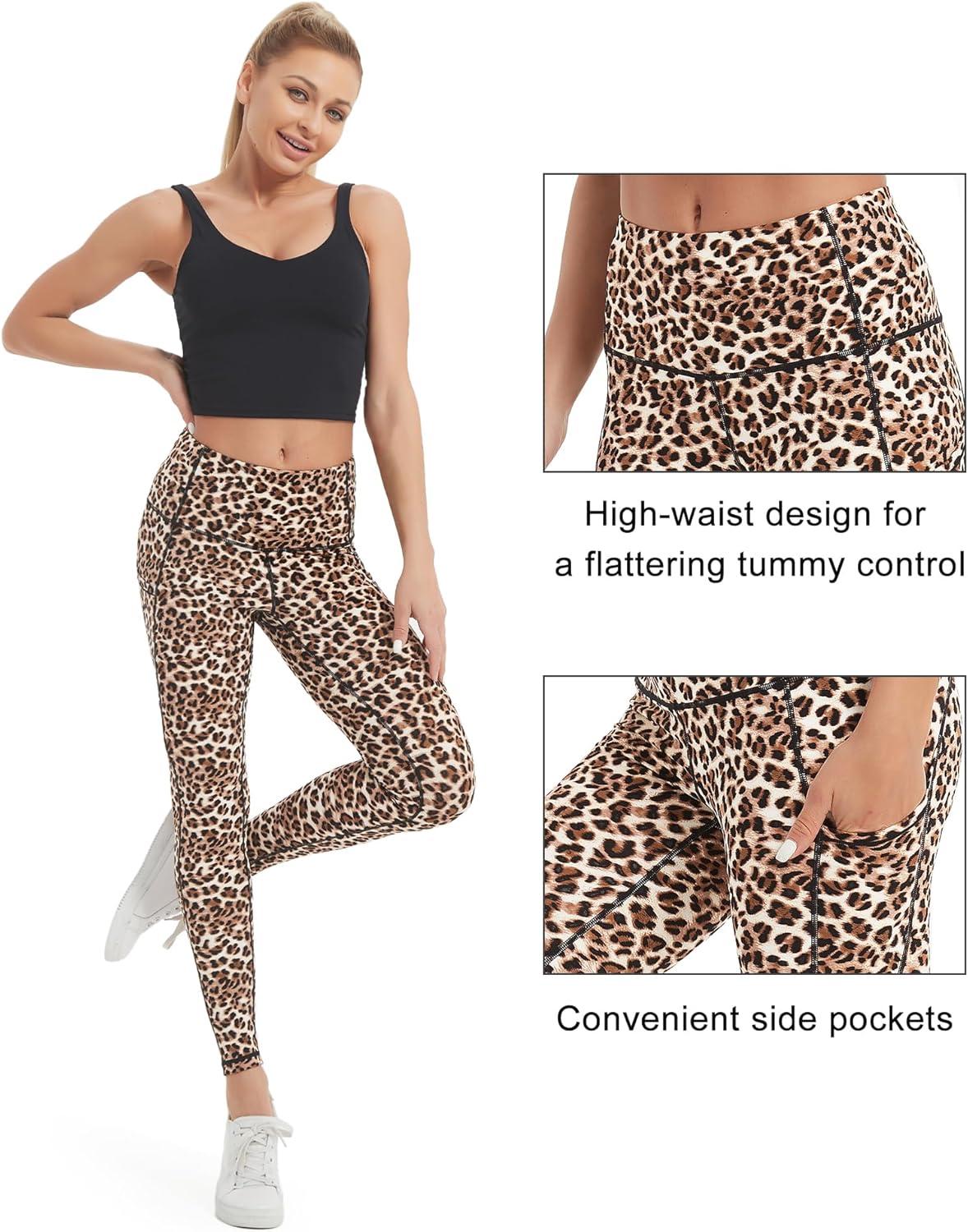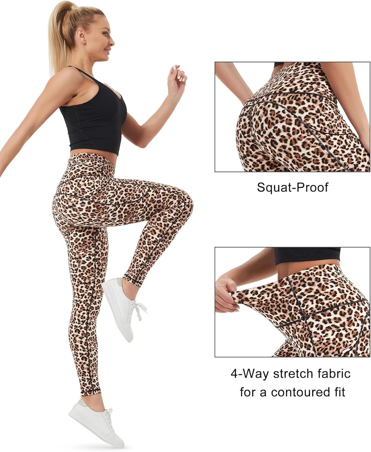 Stelle High Waisted Yoga Leggings with Pockets, Buttery Soft Workout Yoga Pants for Women Tummy Control Running Gym(Leopard)