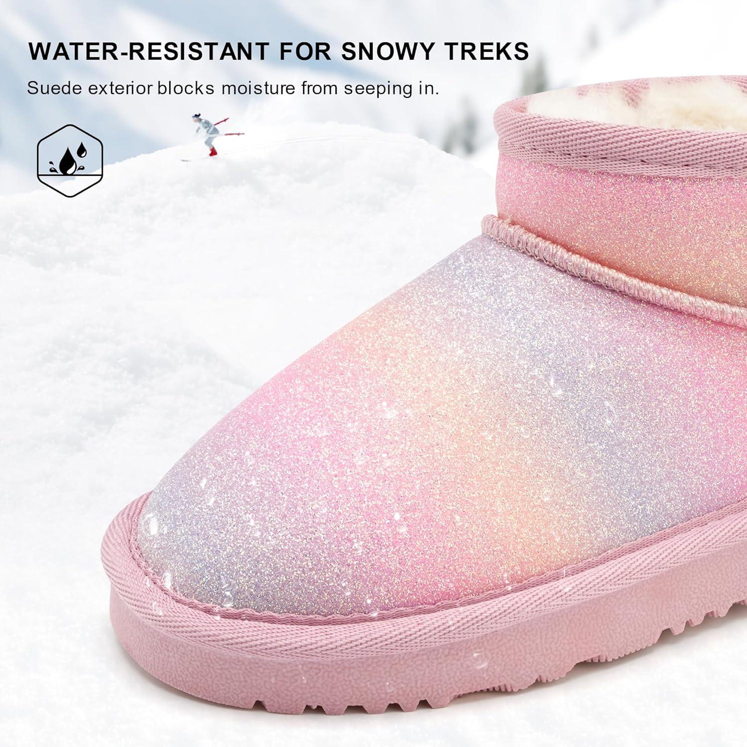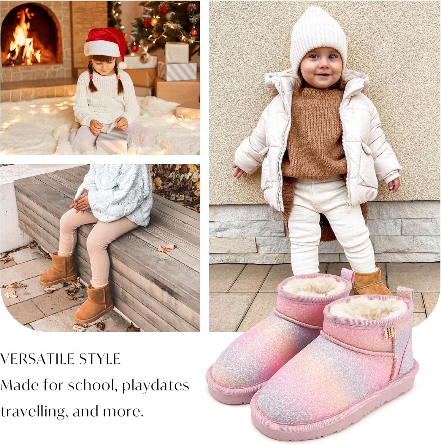 Stelle Kids Snow Boots Girls Boys Winter Ankle Boots Outdoor Warm Slip On Faux Fur Lined Shoes for Toddler/Little/Big Kid(Rainbow)