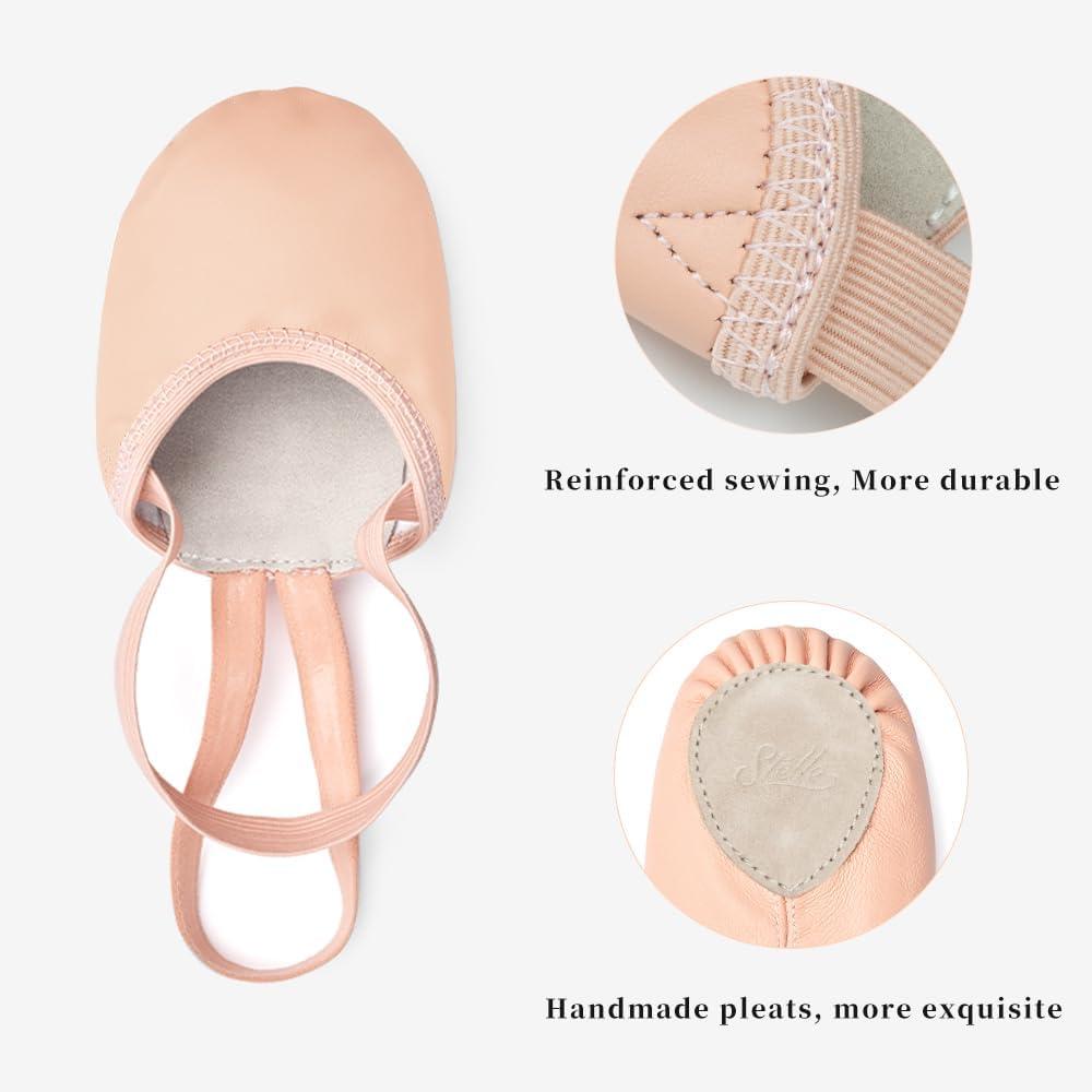 Stelle Leather Half Soles Dance Shoes Womens Lyrical Pirouette Turners Dance Shoes for Turning (Girls/Boys/Men/Adult)(Ballet Pink)