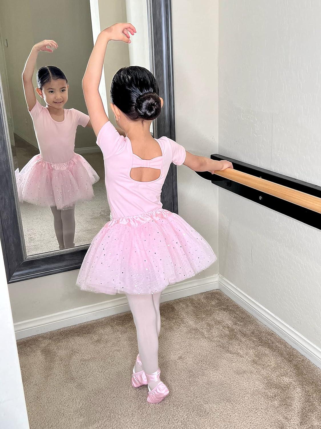 Stelle Leotard for Girls Black Ballet Dance Leotard Gymnastics Outfits with Bow Back (Toddler/Little/Big Kids)(1-ballet Pink)