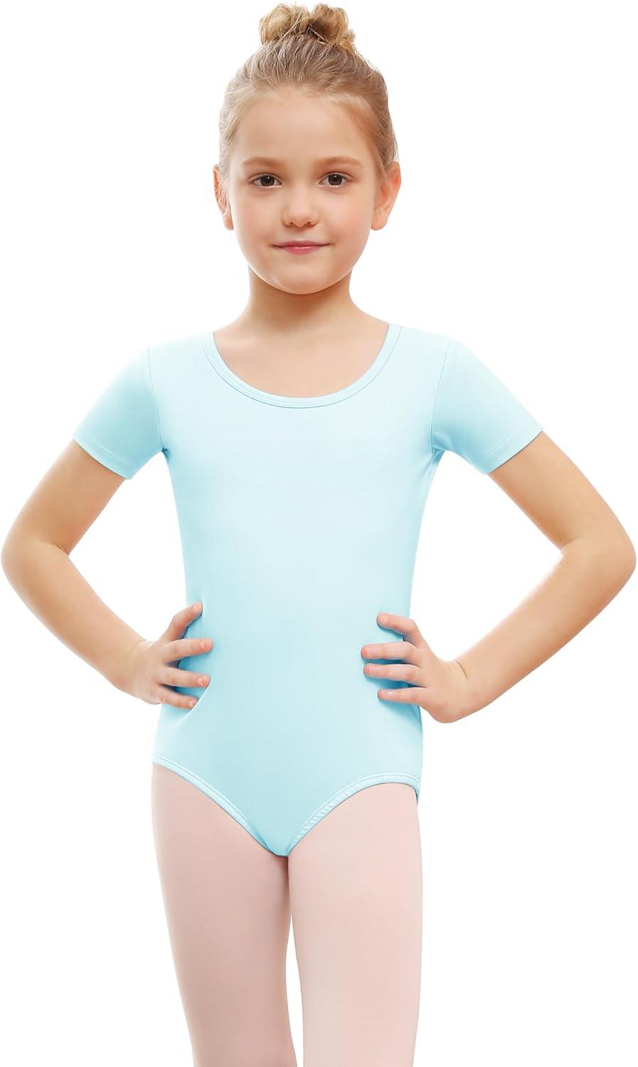 Stelle Leotards for Girls Ballet Scoop Neck Short Sleeve Leotard Gymnastics Dance Unitards(Blue)