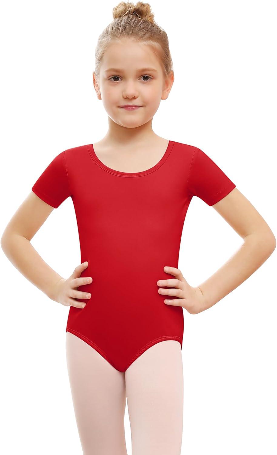 Stelle Leotards for Girls Ballet Scoop Neck Short Sleeve Leotard Gymnastics Dance Unitards(Red)