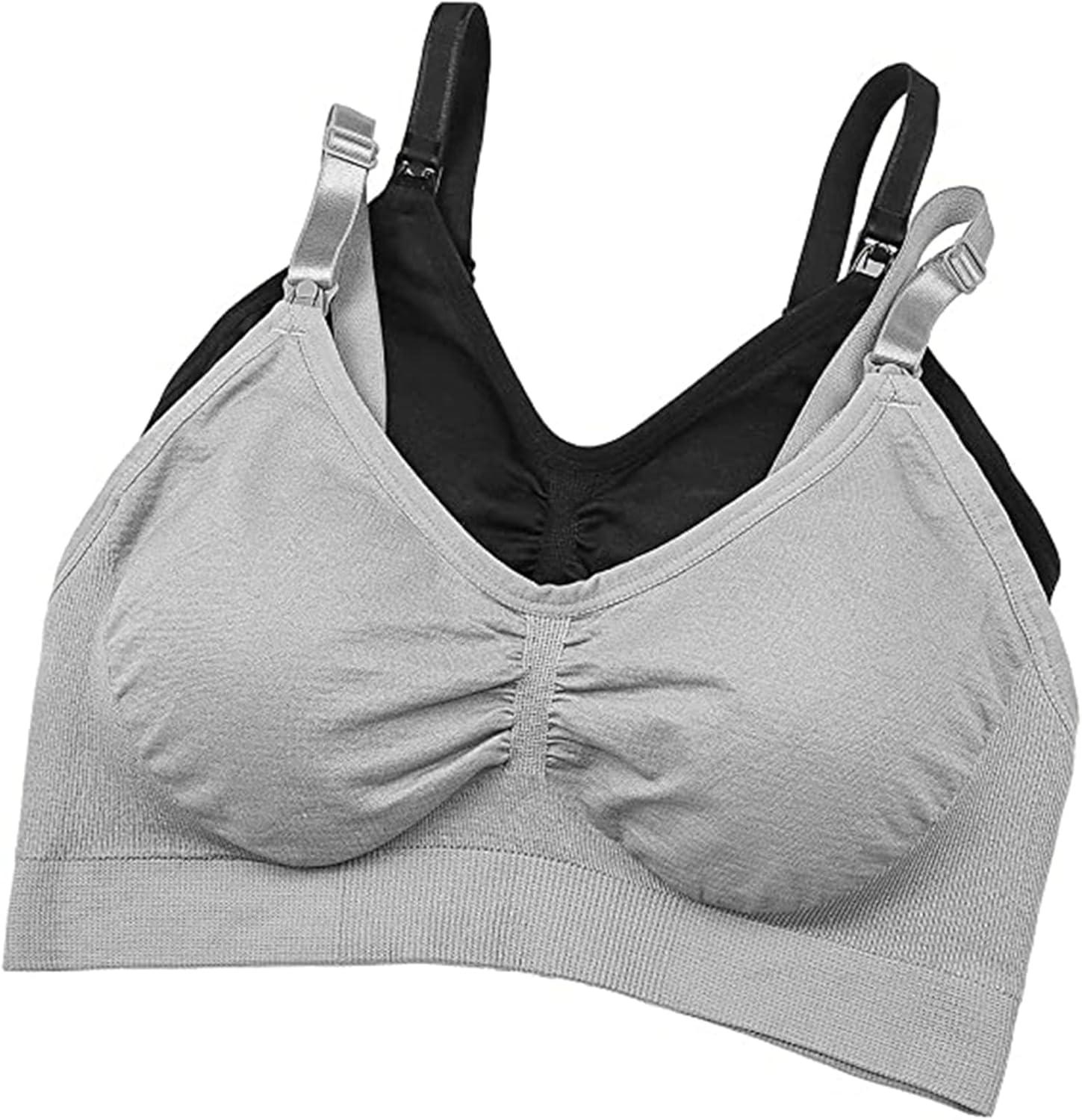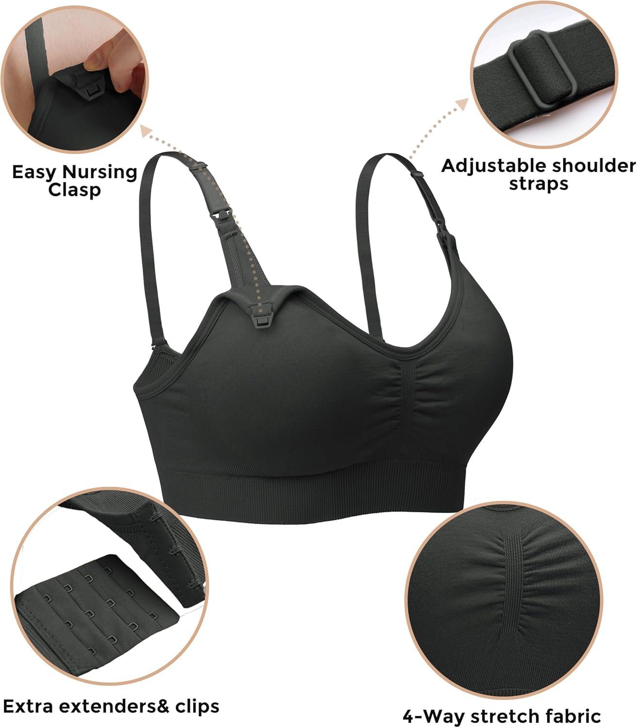 Stelle Nursing Bras Maternity Bra for Breastfeeding Pregnancy Wireless Bralette with Pads, Extenders & Clips(Black+gray)