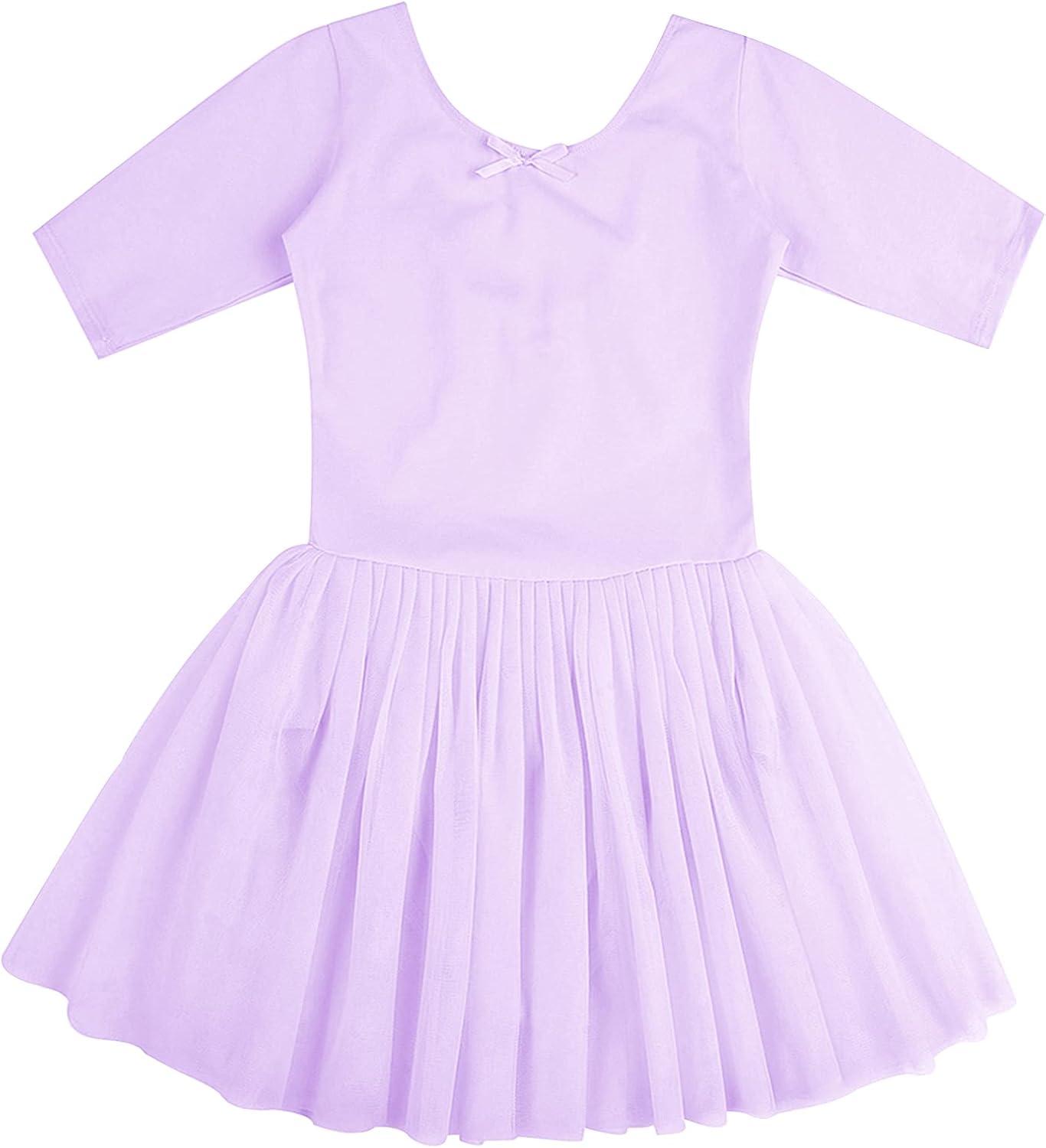 Stelle Puff Sleeve Ballet Leotards for Girls with Sparkly Tutu Skirted Toddler Dance Dress Outfit(03-short Sleeve-lavender)