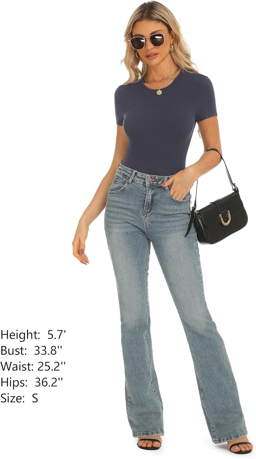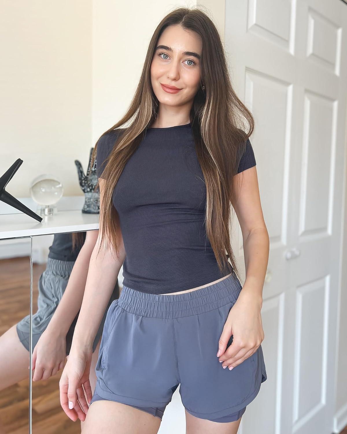 Stelle Ribbed Tops for Women Short Sleeve Tshirt Slim Fit Basic Tee Casual Blouse(Charcoal)