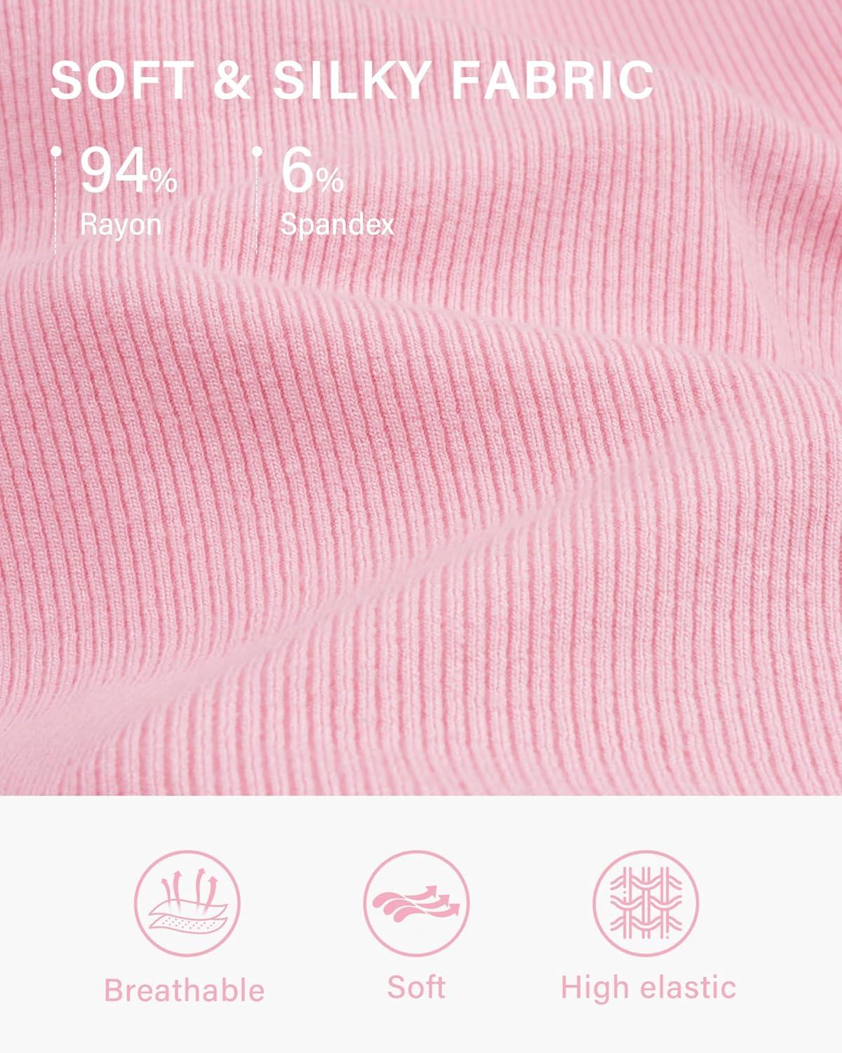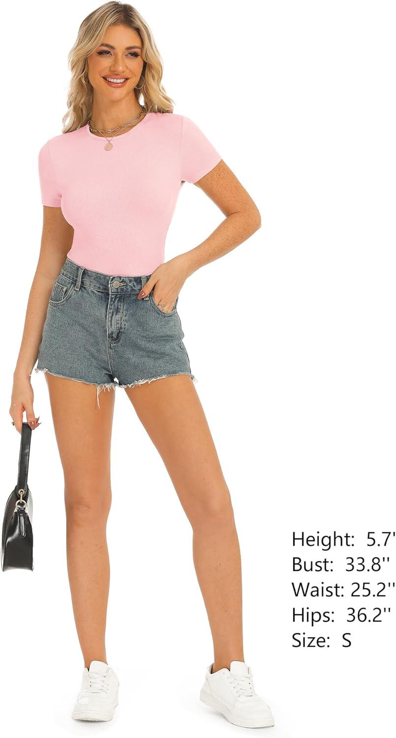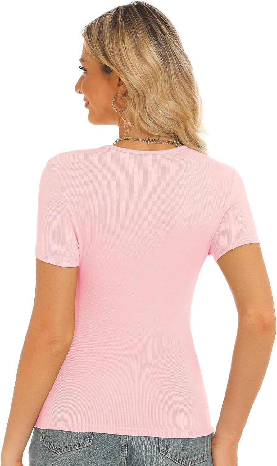 Stelle Ribbed Tops for Women Short Sleeve Tshirt Slim Fit Basic Tee Casual Blouse(Cherry Blossom)