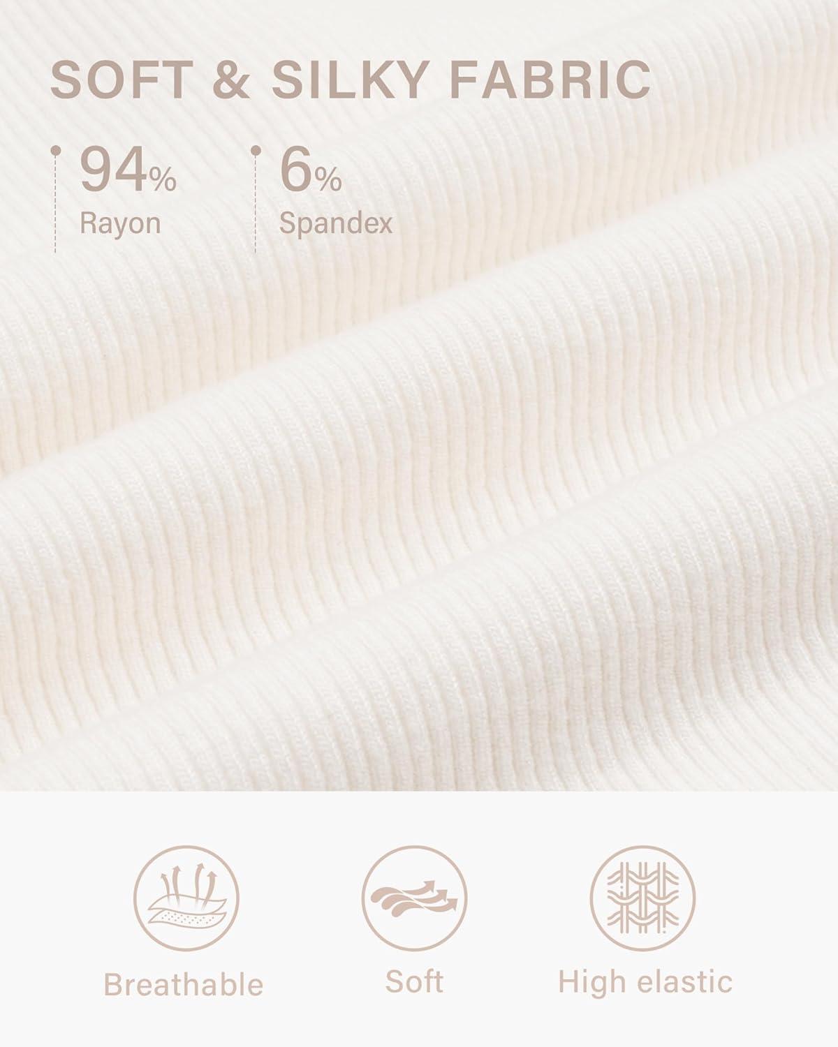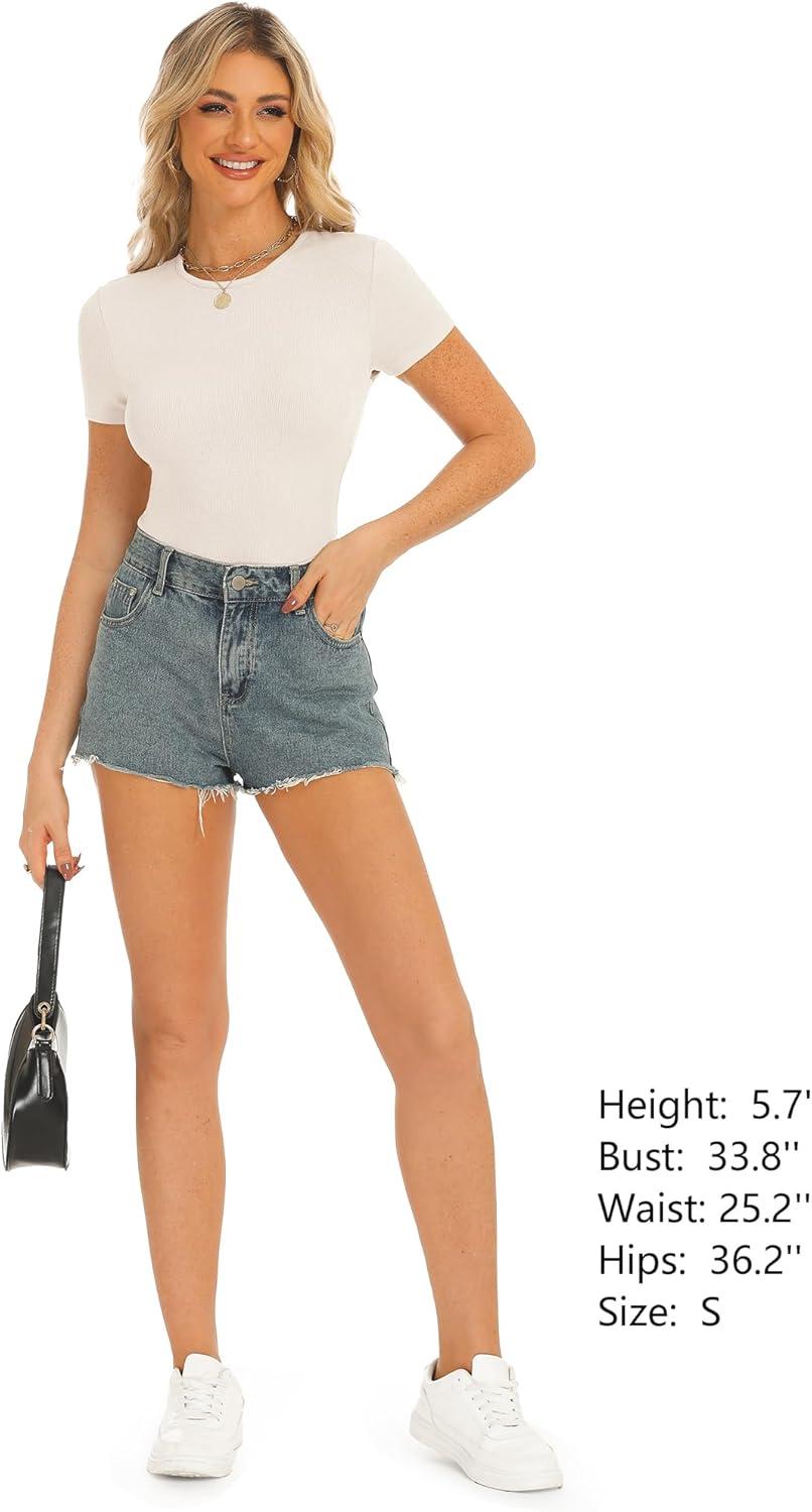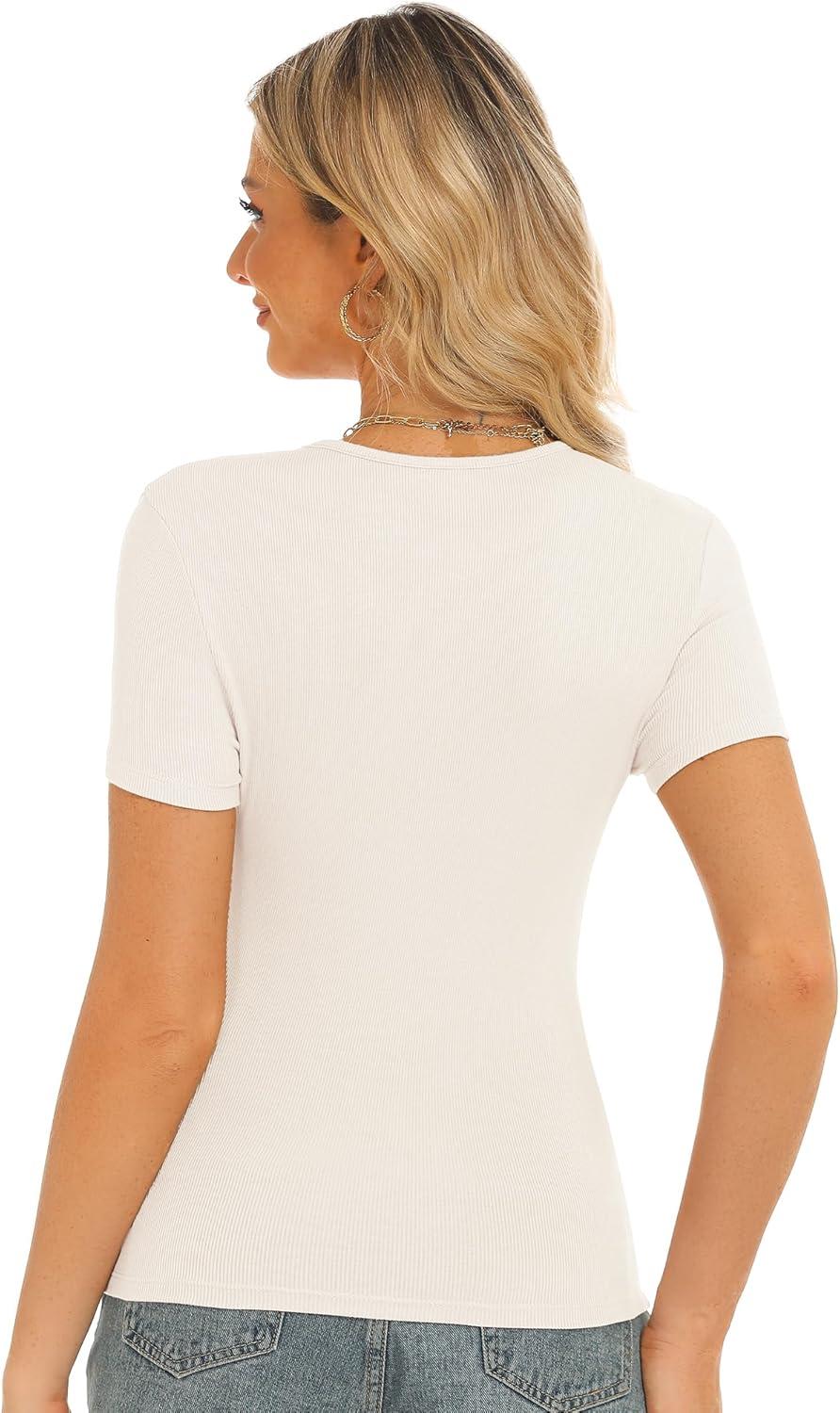 Stelle Ribbed Tops for Women Short Sleeve Tshirt Slim Fit Basic Tee Casual Blouse(Ivory)
