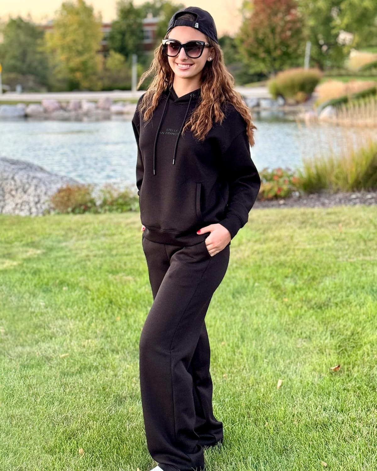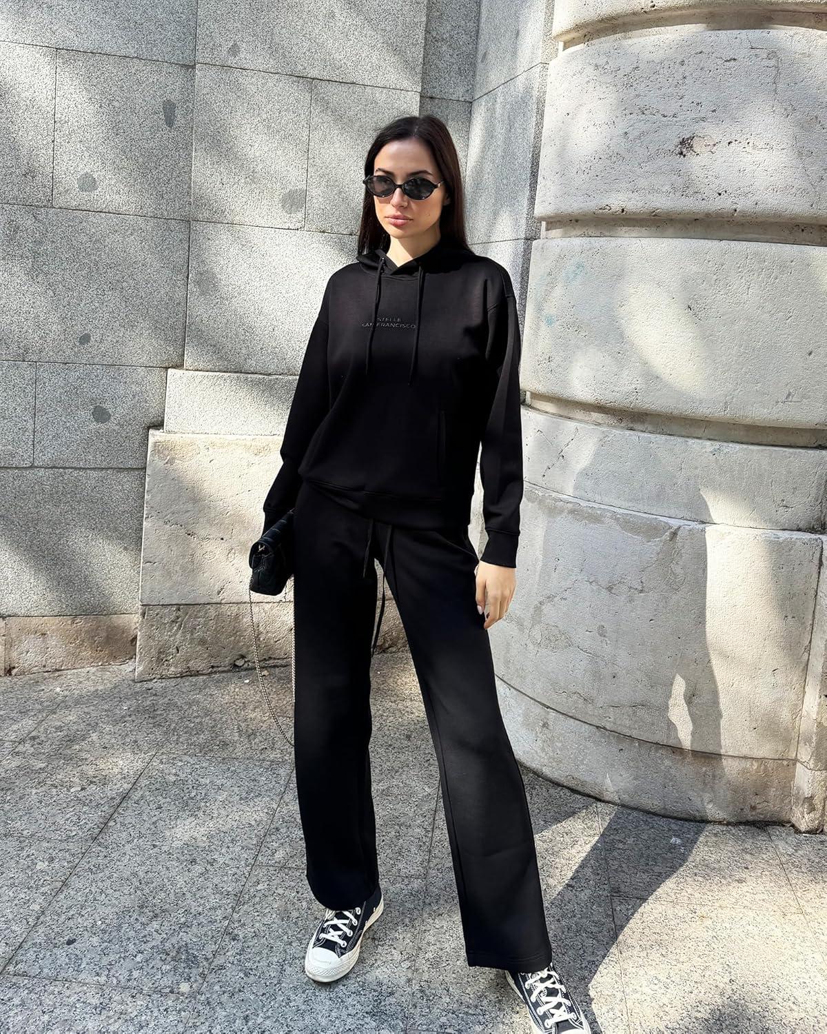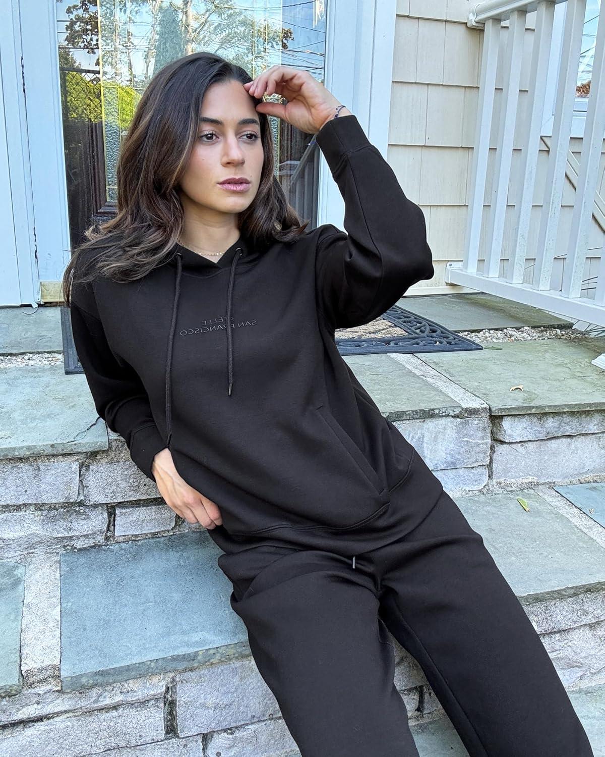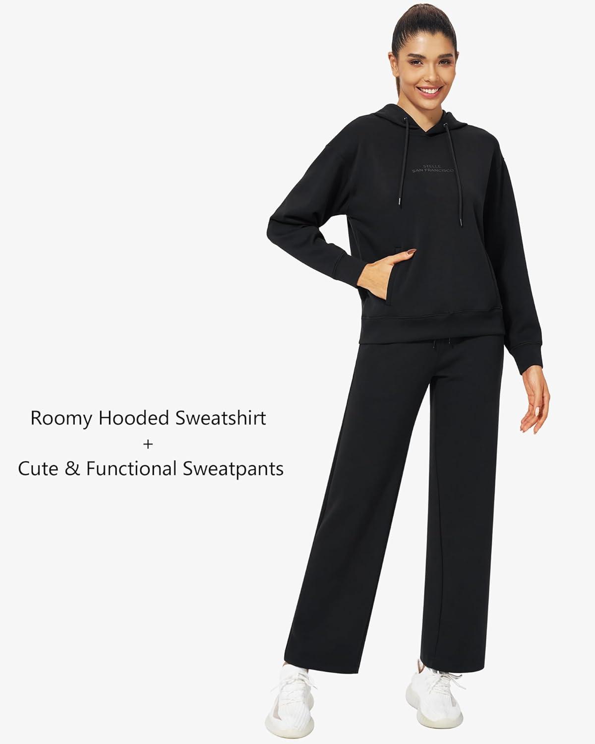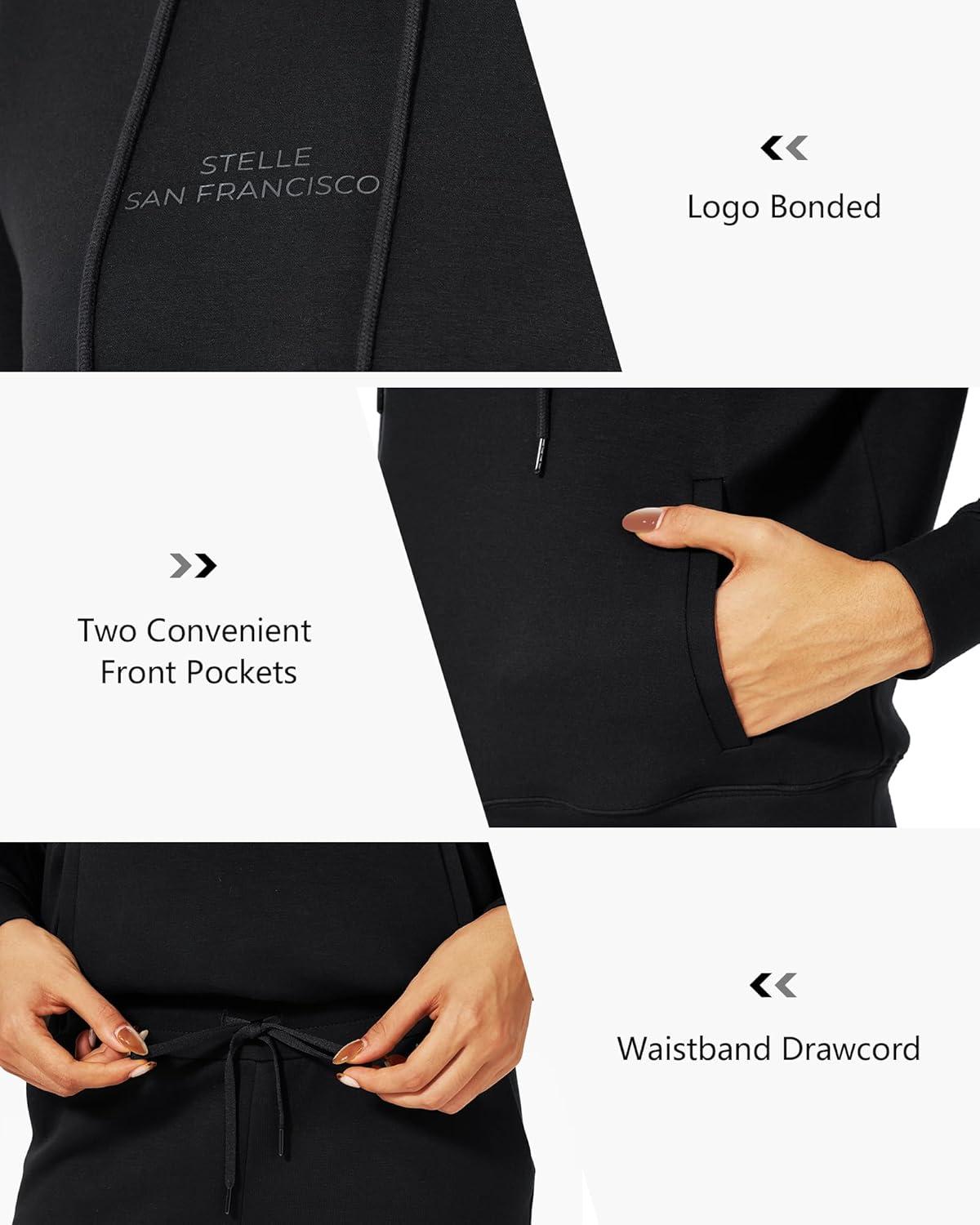 Stelle Sweat Suits for Womens 2 Piece Sweat Set Long Sleeve Hoodie Sweatsuits Sets Drawstring Sweatpants with Pockets(Black)
