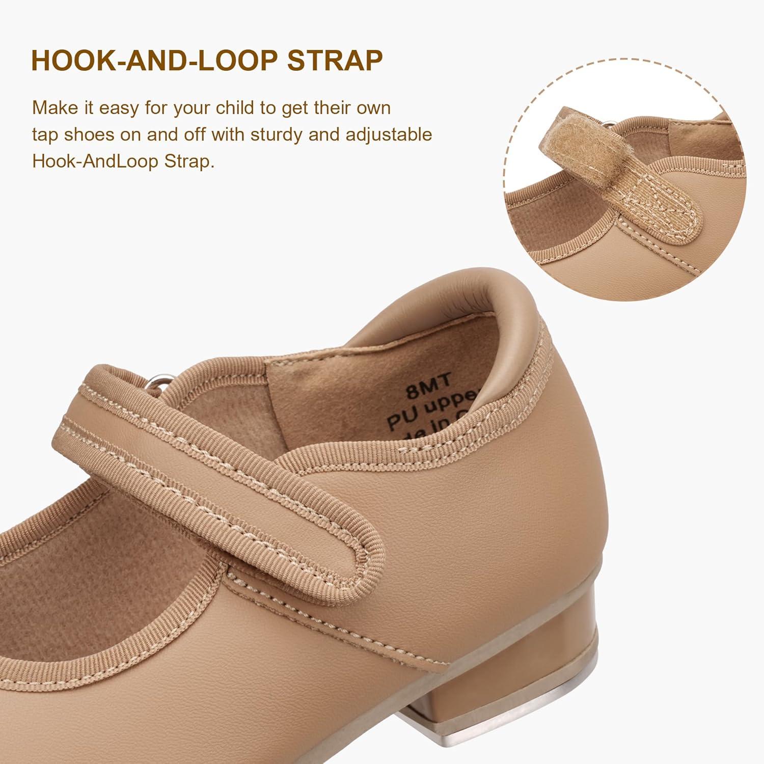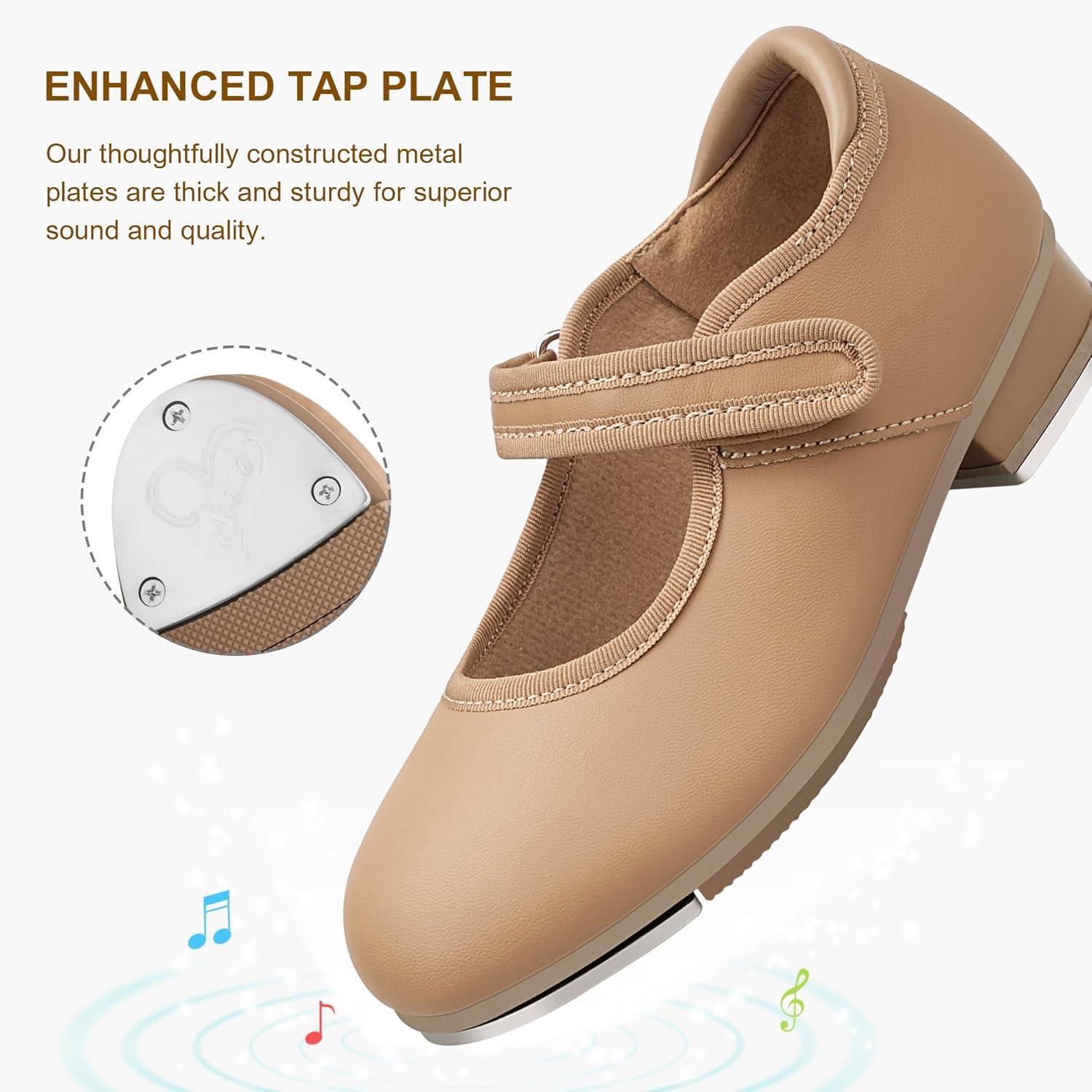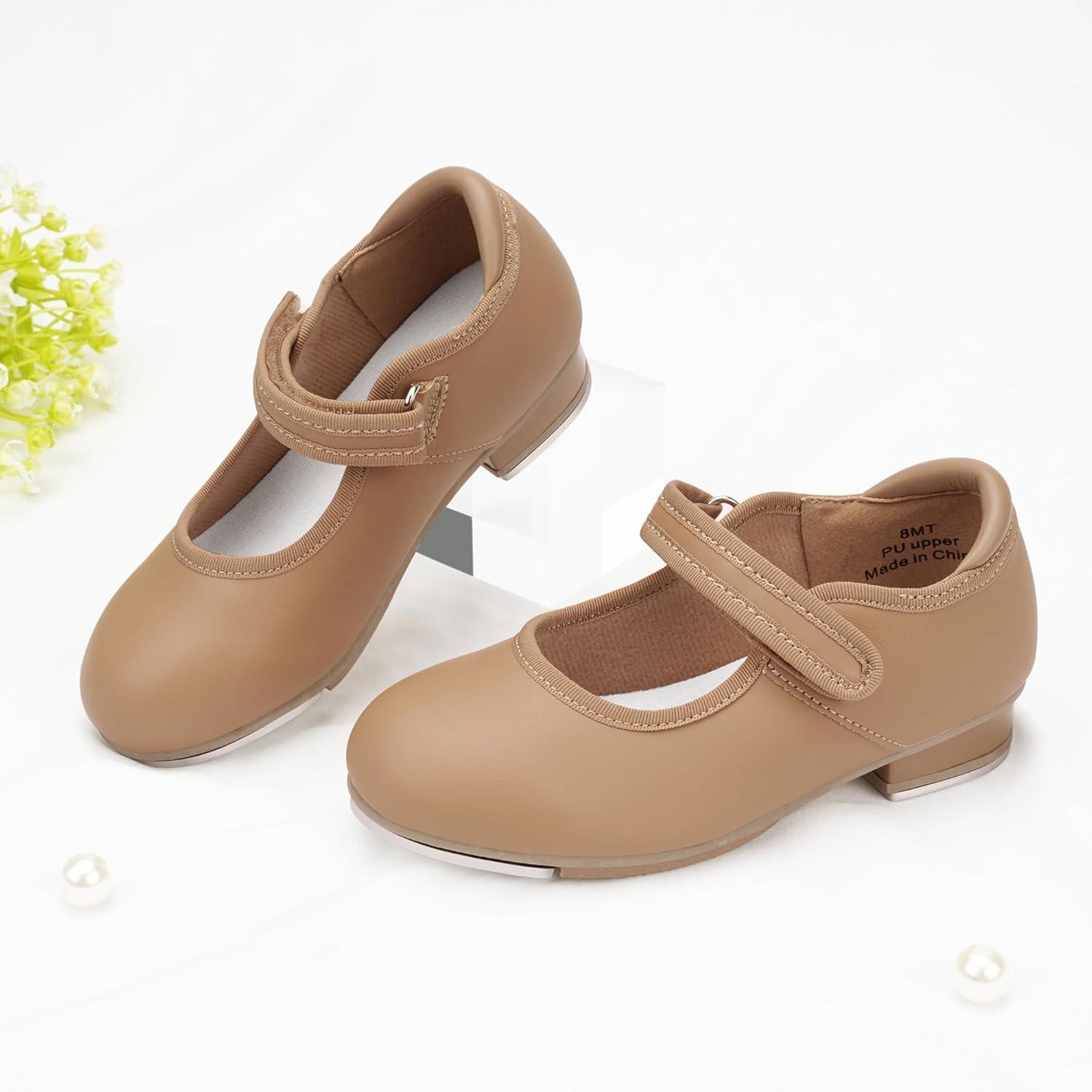 Stelle Tap Shoes for Girls Toddler PU Tap Dance Shoes for Toddler/Little Kids/Big Kids(Tan)