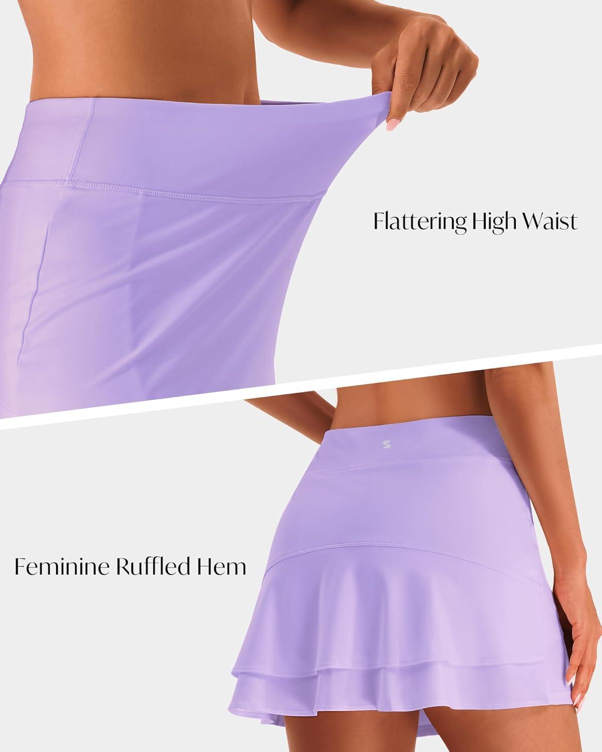 Stelle Tennis Skirts for Women Athletic Skirt with Shorts Golf Skort Pocket High Waisted Skorts Workout Pickleball(Lilac)