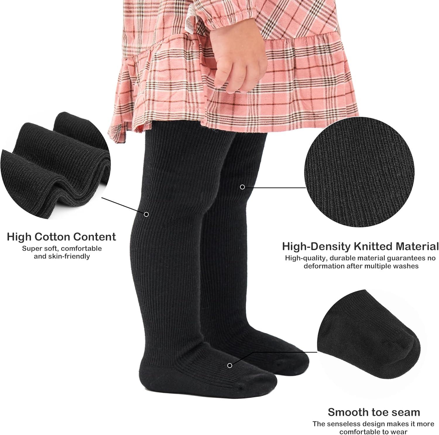Stelle Toddler Girls Tights Baby Cable Knit Thick Stockings Cotton Winter Warm Leggings Pantyhose 1/2/3 Pack(Black+white+grey)