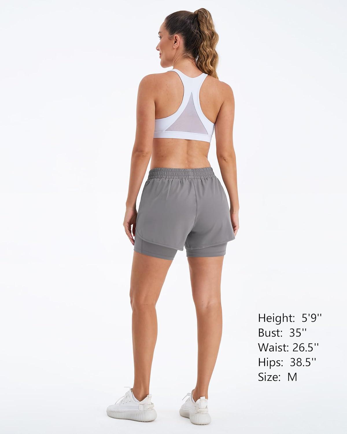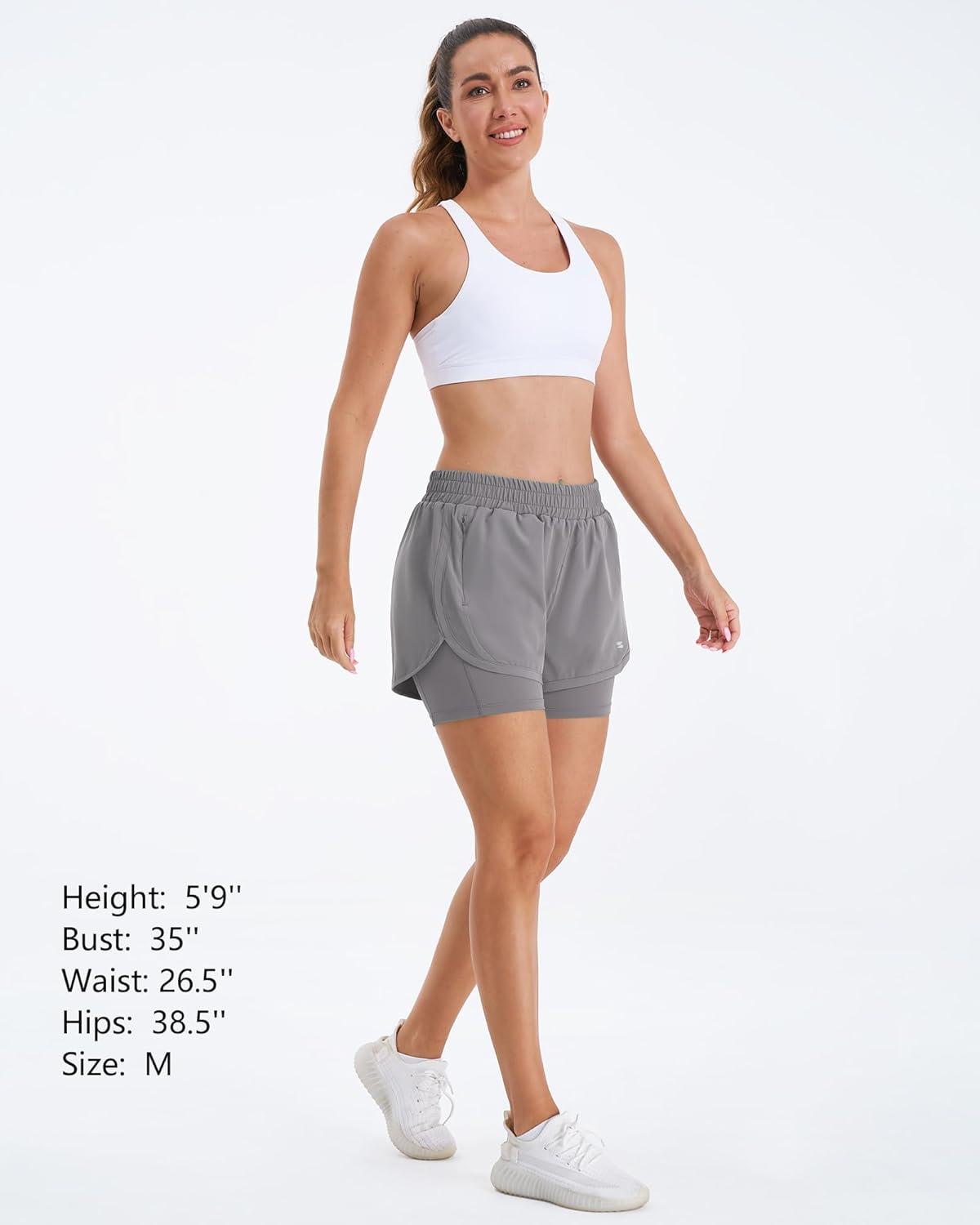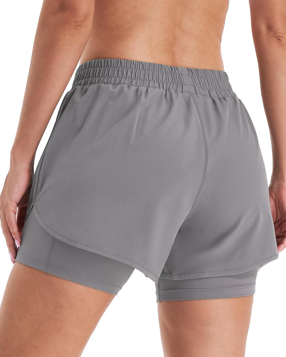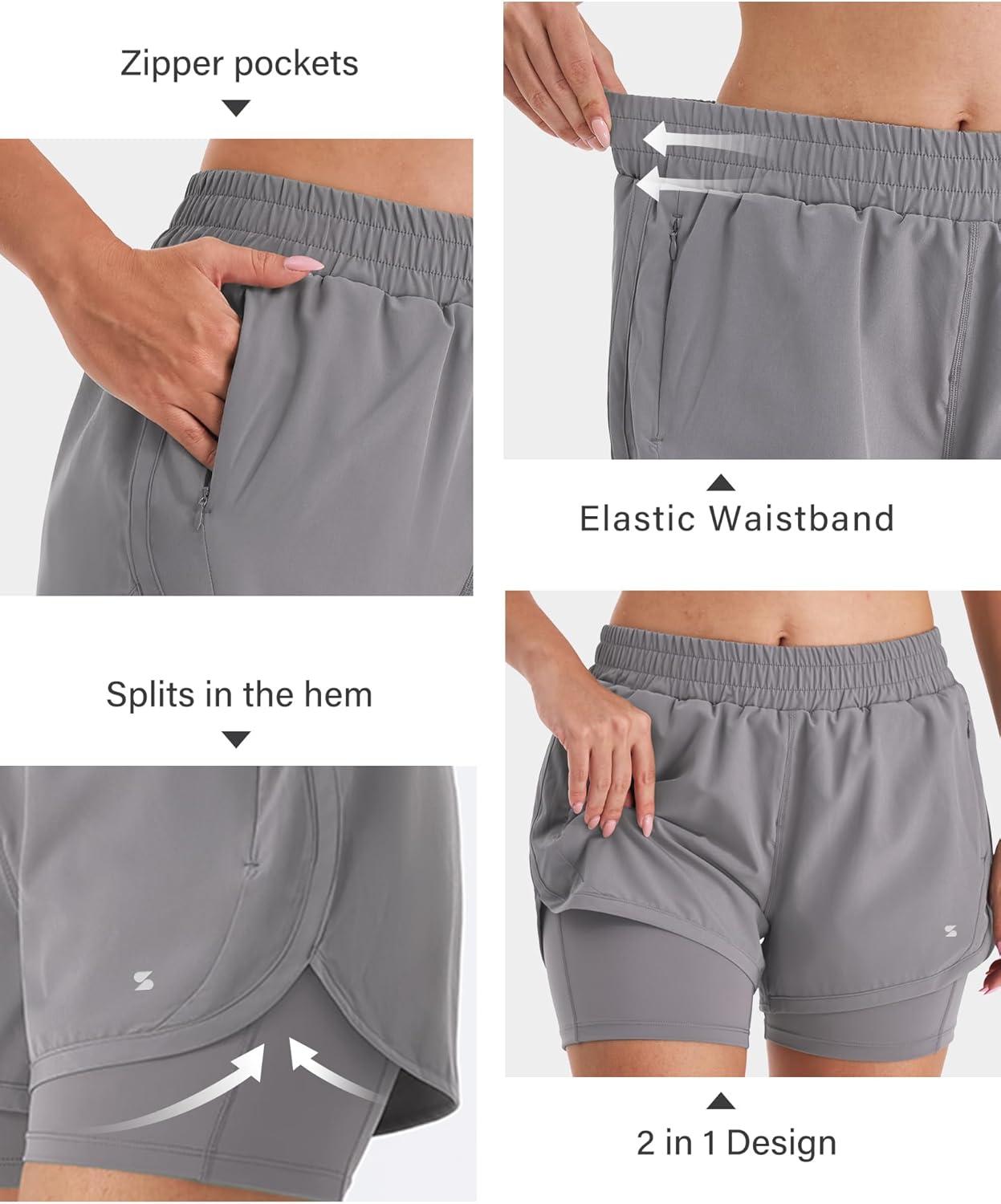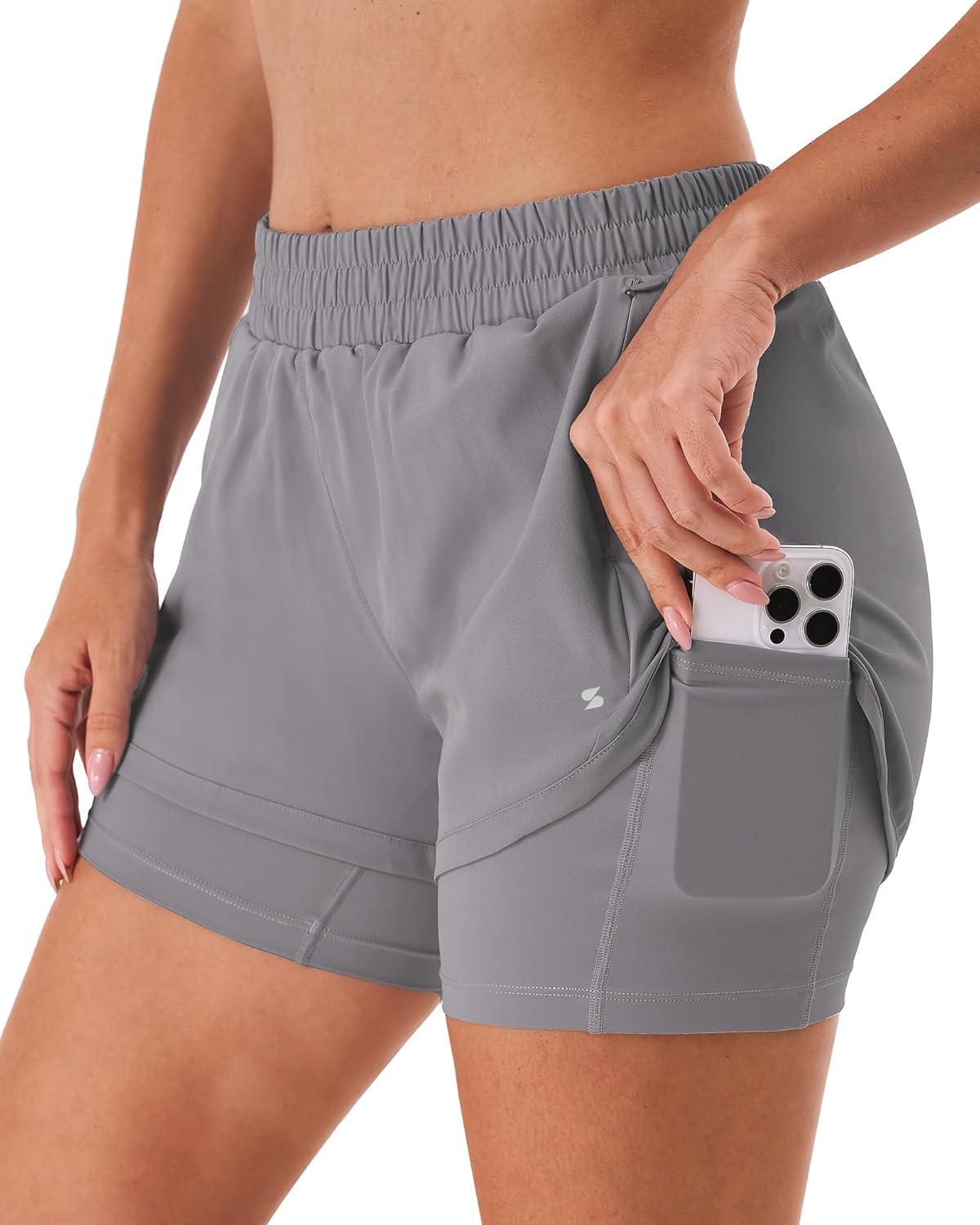 Stelle Women 2 in 1 Running Shorts High Waisted Athletic Shorts Gym Workout Shorts with Liner Zipper Pockets(Smoke Grey)
